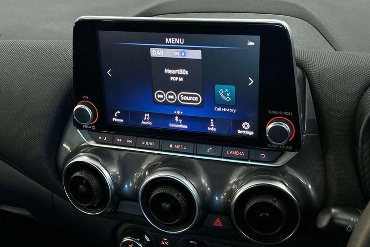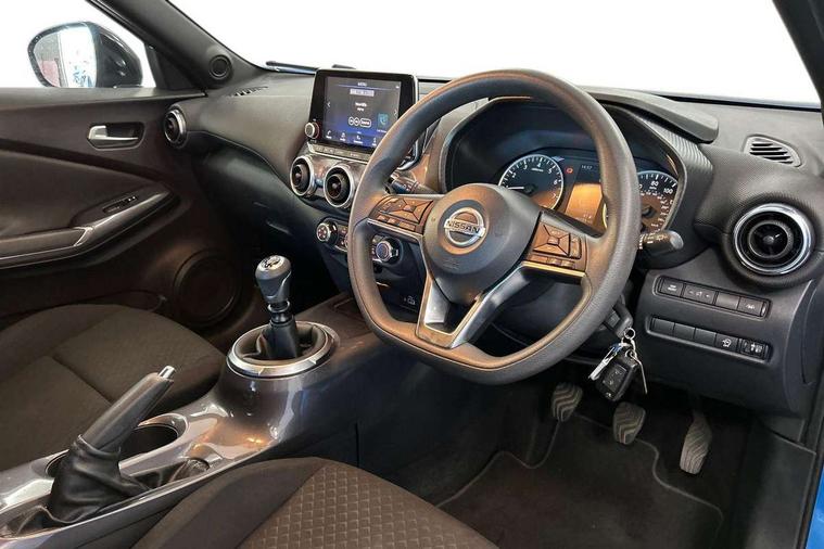 4.2" full colour TFT screen combimeter, 8" infotainment colour display with touch screen, Apple CarPlay and Google Android auto, Cruise control + speed limiter, Emergency and breakdown call, Idle start/stop system, Intelligent lane intervention, Lane departure warning system, Nissan connect services and Wifi connection, Outside temperature sensor, Power Steering, Rear view camera, Traffic sign recognition, Trip computer, Gasoline particulate filter, 4 speakers, Bluetooth system, USB, Aux-in and 12V socket, DAB Digital radio, Automatic hazard signal with emergency stop signal, Body colour bumpers, Body colour door handles, Electrically adjustable door mirrors with integrated indicators, Follow me home headlights, Front and rear electric window with one touch driver window, High beam assist, LED daytime running lights, LED headlamps, LED rear fog lamp, LED rear lamps, Manual dimming interior rear view mirror, Pearl black door mirrors, Rear privacy glass, Rear spoiler, Rear wiper, Three blink turn signal, 3 height adjustable rear headrests, 60/40 split folding rear seat, Cloth upholstery, Driver and passenger sliding and reclining seats, Driver side rear coat hanger, Driver/passenger sunvisors and vanity mirrors, Front and rear cabin lighting, Front door pockets with bottle holders, Front head restraints, Front/rear passenger grab handles, Height adjustable driver's seat, Internal chrome door handles, Luggage board, Luggage space lighting, Monoform sporty seats, Multifunction steering wheel, Rear door bottle holders, Telescopic steering wheel adjustment, Two cupholders in front centre console, Two rear isofix child seat anchorage points with top tether, Voice recognition switch on steering wheel, Welcome light and console tray ambient lighting, ABS with EBD and brake assist, Active ride control, Active Trace Control, Driver and passenger airbags, Driver and passenger side airbags, Electronic Stability Programme (ESP), Front and rear curtain airbags, Height adjustable seatbelts, Hill start assist, Intelligent emergency braking with pedestrian and cyclist recognition, Rear drum brakes, Seatbelt reminder for driver/front passenger and rear seats, Single tone horn, Three 3 point rear seatbelts, Traction control, Tyre pressure monitoring system, VDC Dynamic Vehicle Control, Alarm, Immobiliser, Remote central locking, 17" alloy wheels,
