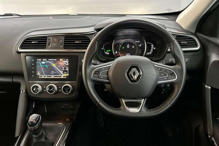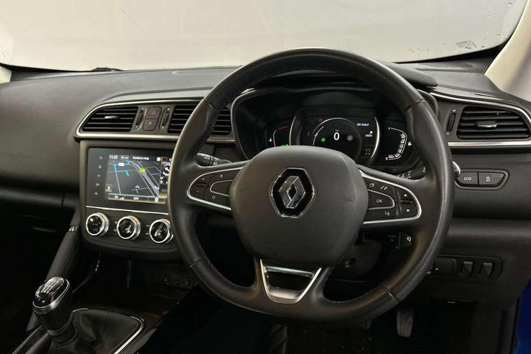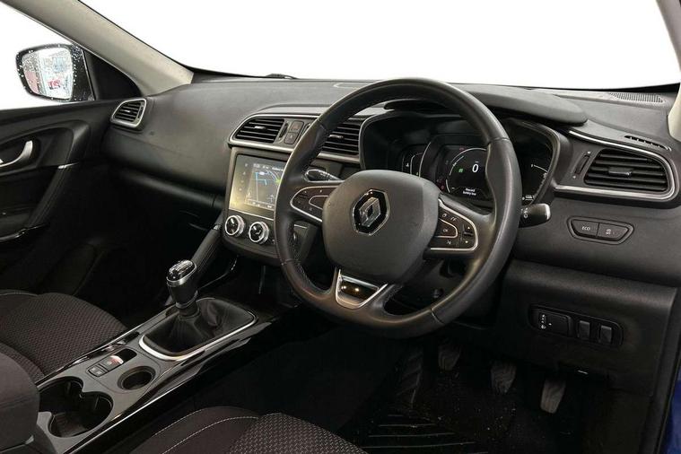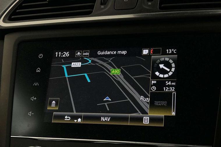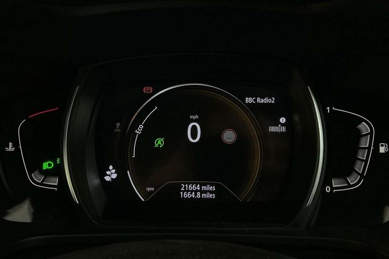 Cruise control + speed limiter, Digital speedometer with 7 TFT screen, Door/boot open warning light, Eco mode, Exterior temperature indicator, Front and rear parking sensors with rear parking camera, Gear change indicator, Lane departure warning system, Low fuel level warning light, Multi function trip computer, Oil level gauge, PAS, R-Link 2 Multimedia system + 7" touchscreen, TomTom + West European Map, DAB/FM/AM radio, bluetooth + hands free, USB/AUX, voice control, Smartphone integration with Apple CarPlay and Android auto, Speed alert, Gasoline particulate filter, 4x35W speakers with 3D sound, Two rear USB sockets, Automatic headlights, Automatic high/low beam, Automatic windscreen wipers with variable speed adjustment, Body colour door handles, Body coloured bumpers, Body coloured door mirrors, Bodyside mouldings with chrome inserts, Chrome inserts on front grille, Chrome window surround, Day/night rear view mirror, Electric adjustable/heated/folding door mirrors, Extra tinted glass in rear windows and tailgate, Front and rear electric windows, Front and rear towing rings, Front fog lamps with cornering function, Halogen headlights, Heated rear windscreen, Integrated C shape indicators with side repeaters, Integrated fuel filler cap, LED daytime running lights, LED rear fog light, Rear wiper, Shark fin antenna, 3 height adjustable rear headrests, 3 seat rear bench, 60/40 split folding rear seat, Adjustable dashboard illumination, Air recirculation system, Centre rear armrest with cup holder, Cloth upholstery, Driver's seat with lumbar adjustment, Driver/passenger reading lights, Dual zone automatic climate control, Easy life quick folding rear seat, Front courtesy lights, Front/rear floor mats, Height adjustable driver's seat, Height adjustable front headrests, Height/reach adjust steering wheel, Illuminated boot, Illuminated centre console, ISOFIX child seat anchorage points attached on outer rear seats, Multi positional boot floor, Pollen filter, Rear courtesy lights, Sliding front centre armrest, Storage glovebox, Sun visor and mirror with light, Synthetic leather steering wheel, 3 point inertia reel seatbelts, ABS/EBD, Driver/passenger 2 stage auto adaptive airbags, Electronic parking brake, Emergency brake assist, ESP with ASR and UCL (understeer control logical), Front and rear curtain airbags, Front lateral airbags, Front seat belts warning, Height adjustable front seatbelts with double pretensioners, Hill start assist, Passenger airbag deactivation system, Rear seatbelt warning indicator, Side impact protection, Three point rear center seatbelt, Tyre pressure monitor, Deadlocks, Insurance approved Cat 1 alarm system, Insurance Approved Immobiliser, Key card hands free with walk away lock function, RAID (Renault Anti-Intruder Device) with automatic door locking, Remote central locking, 17" Diamond cut alloy wheels,