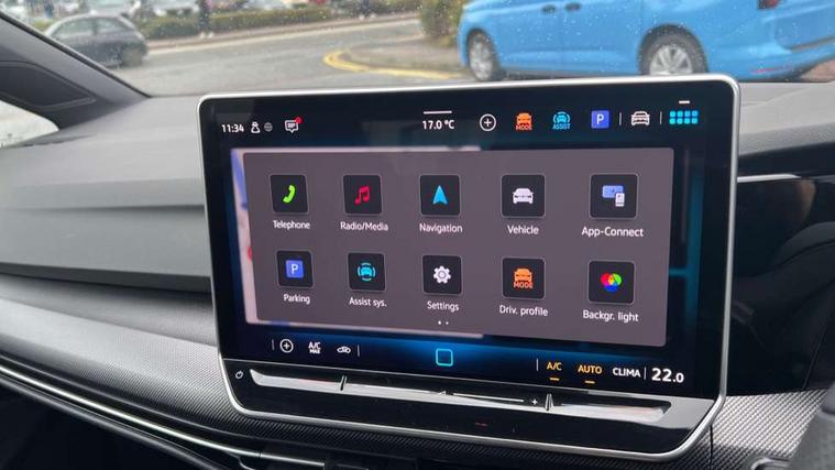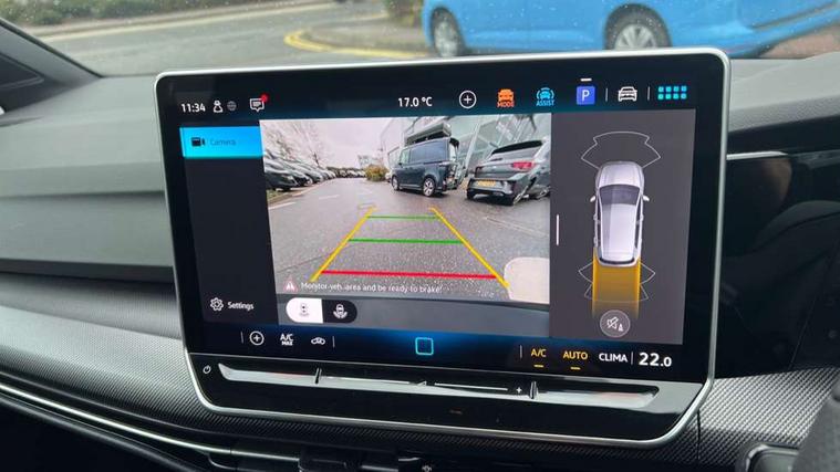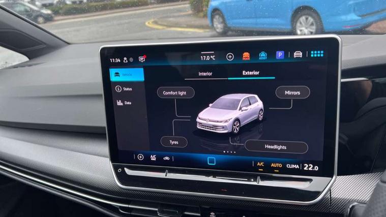 Activated carbon canister, Adaptive cruise control (ACC), Advanced driver attention and drowsiness monitor, Dynamic road sign display, Dynamic steering, E-Sim card for online connectivity, eCall emergency call system, Multi-color Digital cockpit pro, selection of different info profile possible, Multifunction front facing camera for distance control, Navigation system, Oncoming vehicle braking when turning including swerve support, Preparation for light assist system, Speed limiter, Speedo, rev counter, electronic odometer, trip, service interval display, exterior temperature and fuel gauge, Traffic jam assist, Voice enhancer and voice control, Warning signal and warning light for front and rear seatbelts not fastened, We connect plus preparation, We connect preparation, Wireless app connect, Petrol Particulate Filter, Start-stop system with battery regeneration (recuperation - energy recovery during braking), XDS electronic differential lock for improved traction and handling, 2 USB C ports in front, 2 USB charging sockets on the centre console in the rear charging capacity upto 45W, Comfort telephony + wireless charging, without wireless aerial connection, Digital radio reception (DAB), Diversity antenna for FM reception, Gaming platform via car app, Infotainment system with 12.9" display, Mobile phone interface with inductive charging feature, 3rd brake light, Auto headlights, Automatic headlamp activation with Coming home and Leaving home feature, Body colored bumpers in R-Line style, Body colour door handles, Exterior ambient lighting with illuminated door handles, Exterior mirrors convex on the left and aspherical on the right, Front and rear electric windows, Heat insulating windshield made of laminated glass, LED daytime running lights, Rear exhaust tailpipe, Rear fog light on one side and reversing lights on both sides, Rear side wing doors, Rear windscreen washer and wiper with interval delay, Remote electrically foldable door mirrors, puddle lights and reverse activated passenger's door mirror, Welcome light with surround lighting, 12V socket in front centre console, 12V socket in luggage compartment, 3 rear head restraints, 3 seat bench in 2nd row, Ambient lighting with 30 colour including LED light unit in front footwell with selectable light colour, Brushed stainless steel pedals, Carpet mats, front and rear, Chrome plated radiator grille inserts, air vent surrounds and light switch surrounds, Front centre armrest, Integrated front head restraints, ISOFIX anchors for child seats on outer rear bench seats and on front passanger seat compatible for i-Size, Leather gearshift handle, Luggage compartment lighting, Premium sports seats in front, Rear cupholder and loadthough, Single front passenger seat, Soul black instrument panel, Split folding backrest with centre armrest and unsplit rear seat bench, Storm grey roof lining, Sun visors with illuminated vanity mirrors, 3 point height adj front seatbelts + pretensioners, 3 rear three point seatbelts, ABS, Autonomous emergency braking front assist with pedestrian and cyclist monitoring, Child locks on rear doors, Driver and front passenger airbag with front passenger airbag deactivation, Electronic parking brake with auto hold, ESC (Electronic Stability Control), Extended pedestrian protection measures, Rear disc brakes, Two tone horn, Tyre pressure loss indicator, Volkswagen roadside assistance, Anti theft wheel bolts, Preparation for alcohol interlock, Decorative inserts carbon grey for dashboard and front door trim panels,