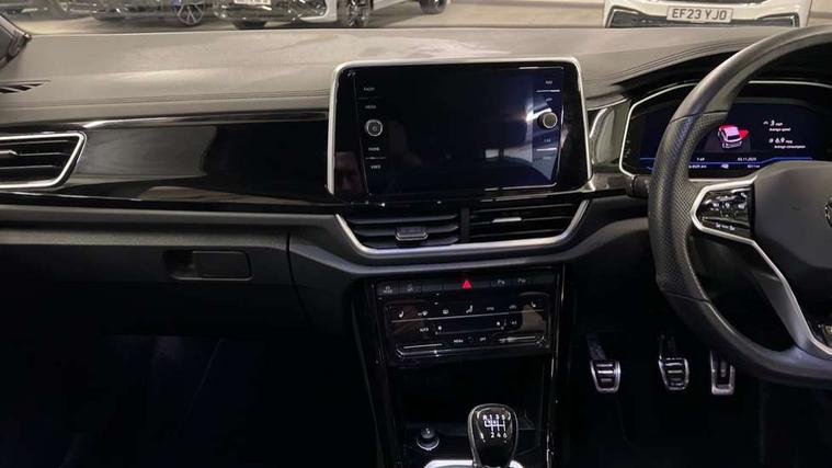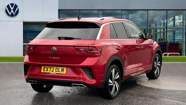 10.25" Digital cockpit pro, Bluetooth mobile phone interface, Driver alert system with fatigue detection, Driver tips and journey analysis, Emergency call service, Lane keeping system Lane Assist, Modified key software - reduce switch off time for key status change to Long no motion, Online services, Park assist including front and rear parking sensors, Service interval indicator, Tailgate/trunk lid release from outside, Think blue trainer driver tips and journey analysis, Warning sound and light for front seatbelts unfastened, Wireless app connect, Battery regeneration during braking, Start/stop function with battery regeneration, Diversity antenna for FM reception, Front and rear 6 speakers, Music playback - MP3, WMA and AAC files, Premium USB cable in choice of either Apple or Android smartphone compatibility, SD card slot, Simultaneous pairing of 2 compatible mobile devices, Title and cover art display, We Connect and We Connect Plus functionality, 3rd brake light, Auto dimming interior rear view mirror, Automatic hazard lights activation under emergency braking, Automatic headlight control with LED separate daytime running lights with coming/leaving home function, Extended roof spoiler, Exterior mirrors aspherical on driver side, convex on front passenger side, External USB type C socket and charging sockets, Front windscreen wiper with intermittent wipe and 4 position delay, Heated rear window, LED Plus headlamps, LED rear combination lamps, LED rear number plate lights, LED tail lamp rear comination lamps, Power windows with comfort operation and circuit breaker, R-Line design body coloured bumpers, Rain sensor, Rear exhaust tailpipe, Rear fog light on one side and reversing lights on both sides, Rear side wing doors, Rear wash/wipe with intermittent wipe setting, Remote electrically foldable door mirrors, puddle lights and reverse activated passenger's door mirror, 12V power socket in centre console, 3 rear head restraints, 3 seat bench in 2nd row, 4 load lashing points in luggage compartment, Air care climatronic air conditoning system with active combination filter and 2-zone temperature control, Black roof lining, Chrome plated radiator grille inserts, air vent surrounds and light switch surrounds, Door and side trim panel with leatherette insert, Drawer under drivers seat, Front + rear carpet mats, Front centre armrest, Front cupholders x 2, Front footwell illumination, Front reading light, Front scuff plates with R logo, Instrument lighting, white adjustable panel illumination, Interior ambient lighting and surround lighting, Interior light delay, Isofix child seat preparation, Leather gearshift handle, Load-through provision with cup holder when folded down ('Unsplit rear seat bench, split folding backrest, with centre armrest), Luggage compartment lighting, Single front passenger seat, Stainless steel pedals, Storage compartment in left and right luggage area, Storage compartment in rear doors, Storage compartments in driver and front passenger doors, Sunvisors with illuminated vanity mirrors, Variable boot floor, height adjustable and removable, Driver assistance pack without proactive passenger protection - T-Roc, 3 point height adj front seatbelts + pretensioners, 3 point seatbelts in outer rear with ECE label, ABS, Child locks on rear doors, Driver and front passenger airbag with front passenger airbag deactivation, Driver and front passenger safety-optimised head restraints, Drivers seatbelt reminder, Electronic parking brake, Electronic Stability Control (ESC) inc EDL (Electronic Differential Lock) and ASR (Traction Control), Front and rear passengers curtain airbag system including front side airbags, Front assist with city emergency braking and pedestrian monitoring, Front seat side impact airbags, Hill start assist, Predictive pedestrian protection, Rear disc brakes, Single tone horn, Tyre pressure loss indicator, Volkswagen roadside assistance, Alarm with interior protection, Anti-theft alarm system with interior monitoring, backup horn, and towing protection, Remote central locking with SAFELOCK, radio remote control with 2 remote control folding keys, Trims for alloy wheels,