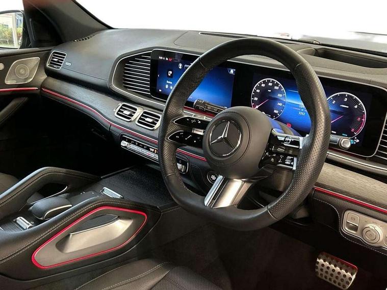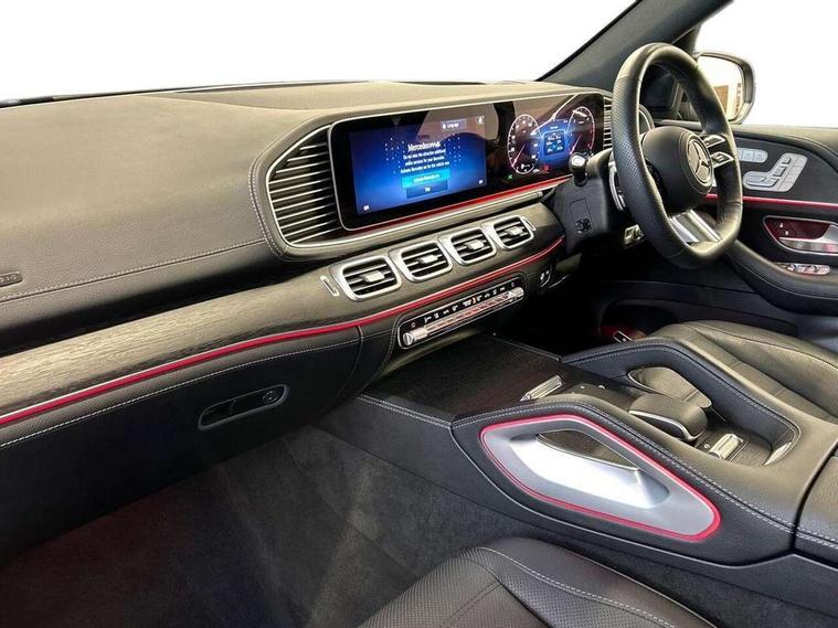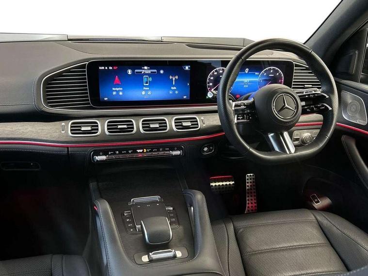5G Communications module, Direct steering, DYNAMIC SELECT with a choice of driving modes (ECO, Comfort, Sport and Individual), Easy-pack tailgate - Powered opening/closing automatically, ECO start/stop function, Emergency call service, Fingerprint sensor, Front wireless charging system for mobile devices, Head up Display, MBUX Interior assistant, Power closing aid for doors and boot lid, Pre-installation for MBUX entertainment, Service indicator (ASSYST), Smartphone integration with Apple CarPlay and Android auto, Speedtronic cruise control, Widescreen cockpit, 4MATIC permanent four wheel drive, Airmatic air suspension with adaptive damping system + level adjustment, Diesel particulate filter, EQ Boost starter alternator, 1 data-enabled USB port in the oddments tray, 2 USB ports capable of charging in the 2nd seat row, 2 USB ports capable of charging in the 3rd seat row, 2 USB ports in centre console, Burmester surround sound system, DAB Digital radio, USB-C, Adaptive brake lights, Adaptive high beam assist plus, AMG bodystyling front and rear aprons and side skirts, Chrome roof rails, Electric front and rear windows, Headlamp assist automatic headlamp activation, Heat insulating dark tinted privacy glass from the B-pillar backwards, Heated rear window, Illuminated running boards with rubber studs, LED daytime running lights, LED tail lights, LED third brake light, Magic vision control with adaptive heated windscreen wiper system, Multibeam LED, Panoramic glass sunroof, Rain sensor windscreen wipers, Rear side wing doors, Rear wiper, Tinted glass all round with single layer safety glass, Underguard - full length reinforced underfloor panelling, 2 seat bench in 3rd row, 3 seat bench in 2nd row, 3 twin spoke multifunction sports steering wheel in black nappa leather with flattened bottom section, perforated grip area with touch control buttons, 3rd row access facility - folds flat 2nd row seating via button control, AMG brushed stainless steel sports pedals with rubber studs, AMG floor mats with edging and embroidered AMG lettering, Auto Mercedes-Benz child seat recognition sensor, Chrome slat air vents, Climate front seats, Comfort front headrests, Double sun visors with illuminated vanity mirrors, Easy entry/ electrically adjustable steering column, Easy-pack removable load compartment cover, Electrically adjustable 2nd row seats, Electrically adjustable 3rd row seats, Folding rear centre armrests, Front/rear reading lights, Heated armrest in the front and rear doors, Heated centre armrest in rear 2nd row seats, Heated door centre panels in the front and rear doors, Heated front centre console, Heated rear seats for 2nd row, Illuminated front door sill panels with Mercedes-Benz lettering in white, Interior lighting - 64 colour Ambient lighting, Load securing rings in luggage compartment, Multi contour front seats with massage function, Rear head restraints, Seat heating plus for driver and front passenger seats including seat cushion and backrest, Single front passenger seat, Star pattern light carpet, Storage compartment in front centre armrest, Temperature controlled cupholder, Thermotronic luxury automatic climate control, Using a combination of fragrancing, heating and cooling, massage functions and ambient lighting to change the ambience and add to driver, Air balance pack - GLS, Driving assistance plus pack - GLS, Keyless go comfort package - GLS, Memory package - GLS, Mirror pack - GLS, Parking Package with 360-degree camera - GLS, 3 rear 3 point seatbelts, ABS with Brake Assist, Active bonnet, Adaptive brake assist with hold function, hill start assist, priming and dry braking in the wet, Airbags - windowbags, Braking system with larger brake discs on the front axle, Detects sudden strong gusts of wind, Driver/Front Passenger airbags, Drivers knee airbag, Electric parking brake, Electronic four wheel traction control, ESP with ASR, Front side airbags, i-Size child seat fixing points in two outer second row seats and two third row seats, Manual rear child locks, Rear side airbags for left and right, Tyre pressure monitor, Alarm system/interior protection/immobiliser, Dashcam, Guard 360 degree vehicle protection, Remote central locking, Tirefit,