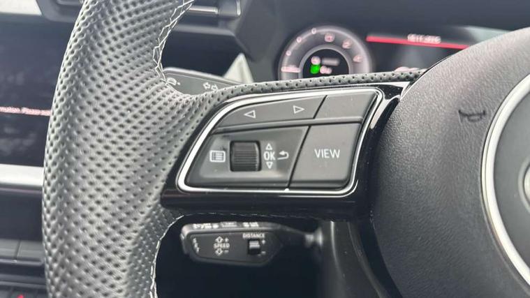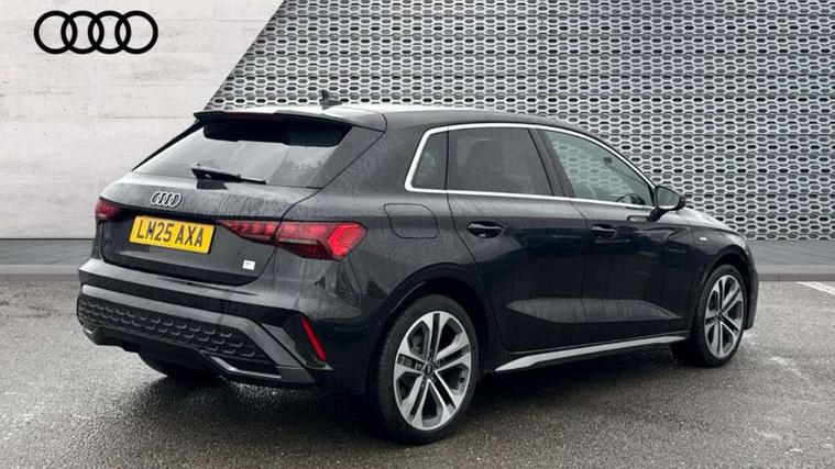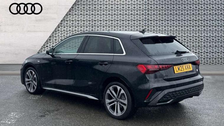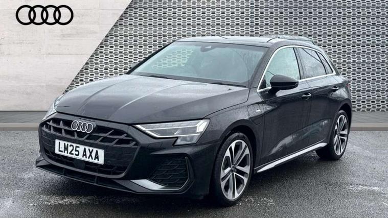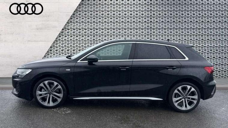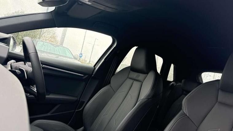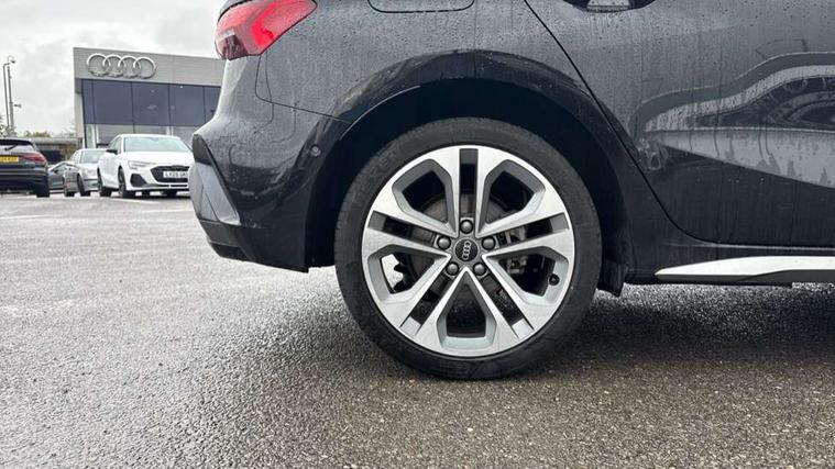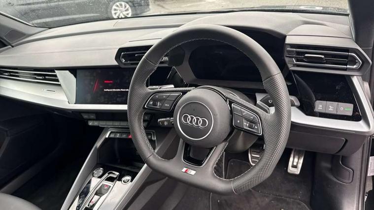 Adjustable speed limiter, Audi drive select, Audi smartphone interface with app store includes wireless Apple carplay, Android auto and Amazon alexa integration, Audi virtual cockpit plus - 12.3" full HD resolution dynamic digital instrument cluster, Automatic start/stop system with recuperation, Bluetooth interface, Camera based traffic sign recognition, Collision avoidance assistant, Cruise control, Distraction and Fatigue warning, e-Call (emergency call), Electromechanical power speed sensitive steering, Emergency assist, Lane departure warning system, MMI Navigation Plus with high resolution 10.1" colour touch screen display, Park Assist with parking system Plus, Service indicator, Trip computer, Voice control system with natural language interaction, 3 pin 10 amp domestic charging cable, CCS socket for DC charging, Charging cable for public charging, mode 3 (type 2), 32 A, Compact charging system, Industrial connector CEE 32 A, 230 V, length 1.6 m, Standard suspension, Type 2 socket for AC charging, Audi Phonebox light with wireless charging, Audi sound system - 10 loudspeakers including centre loudspeaker and subwoofer, DAB Digital radio, USB ports with charging function in the rear, Acoustic glass windscreen, All weather light, Aluminium window trim, Auto dimming frameless rear view mirror, Automatic dynamic range control, Body colour exterior mirrors, Chrome exhaust tailpipes, Dipped beam, main beam, position light and turning light, Electrically adjustable/heated/folding/auto dimming door mirrors with integrated LED indications + kerb view function for passenger side, Exterior model badging, Front and rear side air inlets in grained matt black with dark liquid chrome frame, Front electric windows, Front radiator grill in high gloss dark chrome, Heat insulating glass windscreen, Illuminated door sills with aluminium inserts at the front with S logo, Intersection light, LED 3rd brake light, LED brake lights, LED daytime running x3, LED headlights with LED rear lights and dynamic rear indicators, LED rear number plate lights, LED reverse light, LED tail lights, Light and rain sensors, Manoeuvring light, Motorway light, Privacy glass - dark tinted rear window, rear door and side windows, Rear diffuser and grill in grained matt black with inlay in dark liquid chrome, Rear electric windows, Rear side wing doors, Rear wiper, S line bumpers, S roof spoiler, Side S line emblems on front wings, Side sill trim in dark liquid chrome, Static Cornering lights, 12V socket and storage compartment in front centre console, 3 seat bench in 2nd row, 3 spoke flat bottomed leather multifunction sport steering wheel with gear shift paddles, 3-zone deluxe automatic air conditioning, 4 way electrically adjustable lumbar support for driver and front passenger, 40/20/40 split folding rear seat bench, Black cloth headlining, Black front and rear floor mats, Convenience auxiliary air conditioning, Front and rear centre armrest in artificial leather with contrasting stitching on armrests and instrument panel, Front and rear headrests, Heated front seats, Height and reach adjustable steering wheel, Manual boot compartment lid, Manually adjustable front seats, Rear centre armrest with cupholder, S badging on the steering wheel, Seat side bolsters, Single front passenger seat, Stainless steel pedals and front footrest in black, Twin leather upholstery with front sports seats S embossed logo, Aluminium interior elements pack - A3, Multi-coloured LED interior lighting package with Multi-coloured contour lighting of instrument panel - A3, 3x3 point rear seat belts, Acoustic vehicle alerting system, Driver and front passenger airbag with passenger airbag deactivation, Electronic Stabilisation Control (ESC) including ABS, ASR and EDL, First aid kit with warning triangle and 2 safety vests, Front side airbags with head airbags and interaction airbag, Hill hold assist, Pre-sense front with pedestrian and cyclist detection, Seatbelt monitoring, Tyre pressure loss indicator, Anti theft alarm, Anti-theft wheel bolts, Electronically operated child locks, Immobiliser, Remote central locking with safelock, Black dashboard, Inlay in dark aluminium spectrum, Tyre repair kit,