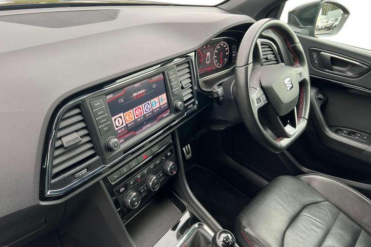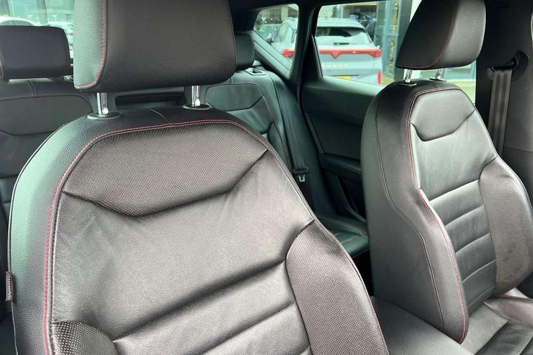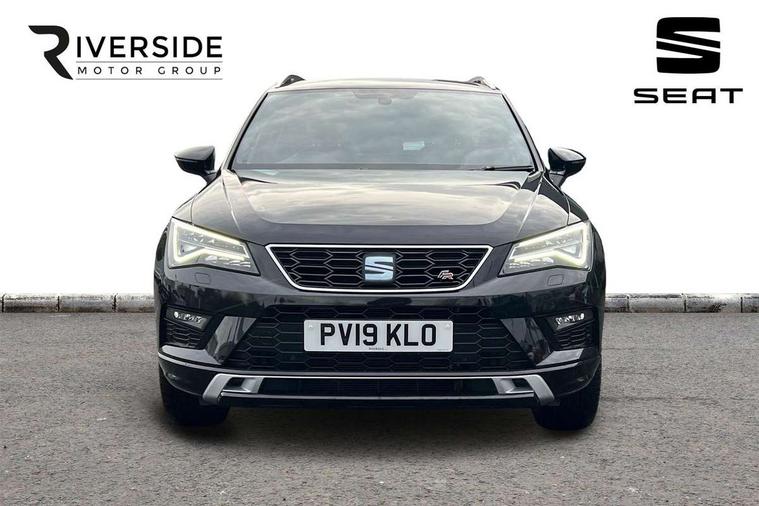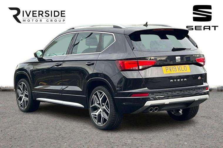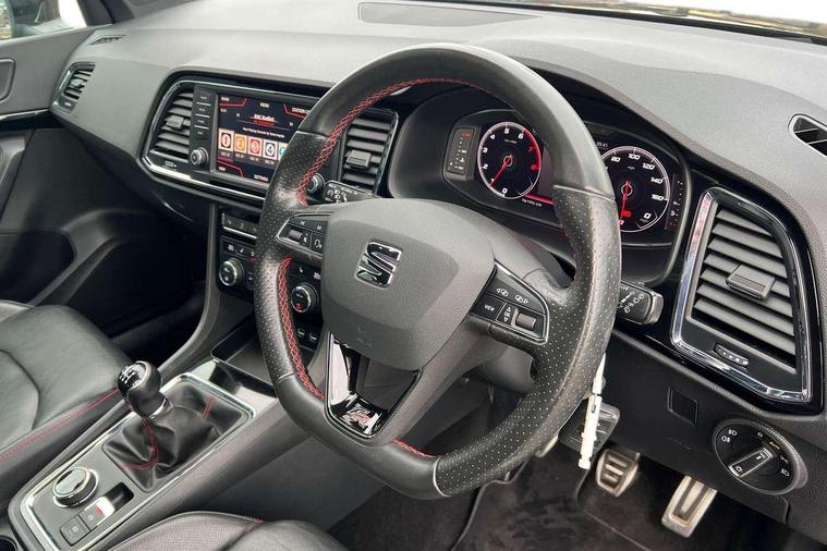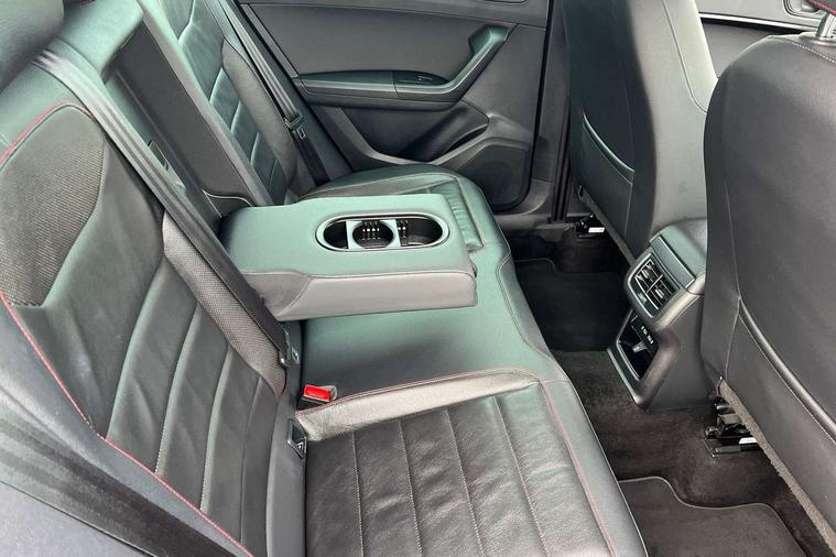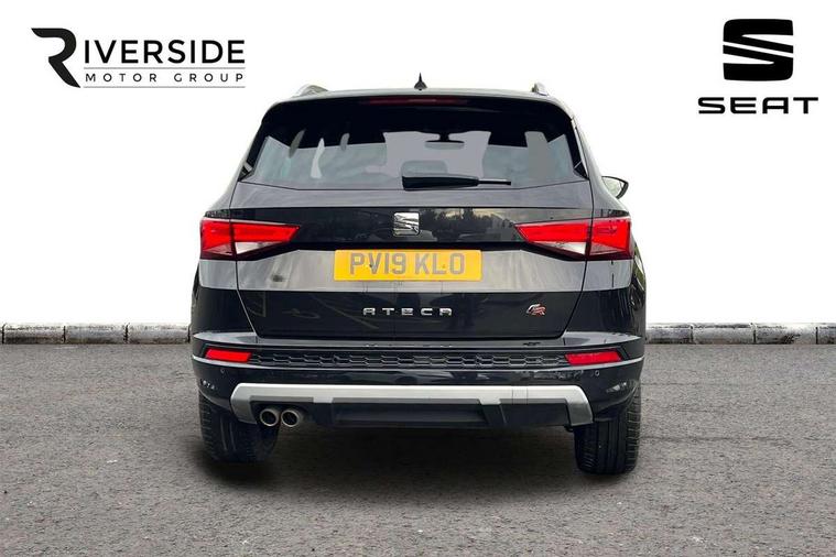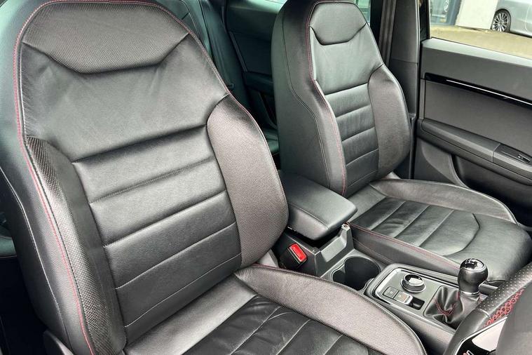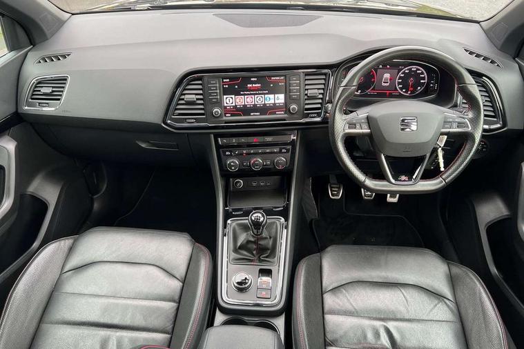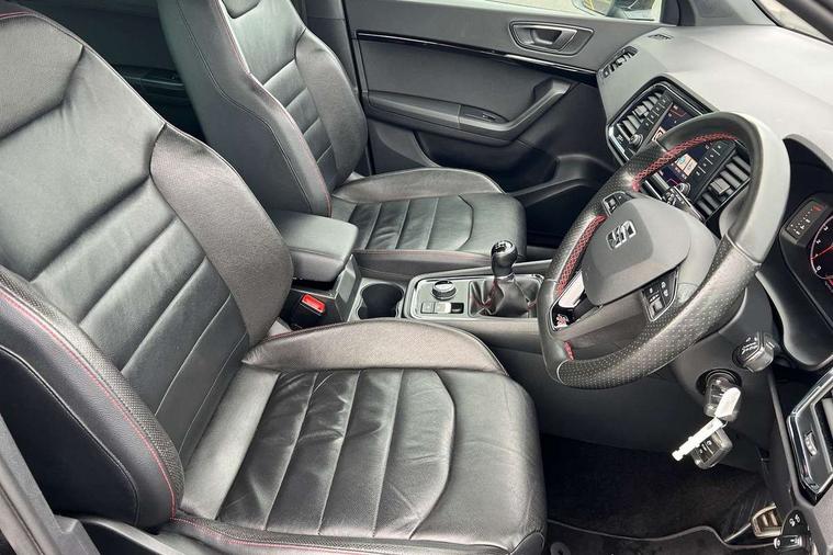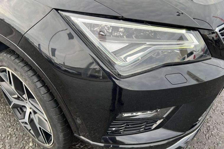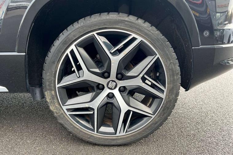 Chrome effect dashboard facia, Convenience pack - Ateca, Navigation system pack - Ateca, Winter Pack - Ateca, 19" Exclusive machined alloy wheel with decorative inserts, 2 folding remote keys with window open/close function, Immobiliser, Locking wheel bolts, Remote central locking, Volumetric alarm with back up horn, SEAT USB media cable, Steering wheel mounted audio/phone controls, 3x3 point rear seatbelts, ABS, Active front headrests, Auto hold function, Automatic post collision braking, Driver/Front Passenger airbags, Drivers knee airbag, Electronic parking brake with auto hold, Electronic stability control, ESP+EBA, Front and rear seatbelt reminder, Front passenger airbag deactivation, Front side airbags, Hill hold control, Predictive pedestrian protection, Tiredness recognition system, Traction control, Twin curtain airbags, Tyre pressure monitoring system, Aluminium front door sills, Armrest with air outlet in rear, Auto dimming rear view mirror, Automatic headlights, Body colour bumpers, Body colour door handles, Body colour door mirrors, Body coloured wheel arches, Chrome front grille frame, Chrome roof rails, Chrome side window trim, Dark tinted rear windows, Door mirrors with welcome light silhouette, Electric folding door mirrors, Electrically adjustable and heated door mirrors, Front and rear electric windows, Front grille in glossy black, Full LED headlights, Illuminated aluminium front door sill with trim logo, LED daytime running lights, LED front fog lights, LED Headlights with automatic headlight adjustment, Rear fog lights, Rear LED tail lights, Rear spoiler, Rear wash/wipe, Twin chromed exhaust pipes, Visible dual exhaust pipes, Welcome lighting, 12v socket in front, 3 height adjustable rear headrests, 4 Lashing eyes in boot, 60/40 split folding rear seat, Adjustable front armrest with storage compartment, Aluminium pedals, Ambient spot lighting and front footwell illumination, Black roof lining, Child seat ISOFIX attachment with rear outer seats includes top tether, Chrome dashboard detailing, Driver and passenger seats, height-adjustable, with lumbar adjustment and height-adjustable headrests, Driver and passenger sun visor, covered and illuminated mirror, driver sun visor with card holder, Driver sunvisor with covered mirror + card holder, Driver/passenger sunvisors with illuminated vanity mirrors, Dual zone climate control, Electric adjust driver's seat, Footwell illumination, Front courtesy reading lights, Front cupholders, Front reading lights, Front seat back storage pockets, Gear shift indicator, Illuminated boot, Illuminated door sills, Instrument lighting with brightness control, Leather steering wheel and gear knob, Leather upholstery, Leather upholstery with front sports seats, Multicoloured ambient lighting with LED interior illumination, Rear armrest and easy back seat release mechanism from boot, Rear central air outlet, Rear reading lights, Storage box under drivers seat, 'Lights On' Reminder warning buzzer, 8.0" colour touchscreen with proximity sensor, Cruise control, Digital clock, Digital cockpit, Driver alert system, Front assist city emergency braking and pedestrian protection, Full Link Smartphone Integration with Mirror Link, Apple Car Play, Google Android Auto, Low fuel warning light, Multi function display, Outside temperature gauge, Park assist system with steering assist, Progressive power assisted steering, Remote fuel flap release, RPM counter, Satellite navigation system, SEAT Drive profile, SEAT drive profile with driving experience button, SEAT logo boot release, Self parking functionality (includes front and rear parking sensors), Trip computer, Comfort suspension, XDS electronic differential lock,