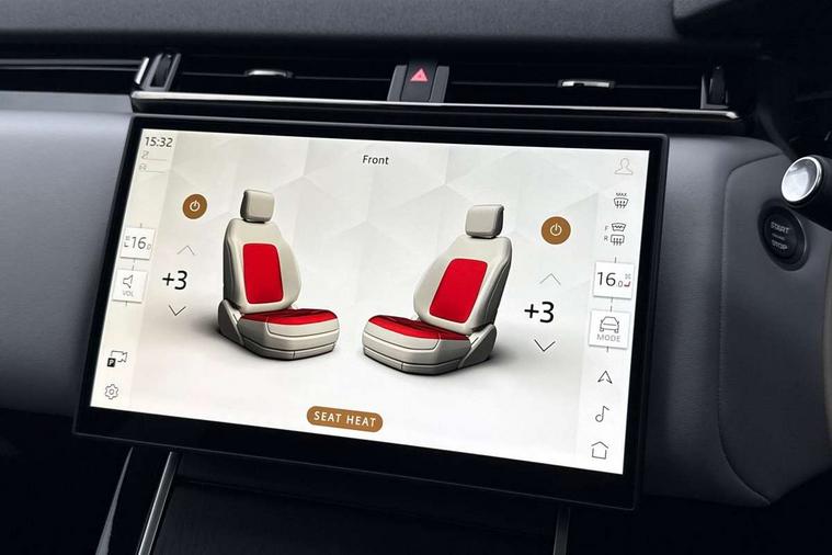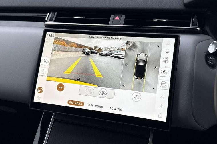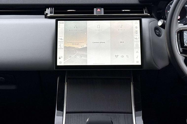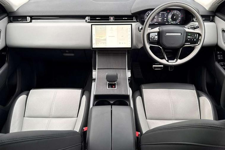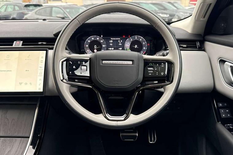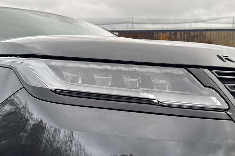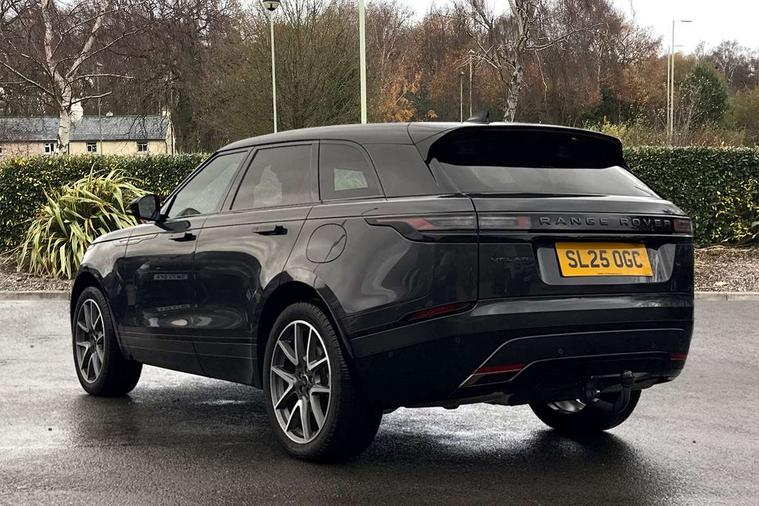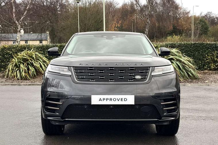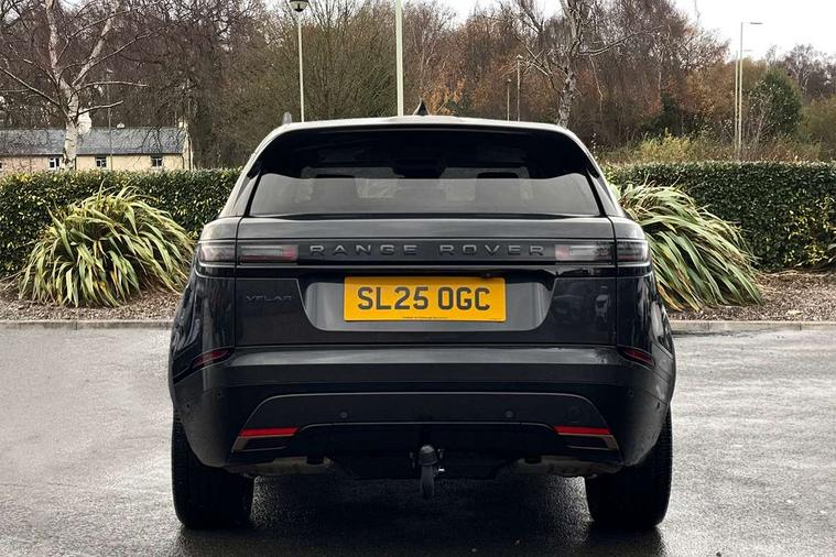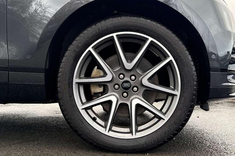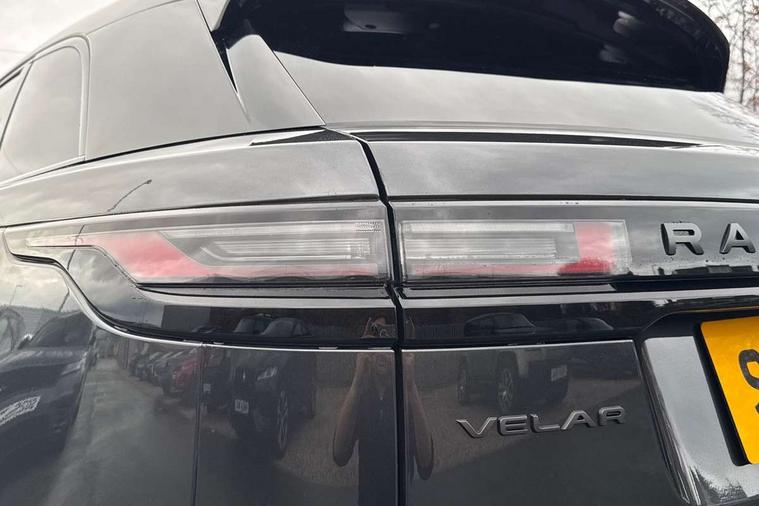 Adaptive cruise control with steering assist, Android Auto, Apple CarPlay, Blind spot assist, Bluetooth connectivity, Brake pad wear indicator warning light, Driver condition monitor, eCall emergency call system, Front and rear parking aid, InControl remote, Land Rover InControl apps, Lane keep assist, Pivi pro with connected navigation, Rear collision monitor, Rear traffic monitor, Service indicator, Speed proportional electronic power assisted steering (EPAS), Traffic sign recognition with adaptive speed limiter, Trip computer, Voice control system, Wireless device charging, 7kw on board charger, 8 speed automatic transmission, AC/DC charging, Adaptive dynamics, All terrain progress control, Coil suspension system, Home charging cable, Open differential with torque vectoring by braking, Public charging cable, Single speed transfer box, DAB radio, Steering wheel mounted controls, 3rd brake light, Acoustic laminated windscreen, Auto dimming interior rear view mirror, Automatic headlamp levelling, Automatic headlights, Body coloured bumpers, Boot protection plate, Electric windows with one touch open/close and anti trap, Flush deployable exterior door handles, Follow me home headlights, Heated rear window with timer, Heated washer jets, Heated windscreen, Metal front tread plates, Metal load space scuff plates, Pixel LED headlights with signature DRL, Power fold, auto-dimming, heated door mirrors with memory and approach lights, Rain sensor windscreen wipers, Rear animated directional indicators, Rear fog lights, Rear side wing doors, Rear wash/wipe, Tailgate/boot lid spoiler, Trailer stability assist, Velar badge, 3 seat bench in 2nd row, Ambient lighting, Bright metal pedals, Carpet mats, Driver/passenger sunvisors with illuminated vanity mirrors, Ebony morzine headlining, Electrically adjustable steering column, Extended leather upgrade, Heated steering wheel, Isofix system on outer rear seats, Loadspace cover, Overhead lighting console, Overhead stowage for sunglasses, Passive front headrests, Rear air vents, Rear centre headrest, Single front passenger seat, Twin front cupholders, Twin sliding front centre armrest, Online pack with data plan - Velar, Power socket pack 2 - Velar, 380mm front brakes and 325mm rear brakes, 3x3 point rear seatbelts, Anti-lock braking system (ABS), Cornering brake control, Curtain airbags, Customer configurable autolock, Door side intrusion beams, Driver airbag, DSC - Dynamic Stability Control, Electronic brake force distribution, Electronic parking brake, Electronic traction control, Emergency braking, Front and rear seatbelt reminder, Hill descent control, Hill launch assist, Low traction launch, Passenger airbag, Power operated child locks, Rear airbags, Roll stability control, Side airbags, Tyre pressure monitoring system (TPMS), Unpainted brake calipers, Global lock and unlock switch on driver door, Immobiliser, Intrusion sensor, Keyless entry, Lock only switch on front passenger door, Locking wheel nuts, Perimetric alarm, Remote central locking, All season tyres,