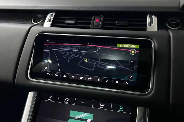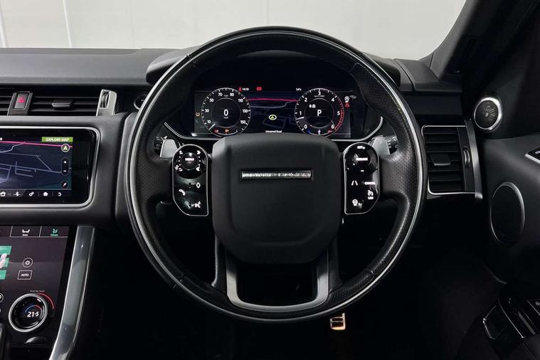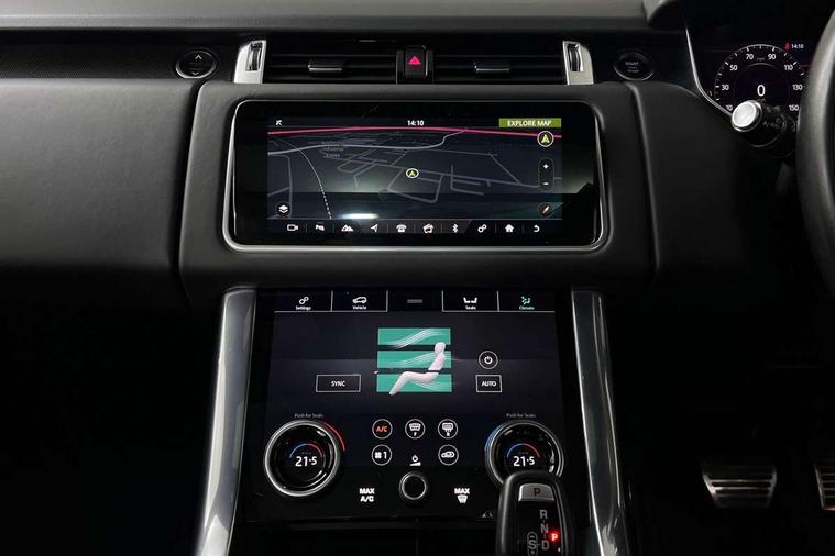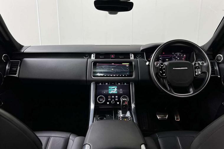 All Terrain Info Centre, Android Auto, Apple car play, Bluetooth connectivity, Electric power assisted steering (EPAS), Incontrol apps in vehicle touchscreen, Interactive Driver display instrument cluster, Mist sensor, Navigation pro system with 10" touch screen, app interface and media storage, Pro services and wifi hotspot, Push button start, Remote premium - Upgraded Incontrol remote app including remote climate control (engine dependent), remote lock + Unlock and remote beep + flash, TFT Virtual Instrument Panel, Touch pro duo system, Trip computer, Adaptive dynamics, All terrain progress control, Electronic active differential with brake torque vectoring, Electronic air suspension with dynamic response (active roll control), Gradient release control (GRC), Terrain Response 2 with dynamic program, Twin speed transfer box, Bluetooth audio streaming, DAB Radio (Digital Audio Broadcasting), Incontrol protect - SOS emergency call with automatic collision detection, optimised assistance call and Incontrol remote app essential, USB/aux input socket, Acoustic front and toughened rear side glass, Acoustic laminated front windows, Adaptive brake lights, Auto dimming interior rear view mirror, Automatic headlights, Body coloured side sills and bumpers corners, Centre high mounted stop light, Electric windows with one touch open/close and anti trap, Electrical towing preparation, Engine cover, Follow me home lighting, Front and rear recovery eyes, Front fog lights, Headlight power wash, Heated rear window, Heated windscreen includes heated washer jets, Illuminated metal treadplates with brand name script, LED rear lamps, Privacy glass (Tinted glass rear of B pillar), Rain sensing windscreen wipers, Rear fog lights, Rear side wing doors, Rear wash/wipe, Remote window closing, Side repeater indicators in mirror, Sport Badge in black, Standard bonnet, Trailer stability assist, Twin bright tailpipes, 2 way active front head restraints, 2 way rear head restraints, 3 seat bench in 2nd row, Auto air recirculation, Bright metal foot pedals, Centre console with armrest, Climate control memory, Customer configurable single point entry, Driver's footrest, Extended leather upgrade includes door top rolls and leather instrument panel mid section, Front and rear cupholders, Front door storage space, Front map lights, Front seat back map pockets, Front stowage pocket, Front/rear passenger grab handles, Heated steering wheel, Isofix child seat preparation, Leather steering wheel with Atlas inserts, Loadspace light, Loadspace mounting provisions, Lockable glovebox, Multifunction steering wheel, Perforated Windsor leather upholstery, Pollen filter, Power socket, Reach/rake electric adjustable steering column + entry/exit tilt away, Rear centre armrest, Rear ISOFIX, Roller blind loadspace cover, Satin chrome gearshift paddles, Single front passenger seat, Sports pedals, Three 12V accessory power outlets, Black Exterior pack - Range Rover Sport Dynamic, Smartphone pack - Range Rover Sport, 3 point seatbelts on all seats, Anti-lock braking system (ABS), Brake pre-fill technology, Cornering brake control (CBC), Curtain airbags, Customer configurable autolock, DSC - Dynamic Stability Control, Dual stage driver/passenger airbags, EBD - Electronic brakeforce distribution, Electric parking brake, Electronic traction control, Emergency braking includes city, urban AEB and pedestrian, Front seatbelt pretensioners, Gradient acceleration control, Grey anodised brake calipers, Height adjustable front seatbelts, Hill descent control, Hill launch assist, Low traction launch, Passenger seat occupant detector with front airbags, Power operated child locks, Roll stability control, Seatbelt warning, TPMS (Tyre pressure monitoring system), Immobiliser, Intrusion sensor, Keyless entry, Locking wheel nuts, Perimetric and volumetric anti theft alarm, Remote locking, Grand black veneer,