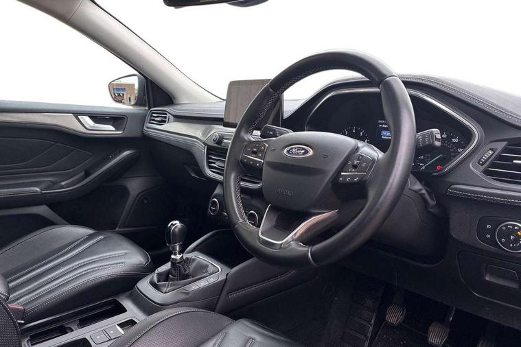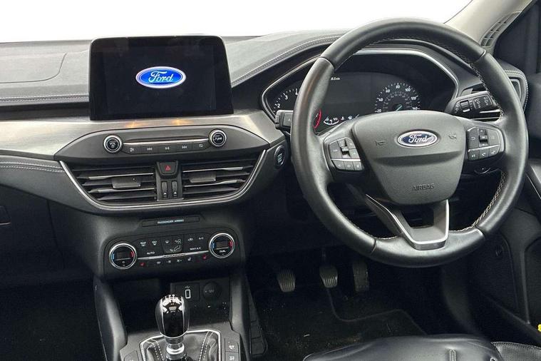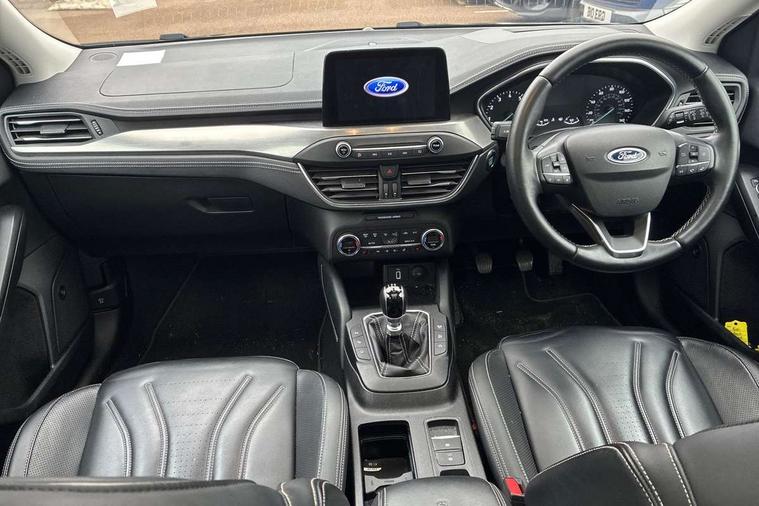 Active park assist system, Aluminium brushed instrument panel, Bluetooth system, Digital clock, Easy fuel capless refuelling system, Eco mode, Ford pass connect, Ford SYNC 3 nav system with DAB radio, 8" colour touch screen, voice control, app link, Apple car play/Android auto and 4.2" TFT coloured cluster, Front and rear parking sensors, Head up Display, Intelligent speed assist, Lane keeping aid with lane departure warning, PAS, Rear wide view camera, Selectable drive modes with slippery and trail mode, Trip computer, Vignale wrapped instrument panel, Raised ride height (30mm higher than standard), 6 speakers, Aux input, B&O Audio system with 360 degree sound, 10 speakers, 675 watts of total amplifier power and digital sound processor, 'Quickclear' heated windscreen/heated washer jets, Active branded scuff plates, Active front and rear bumper with unique upper and lower grille, Auto dimming rear view mirror, Auto headlamps (on/off), Automatic rain sensing wipers, Black painted roof and mirror caps, Body colour power folding door mirrors with puddle lights, Body coloured bumpers, Body coloured door handles, Electrically operated and heated door mirrors with side indicators, Electrically operated front and rear windows with one touch opening and closing, Front variable intermittent wipers with electric wash, Heated rear window, LED daytime running lamp, LED front fog lamps with cornering function, Openable panorama roof, Rear privacy glass, Tailgate wash/wipe, Twin exhaust tailpipes, Unique door and instrument panel inserts, Unique skid plates and side rocker mouldings, 6 way power adjustable driver seat, 60/40 split back and cushion rear seats with 2 height adjustable headrests, Ambient LED multi colour interior lighting, Centre console with armrest, Driver's seat manual height adjust, Dual zone electronic air temperature control, Front and rear floor mats with blue stitching, Front passenger seat manual height and lumbar adjust, Full leather seats, Gear lever gaiter ring with blue stitching, Heated front seats, Heated steering wheel, Height adjustable front headrests, Isofix child seat preparation, Leather steering wheel, Leather upholstery, Reach + rake adjustable steering column, Rear centre headrest, Soft console knee pads with blue stitching, ABS+Electronic Brake force Distribution, Auto hold function, Driver airbag, Electronic parking brake, Electronic stability control, Front and rear seatbelt reminder, Front inertia reel height adjustable seatbelts with pre-tensioners, Front passenger airbag, Front side airbags, Hill start assist, Passenger airbag deactivate switch, Post collision braking, Pre collision assist with autonomous emergency braking and pedestrian/cyclist detection, Side curtain airbags, Three rear inertia reel lap/diagonal seatbelts, Tyre pressure monitoring system, Keyless entry, MyKey system, Remote central locking & engine immobiliser, Thatcham category 1 alarm, 18" 5x2 spoke absolute black machined painted alloy wheels, Mini steel spare wheel,