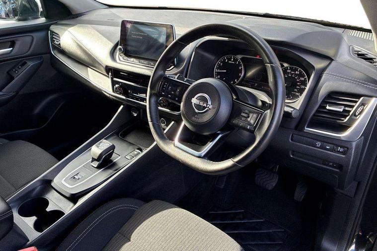 7" High definition full colour TFT screen combimeter, Android auto/Apple CarPlay (Wired), Blind spot warning, Drive modes (sport, normal, eco), Electric speed sensitive power steering, Emergency and breakdown call, Idle stop/start system, Intelligent Cruise control (ICC), Intelligent driver alert system, Intelligent forward collision warning, Intelligent lane intervention, Lane departure prevention, Lane departure warning system, Maximum speed limiter, Nissan connect 8" touchscreen infotainment system, Push button starter, Rear cross traffic alert, Rear parking sensors, Rear view camera, Traffic sign recognition with legal speed adjustment, Trip computer, 6 speakers, AM/FM audio system with DAB, Bluetooth audio streaming, Front USB connections (Type-A and Type-C), Auto dimming rear view mirror, Auto rear wiper when reversing, Automatic hazard signal with emergency stop signal, Body colour mirror caps, Body coloured door handles, Bodyside mouldings, Chrome side window finisher, Door handle with button, Electric auto folding door mirrors, Electrically adjustable and heated door mirrors with LED turn indicator, Follow me home headlights, High beam assist, Intelligent auto headlights, LED 3rd brake light, LED daytime running lights, LED Headlights, LED rear lights, One touch front and rear electric windows with remote opening and closing, Partially body coloured bumpers, Rear reversing light (bulb lighting), Rear roof spoiler, Rear side wing doors, Shark fin antenna, Splash free rain sensing wipers, Three blink turn signal, 12v power socket in dashboard and luggage, 2x Rear coat hooks, 3 bench rear seats in 2nd row, 3 rear headrests, 4 folding assist grip, 6-way manually adjustable driver's seat, 60/40 split folding rear seat bench, Centre console storage tray, Chrome interior door handles, Cloth monoform upholstery, Driver and front passenger sunvisors with illuminated vanity mirrors, Dual zone automatic climate control with pollen filter, Electrically adjustable lumbar support for driver, Front and rear door storage, Front centre console and armrest, Front cupholders x 2, Front door with bottle holders, Glovebox with light, Hard trunk cover, Height adjustable driver's seat, Height adjustable front headrests, Height adjustable passenger seat, Luggage space lighting, Manually adjustable passenger (slide recline + lifter), Multifunction steering wheel, Passenger seat back pocket, Rear armrest with 2 cupholders, Rear door bottle holders, Single front passenger seat, Steering wheel gearshift paddles, Steering wheel switches, Sunglasses holder, Tilt/telescopic adjustable steering wheel, Two rear isofix child seat anchorage points with top tether, 3x3 point rear seatbelt pretensioners + load limiters, ABS with EBD and brake assist, Active brake limited slip, Auto hold function, Child locks on rear doors, Curtain and front side, far side airbags, Driver and passenger airbags, Driver, passenger and 2nd row rear seat belt reminder, Electronic parking brake, Front seatbelt pretensioners + load limiters, Height adjustable front seatbelts, Hill start assist, Intelligent blind spot intervention, Intelligent front emergency braking with pedestrian, cyclist recognition and junction assist, Intelligent rear automatic braking, Tyre pressure monitoring system, Vehicle dynamic control, Capless fuel filler, Engine immobiliser, Intelligent Key, Remote central door locking with deadlocking, Thatcham Cat.1 alarm, Interior instrumental panel A finisher, 17" Alloy wheels, Tyre puncture repair kit,