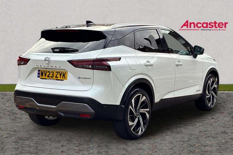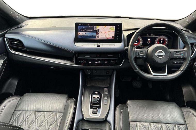Advanced windscreen head up display, Android auto/Apple CarPlay (Wired), Blind spot warning, Drive modes (sport, normal, eco), Electric speed sensitive power steering, Emergency and breakdown call, Front and rear parking sensors, Full Digital 12.3" TFT Digital Combimeter, Google maps services - search, weather, 3D maps and Google street view, Hands free power tailgate, Idle stop/start system, Intelligent around view monitor, Intelligent Cruise control (ICC), Intelligent driver alert system, Intelligent forward collision warning, Intelligent lane intervention, Lane departure prevention, Lane departure warning system, Lane keep assist, Moving object detection, Nissan connect 12.3 inch touchscreen infotainment system, Nissan connect navigation, Pro pilot park assist, ProPILOT with Navi-Link, Push button starter, Rear cross traffic alert, Rear view camera, Remote control services - door locks, lights, horn and car locator, Telematics - notifications and connectivity services, TomTom live traffic services, Traffic sign recognition with legal speed adjustment, Trip computer, Virtual personal assistant and firmware over the air capability, Wireless apple carplay, Wireless charging pad, 10 Bose speakers - 2 tweeters, 6 high and medium frequency door speakers and 2 in subwoofer, AM/FM audio system with DAB, Bluetooth audio streaming, Bose acoustimass bass box, Digital amplifier, Front USB connections (Type-A and Type-C), Rear USB charging only ports (Type-A and Type-C), Auto dimming rear view mirror, Auto rear wiper when reversing, Automatic hazard signal with emergency stop signal, Body colour mirror caps, Body coloured door handles, Bodyside mouldings, Chrome side window finisher, Door handle with button, Door mirror memory, e-POWER badging, Electric auto folding door mirrors, Electrically adjustable and heated door mirrors with LED turn indicator, Follow me home headlights, Front and rear LED turning signals, Headlights auto levelling system, Intelligent auto headlights, LED daytime running lights, LED front fog lights, LED headlights with adaptive driving beam, LED rear lights, One touch front and rear electric windows with remote opening and closing, Privacy glass, Rear bumper with graphite insert, Rear reversing light (bulb lighting), Rear roof spoiler, Rear side wing doors, Rear styling plate, Reverse tilting door mirrors, Shark fin antenna, Splash free rain sensing wipers, Super UV and infrared cut glass, Thermaclear heated windscreen, Three blink turn signal, 12v power socket in dashboard and luggage, 2x Rear coat hooks, 3 bench rear seats in 2nd row, 3 rear headrests, 4 folding assist grip, 6 Luggage hooks - 4 on floor, 2 on side, 60/40 split folding rear seat bench, Ambient lighting around centre console, Ambient lighting in front doors, Centre console storage tray, Chrome interior door handles, Dark black/blueish PVC wrapping, Dark headlining, Driver and front passenger sunvisors with illuminated vanity mirrors, Driver seat back pocket, Dual zone automatic climate control with pollen filter, e-POWER shifter, Electric 4-way lumbar support for drivers seat, Electric adjustable 4 way lumbar support for passenger seat, Electrically adjustable driver seat with massage and memory functions, Front and rear door storage, Front centre console and armrest, Front cupholders x 2, Front door with bottle holders, Glovebox with light, Hard trunk cover, Heated front seats, Heated steering wheel, Height adjustable driver's seat, Height adjustable front headrests, Height adjustable passenger seat, Leather steering wheel, Luggage board system, Luggage space lighting, Manually adjustable passenger (slide recline + lifter), Multifunction steering wheel, Passenger seat back pocket, Quilted premium leather upholstery, Rear armrest with 2 cupholders, Rear door bottle holders, Single front passenger seat, Soft PVC kneepad, Steering wheel switches, Tilt/telescopic adjustable steering wheel, Two rear isofix child seat anchorage points with top tether, Welcome light and doors with console tray ambient lighting, Glass roof pack with roof rails - Qashqai, 3x3 point rear seatbelt pretensioners + load limiters, ABS with EBD and brake assist, Active brake limited slip, Auto hold function, Child locks on rear doors, Curtain and front side, far side airbags, Driver and passenger airbags, Driver, passenger and 2nd row rear seat belt reminder, Electronic parking brake, Front seatbelt pretensioners + load limiters, Height adjustable front seatbelts, Hill start assist, Intelligent blind spot intervention, Intelligent front emergency braking with pedestrian, cyclist recognition and junction assist, Intelligent rear automatic braking, Tyre pressure monitoring system, Vehicle dynamic control, Advance intelligent key with driver memory storage (seats, mirrors, audio), Capless fuel filler, Engine immobiliser, Remote central door locking with deadlocking, Thatcham Cat.1 alarm, Interior instrumental panel C finisher, 20" Diamond cut alloy wheels, Tyre puncture repair kit,