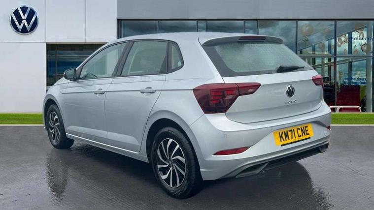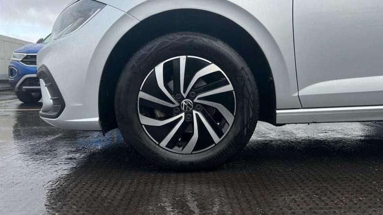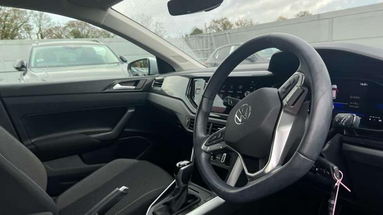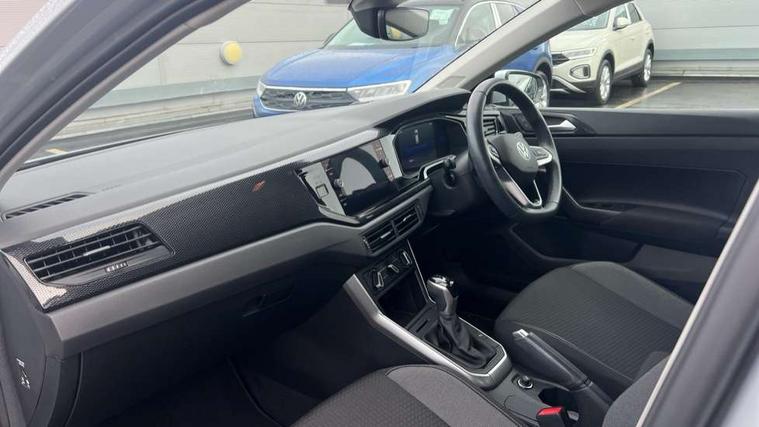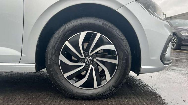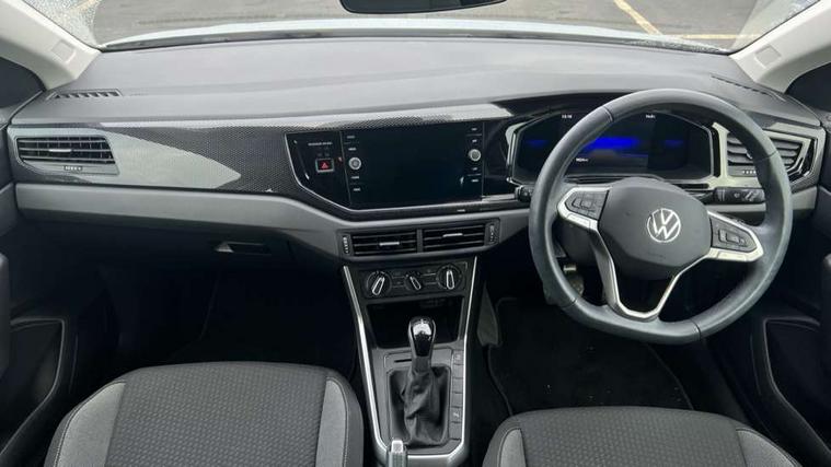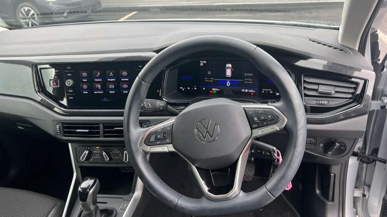Adaptive cruise control with follow-to-stop and speed limiter, Bluetooth mobile phone interface, Driver alert system, Emergency call service, Front assist system, Power assisted speed sensitive steering, Preparation for We connect and We connect plus, Speedo and rev counter, electronic odometer, trip, service interval display and fuel gauge, Standard rear axle, Travel Assist - Lane keeping system and traffic jam assist, Travel assist including emergency assist, Trip computer, Warning signal and warning light for front and rear seatbelts not fastened, Washer fluid level indicator, Wireless app connect, Front wheel drive, Rear shock absorpion, Start-stop system with battery regeneration (recuperation - energy recovery during braking), DAB Digital radio, Diversity antenna for FM reception, Automatic dimming interior rear view mirror, Body colour bumpers, Body colour door handles, Body colour door mirrors, Chrome plated radiator grille inserts, air vent surrounds and light switch surrounds, Electric front windows, Heat insulating glass in side and rear windows, Heat insulating glass windscreen, Power folding adjustable/heated exterior mirrors and front passenger exterior mirror lowering function, Rain sensor, Rear electric windows, Rear fog light, Rear windscreen washer and wiper with interval delay, Third brake light, 12V power socket in centre console, 2 front and 2 rear reading lights, 2 USB-C ports in the front, 2 USB-C charging sockets on the center console in the rear, 3 rear head restraints, 60/40 split folding rear seat and rear seat bench not split, Ceramique headliner, Door and side trim panel, Driver and front passenger seat height adjustment, Driver/passenger sunvisors with illuminated vanity mirrors, Front centre armrest, Front seat backrest storage pockets, Front standard seats, Handbrake lever handle in leather, Hartley/Thomas cloth upholstery, Isofix child seat preparation easy-fit (for two outer rear seats, and front passenger seat) compatible with I-size, Leather trimmed gear knob, Luggage compartment cover, Luggage compartment floor, Luggage compartment lighting, Standard pedal cluster, Three spoke leather wrapped multifunction steering wheel with shifting paddles, Light and vision pack - Polo, 3 point height adj front seatbelts + pretensioners, 3x3 point rear seatbelts, ABS, Driver and front passenger airbag with front passenger airbag deactivation, Drivers and front passengers safety optimised head restraints, ESC (Electronic stability control) + EDL (Electronic Differntial lock) and ASR (Traction control), Extended and predictive pedestrian/ cyclist protection, Front curtain and side airbags with center airbag, Front disc brakes, Hill hold control, Rear drum brakes, Single tone horn, Tyre pressure loss indicator, Alarm with interior protection, Anti-theft alarm system with interior monitoring, backup horn, and towing protection, Anti-theft wheel bolts, Electronic engine immobiliser, Remote central locking with 2 remote folding keys, Lava stone black gloss/matt decorative inserts in dash and front door panels, Low rolling resistance tyres,