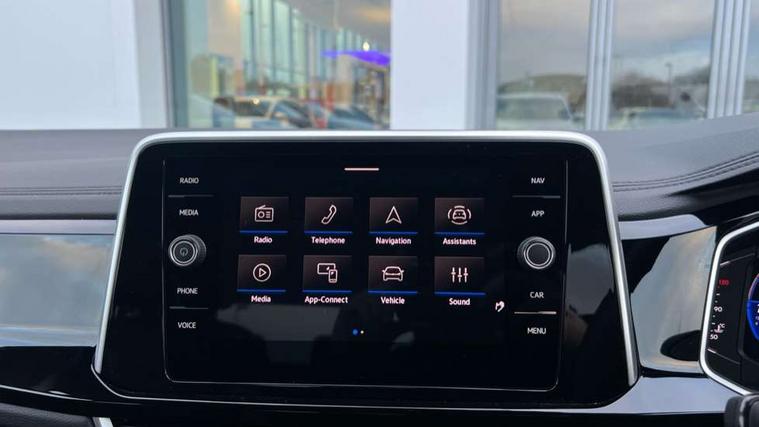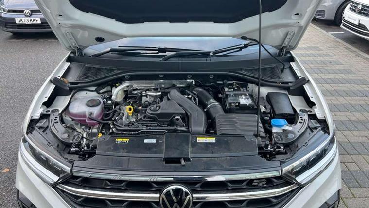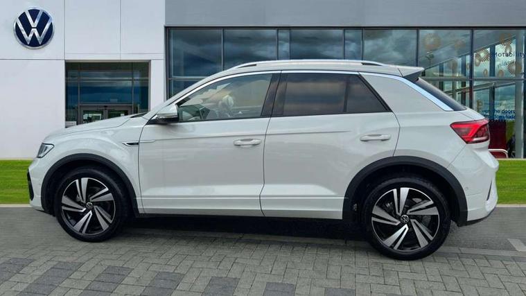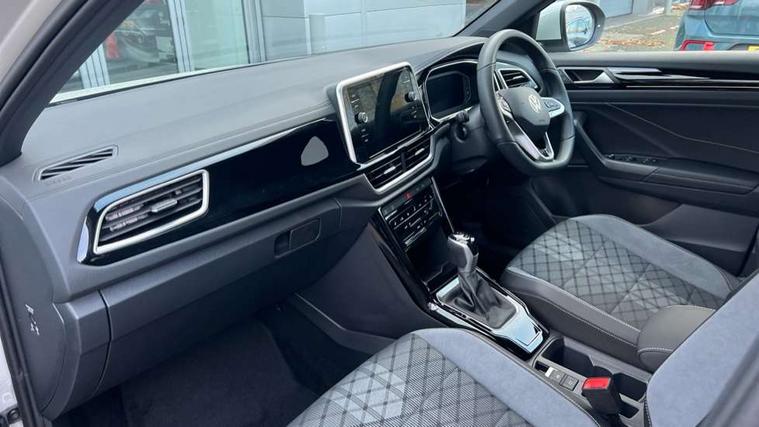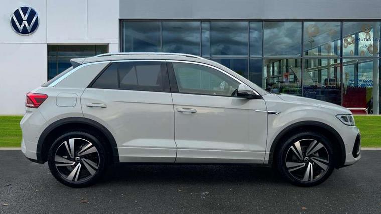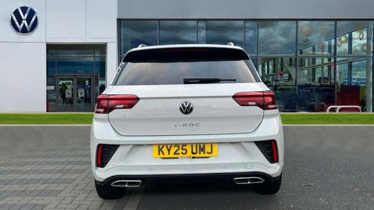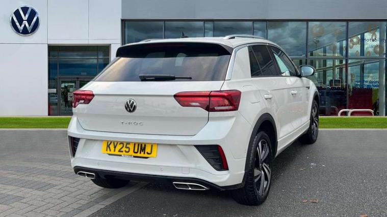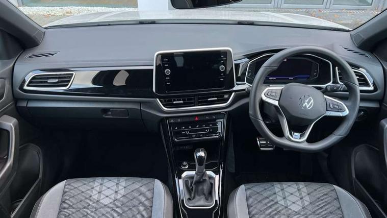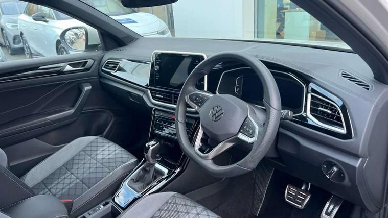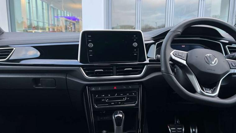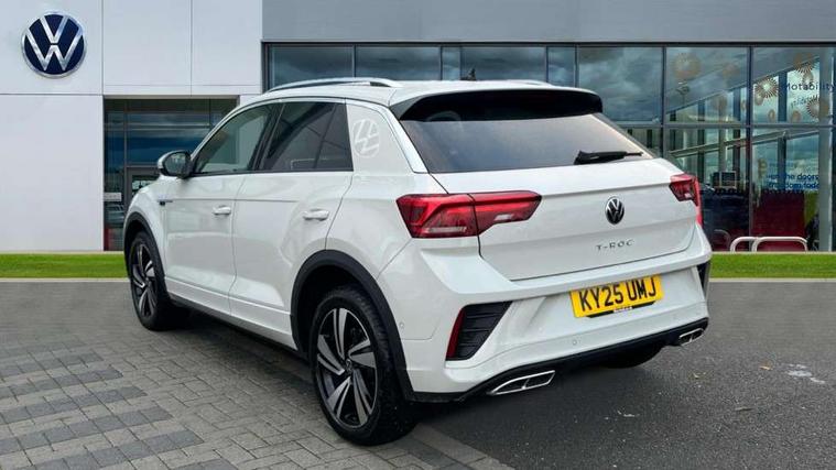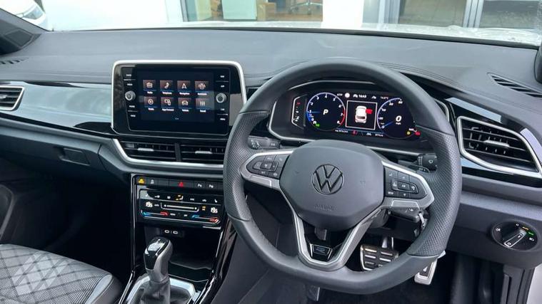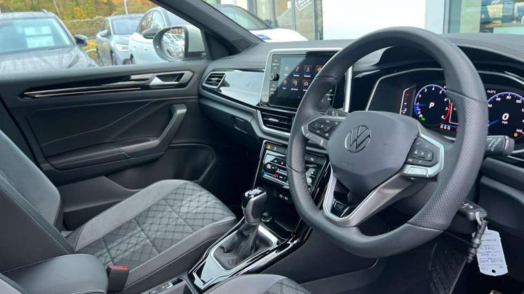 10.25" Digital cockpit pro, Advanced driver attention and drowsiness monitor, Emergency call service, Lane keeping system Lane Assist, Mobile phone interface, Modified key software - reduce switch off time for key status change to Long no motion, Online services, Park assist including front and rear parking sensors, Service interval indicator, Tailgate/trunk lid release from outside, Think blue trainer driver tips and journey analysis, Warning sound and light for front seatbelts unfastened, Wireless app connect, Battery regeneration during braking, Start/stop function with battery regeneration, DAB Digital radio, Diversity antenna for FM reception, Front and rear 6 speakers, Music playback - MP3, WMA and AAC files, Premium USB cable in choice of either Apple or Android smartphone compatibility, SD card slot, Simultaneous pairing of 2 compatible mobile devices, Title and cover art display, We Connect and We Connect Plus functionality, Auto dimming interior rear view mirror, Automatic hazard lights activation under emergency braking, Automatic headlight control with LED separate daytime running lights with coming/leaving home function, Body coloured exterior mirror housings and door handles, Electrically adjustable and heated door mirrors, Extended roof spoiler, Exterior mirrors aspherical on driver side, convex on front passenger side, External USB type C socket and charging sockets, Front windscreen wiper with intermittent wipe and 4 position delay, Heated rear window, LED 3rd brake light, LED rear combination lamps, LED rear number plate lights, Power windows with comfort operation and circuit breaker, Privacy glass for rear side windows and rear window, R-Line design body coloured bumpers, Rain sensor, Rear exhaust tailpipe, Rear fog light on one side and reversing lights on both sides, Rear side wing doors, Rear wash/wipe with intermittent wipe setting, Remote electrically foldable door mirrors, puddle lights and reverse activated passenger's door mirror, 12V power socket in centre console, 3 rear head restraints, 3 seat bench in 2nd row, 4 load lashing points in luggage compartment, Air care climatronic air conditoning system with active combination filter and 2-zone temperature control, Black roof lining, Chrome plated decorative trims, Chrome plated radiator grille inserts, air vent surrounds and light switch surrounds, Door and side trim panel with leatherette insert, Front + rear carpet mats, Front centre armrest, Front cupholders x 2, Front footwell illumination, Front reading light, Front scuff plates with R Line logo, Front seat back storage pockets, Glove compartment door with light, Instrument lighting, white adjustable panel illumination, Interior ambient lighting and surround lighting, Interior light delay, Isofix child seat preparation, Leather gearshift handle, Load-through provision with cup holder when folded down ('Unsplit rear seat bench, split folding backrest, with centre armrest), Luggage compartment lighting, Single front passenger seat, Stainless steel pedals, Storage compartment in left and right luggage area, Storage compartment in rear doors, Storage compartments in driver and front passenger doors, Sunvisors with illuminated vanity mirrors, Variable boot floor, height adjustable and removable, Driver assistance pack without proactive passenger protection - T-Roc, 3 point height adj front seatbelts + pretensioners, 3 point seatbelts in outer rear with ECE label, ABS, Child locks on rear doors, City emergency braking and pedestrian monitoring, Driver and front passenger airbag with front passenger airbag deactivation, Driver and front passenger safety-optimised head restraints, Drivers seatbelt reminder, Electronic parking brake, Electronic Stability Control (ESC) inc EDL (Electronic Differential Lock) and ASR (Traction Control), Front and rear passengers curtain airbag system including front side airbags, Hill start assist, Predictive pedestrian protection, Rear disc brakes, Two tone horn, Tyre pressure loss indicator, Volkswagen roadside assistance, Piano black decorative inserts in dashboard and front door trim panels, Trims for alloy wheels,