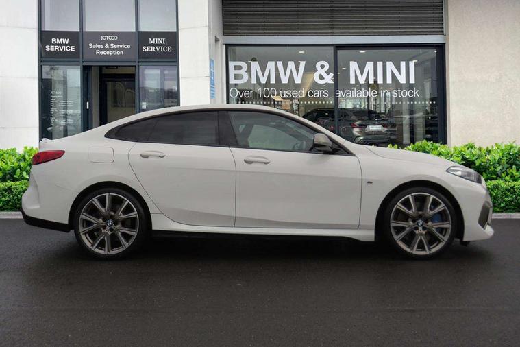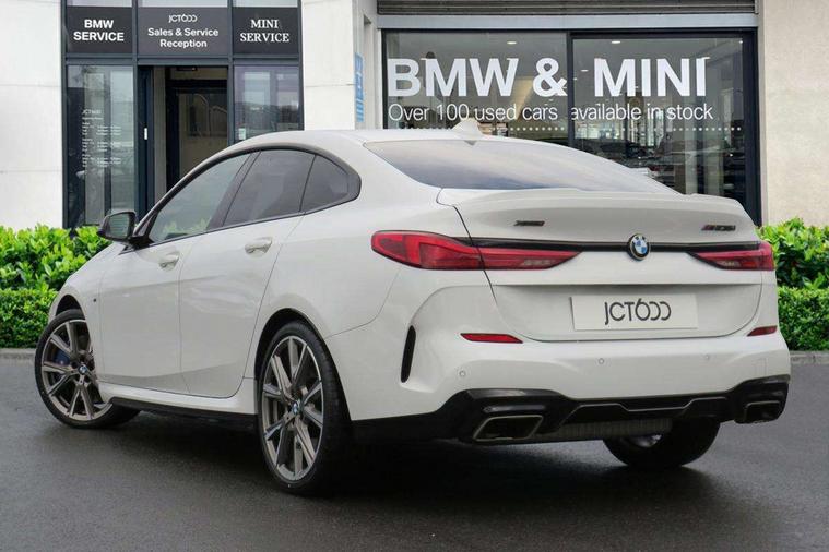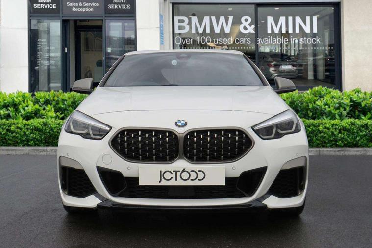 Active guard plus, Attentiveness assist, Auto start-stop, BMW Intelligent Personal Assistant, BMW Live Cockpit Professional with 10.25" high resolution instrument and control display, BMW Online services, BMW operating system with 7.0 mid interface, BMW Teleservices, Check Control warning system for monitoring of lights and door/luggage compartment open warning, Electro hydraulically controlled multi plate clutch in rear axle, Energy efficient operating strategy, iDrive controller with touch function and 7 short cut favourite buttons on centre console, Integrated navigation data with map data via USB +features such as 3D landmarks and micro city models, Integrated owners handbook, Intelligent voice assistant, M Sport steering with M235i xDrive M performance specific settings, On board computer - average speed+fuel consumption, service interval, clock/date, odometer/trip meter, outside temperature display and ice warning, Optimum shift indicator, Personal Profile, Pull away assistant, Speed limiting function, 2 balance shafts, 8 speed sport automatic transmission with electronic selector lever, auto P function, coasting idle, race track, sport, gearchange display manual mode, Aluminium lightweight construction, Double VANOS, Drive performance control with ECO PRO comfort + sport mode, Electronic differential lock, Engine cover with M performance designation, High precision injection, Larger fuel tank capacity (50 litres), Launch control, M235i specific heavily de-throttled engine intake air guide, M235i specific high-performance cooling package, M235i specific larger turbocharger with integrated divert-air valve, Performance Control, Petrol Particulate Filter, Power transmission of front wheel drive on the rear axle via angle transmission on the front axle differential and two part cardan shaft, VALVETRONIC engine management, Variable, stepless and infinitely adjustable distribution of drive torque between the front and rear axles, xDrive intelligent all wheel drive with M235i specific reinforced components, 2x USB Type C ports (for charging and data transfer), 4G LTE Connectivity with hard wied 4G network sim card, DAB digital radio, MP3 players and RDS double tuner, Automatically dimming rear view mirror, Body colour door handles, Direction indicator side lights integrated exterior mirrors, Electric windows - front and rear, with open/close fingertip control and trap release, Exterior mirrors - electrically folding with anti-dazzle, Fading support, Follow me home headlights, Front and rear bumper system with replaceable deformation elements, Front door sill finishers in black plastic with M235i designation, Heated, electrically adjustable exterior mirror aspheric on driver side, convex on passenger side, High gloss black B pillar finish, High gloss shadow line exterior trim, High level third brake light, LED daytime running lights, LED front fog lights, Lightweight engineering, M Performance exhaust system with valve control and minimised exhaust back pressure, M rear spoiler, Model designation on right side of tailgate includes xDrive designation onleft handside for M235i xDrive, Preparation for high beam assistant, Rain sensor with automatic headlight activation, Rear fog lights, Reinforced crank drive, new pistons and adapted con rods, Reversing light in rear light cluster, Welcome lighting, 12V power socket in centre console, 2 cupholders in front centre console, 3 rear seat head restraints, 3 spoke M sports design leather steering wheel finished in nappa leather with specific M badge, Additional under floor storage in luggage compartment, Anthracite finished floor mats with contrasting surround, Anthracite headlining, Automatic two zone climate control air conditioning, Child seat ISOFIX attachment for two outer rear seats and front passenger seat with anchorage points, Conditioned based service, Driver and front passenger seat heating, Front and rear door pockets including bottle trays, Front and rear side armrests integrated into door trim, Front armrest foldable with integrated storage compartment, Front centre interior light over interior mirror and rear centre automatic interior light when door is opened/ignition switched off or via remote key, Front head restraints, Front M Sport seats, Glove compartment, Glovebox with light, Luggage compartment lighting, Manually adjustment steering wheel column, Multi-function controls for steering wheel, Shift-by-wire selector shift, Steering wheel paddles, Sun visors with vanity mirrors and insert tab, Through loading system with 40/20/40 split folding rear seat, Two lashing eyes, Additional interior lighting pack - 2 Series Gran Coupe, Connected pack professional - 2 Series Gran Coupe, Extended storage pack - 2 Series Gran Coupe, M Sport exterior styling aerodynamics pack - 2 Series Gran Coupe 235i, 2 tone horn, Airbag - Front driver and passenger, front and rear head, front side, curtain head protection, manual deactivation of front passenger airbag possible, Anti lock braking system (ABS) with cornering brake control, BMW emergency call, Brake drying, Braking readiness, Crash sensor activating of airbags, Unlocking doors, hazard warning lights, interior light, safety battery terminal, Dynamic stability control + (DSC+), Dynamic Traction Control - DTC, Electrically operated hand brake, Integrated torsen mechanical limited slip differential on front axle, M Sport braking system in blue high gloss + blue painted brake calipers with M designation, M sport seatbelt, Rear brake discs, Rear child proof door locks, Seat belt security check for driver and front passenger, Seatbelt warning, Side impact protection, Three point seat belts on all seats including front belt stopper, pyrotechnic belt tensioners and belt force limiters, Trailer stability control, Tyre pressure monitoring system, Ventilated front disc brakes, Warning triangle and first aid kit, Central locking switch for all doors, fuel filler cap and luggage compartment, Deadlocking f