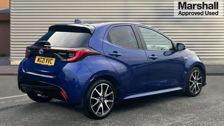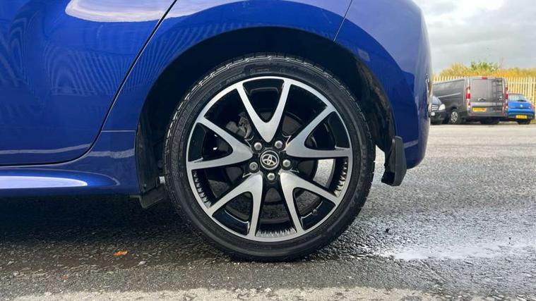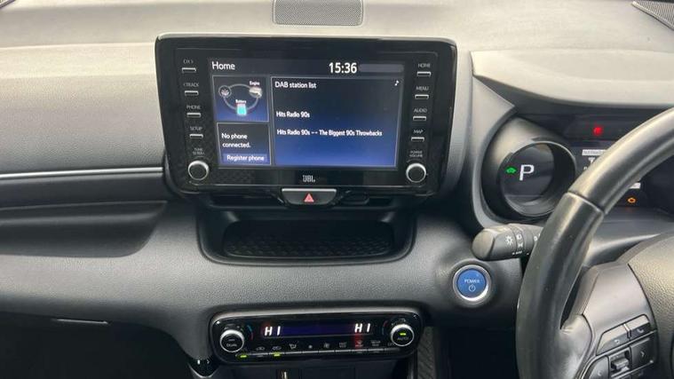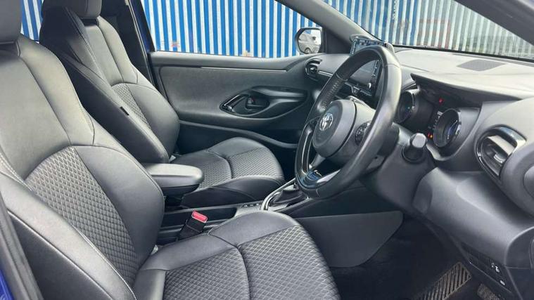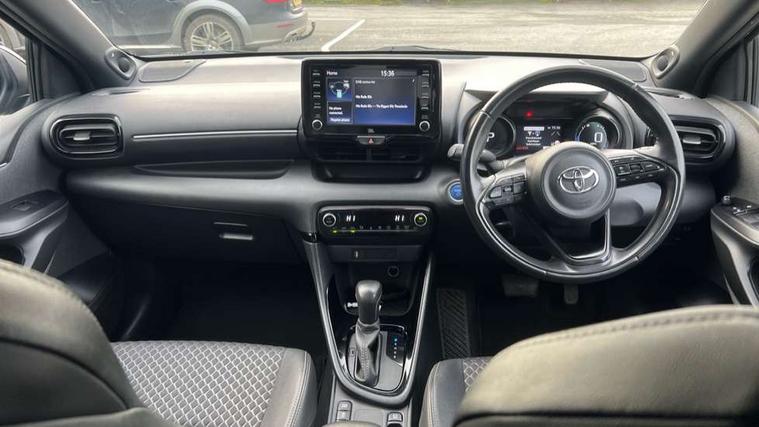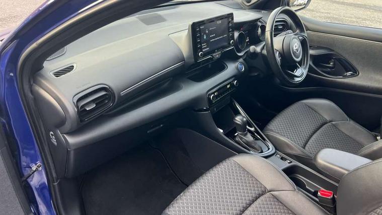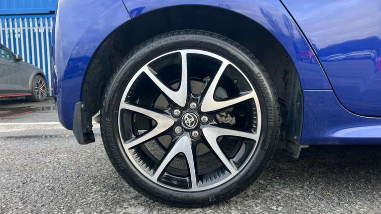 Adaptive cruise control, Adjustable speed limit with speed warning, Bluetooth connectivity, Colour binocular inspired displays with digital speedometer, E-call, Electric power steering, Hybrid energy display, Multi information display switches on steering wheel, Reversing camera, Smartphone integration with Apple CarPlay and Android auto, Vehicle Stability Control (VSC), 8" Multimedia display touch screen, JBL Premium sound system with 8 speakers, Toyota Touch 2 with DAB, USB connection, Acoustic windscreen glass, Auto windscreen wipers, Automatic headlights, Body coloured door mirrors, Electric adjustable heated door mirrors, Follow me home headlights, Front auto power windows with anti jam protection, Full LED rear lights, LED daytime running lights, LED front fog lights, LED Headlights, LED High mounted stop lamp, Painted front grille, Rear auto power windows with anti jam protection, Rear privacy glass, Rear spoiler, Shark fin antenna, Turning signal integrated indicators in door mirrors, 3 adjustable rear headrests, 3 spoke leather steering wheel, 60/40 split folding rear seat, Active headrests, Adjustable boot height, Coat hooks in rear grab handles, Cup holders (2 front & door), Data Communication Module (DCM) connected services, Dual zone automatic air conditioning, Fabric seat with partial synthetic leather upholstery, Front armrest, Front sport seats, Glovebox, Height adjustable driver's seat, Height adjustable passenger seat, Isofix seat fixing, Leather gearshift, Map pockets on the backs of the front seats, Pollen filter, Shopping bag hooks, Tilt/telescopic steering column, 3 point seatbelts on all rear seats, ABS+EBD+Brake assist, Electronic parking brake, Emergency brake light system (EBS), Front passenger airbag on/off switch, Front seatbelt reminder, Hill start assist control (HAC), Rear child proof door locks, Rear seat belt reminder, Supplemental Restraint System (SRS) 8 airbags: Driver & passenger's airbags, dual side curtain airbags, side impact airbags, front centre airbag, Toyota Safety Sense 2, Precollison + Night time Pedestrian & Cyclist Detection, Lane Trace Assist, Auto High Beam, Intelligent ACC & Road Sign Assist, Tyre pressure warning system, Alarm/immobiliser, Keyless smart entry with push button start, Remote powered central double locking doors, Piano black interior trim, Soft touch instrument panel, Space saver spare wheel,
