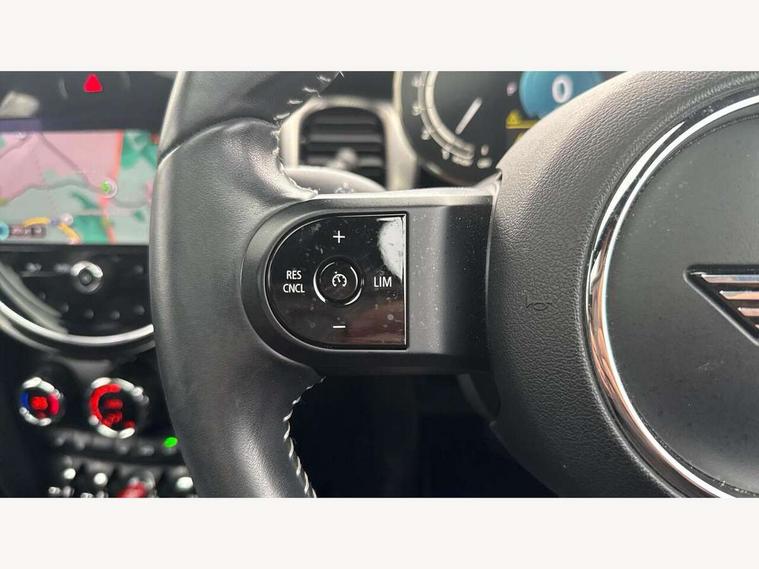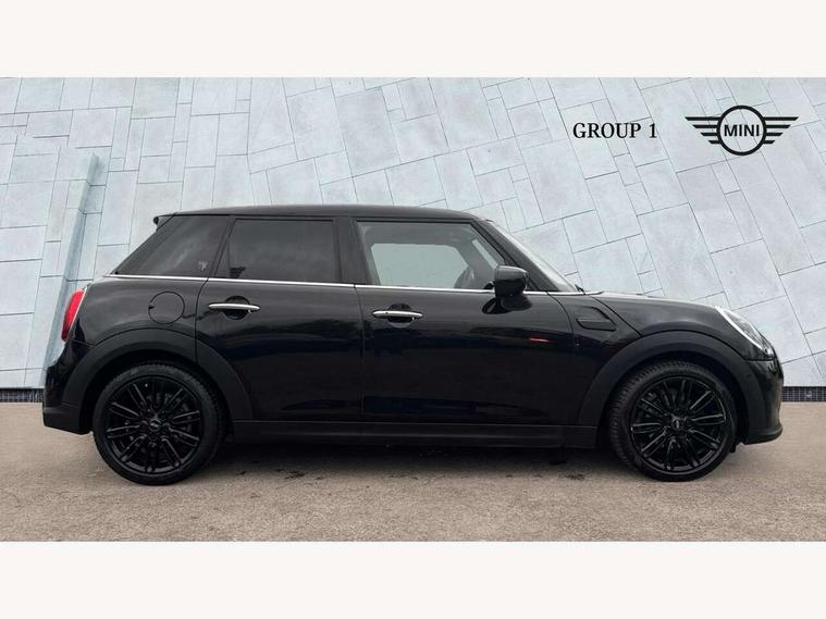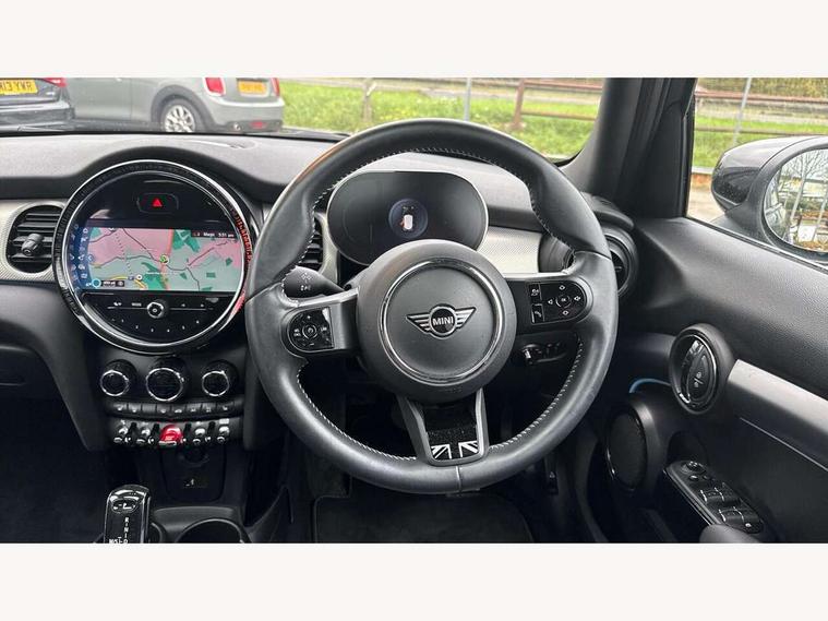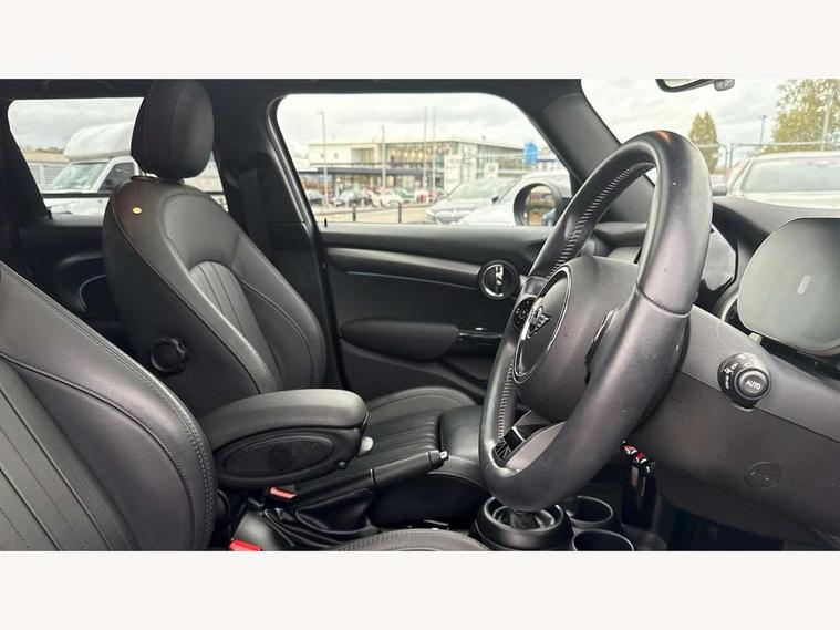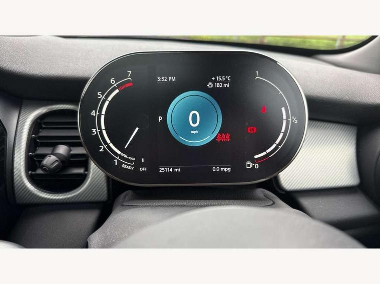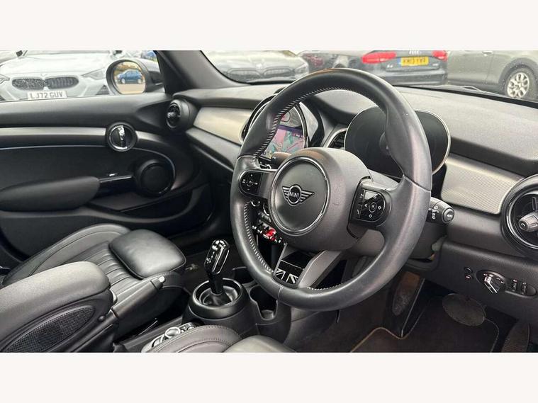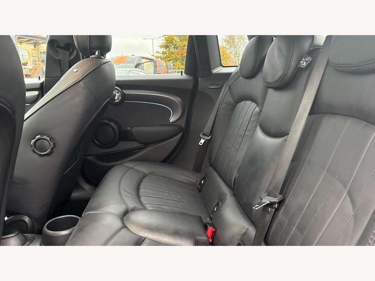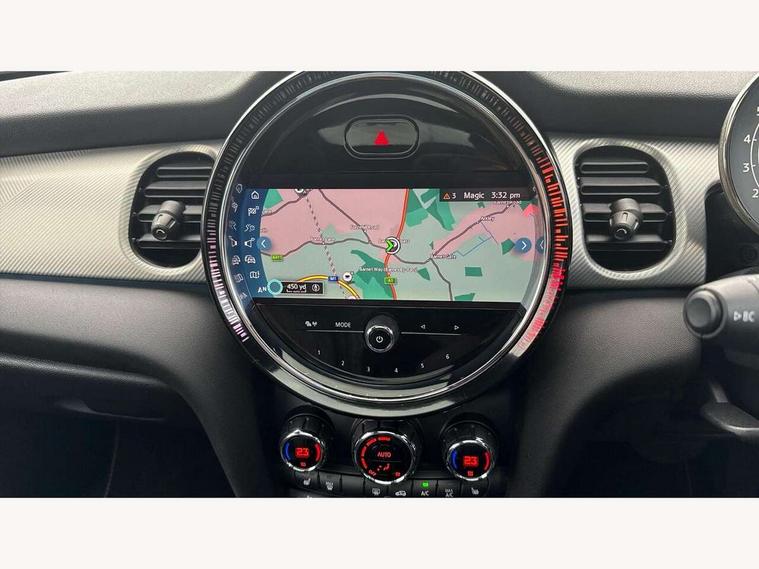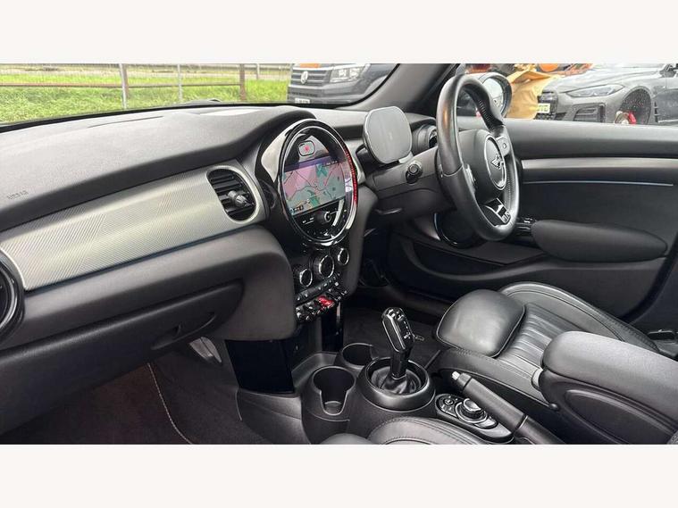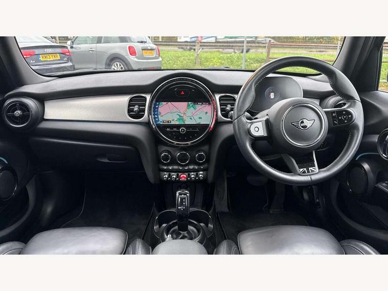Automatic start/stop function with brake energy recuperation, Compatible mobile phone bluetooth with audio streaming, Cruise control with brake assist, Electro-mechanical speed dependant steering assistance, Flexible car sharing preparation, Instrument cluster, MINI Driving Modes - centre toggle switch to control driving setting (sport, mid and green), Mini E-call, MINI TeleServices, On board computer, Rear park distance control, Service interval indicator, Double Vanos system, Fully variable valve control, Gear change indicator display, High precision injection, Performance Control, Steptronic transmission with double clutch, 6 speakers in front door trims and underneath front seats, 8.8" touchscreen with LED ring, FM tuner and DAB digital radio, Automatic headlight activation switch, Body colour fuel filler cap, Chrome line exterior - radiator grille bars, tailgate handle, lower front grille grating and rear central fog-light, Dynamic brake lights, Electric front+rear windows, Heated rear window, Heated windscreen washer jets, LED headlight with closed ring and daytime driving lights, Metal door sill strips with MINI imprint, Model logo Cooper on right of tailgate, Rain sensor window wipers, Rear fog lights, Rear LED lights with union jack design, Rear window wiper, Side scuttle panel with integrated indicator, Sun/heat protection glass, White indicator lenses, 12V Accessory socket in centre console, 4 lashing eyes in luggage compartment, 60/40 split folding rear seat, Anthracite headliner including grab handles and clothes hooks, Carbon black colour line - Knee roll and door armrest, Chrome interior highlights, Chrome line interior - air vents, gear lever base, door handles and speakers in doors, Cupholders, Front and rear head restraints, Front and rear isofix with front passenger airbag deactivation, Glove compartment, Height and length steering column adjustment, Interior lighting with 12 different colours across the dashboard, underneath door bezel with illuminated laser-engraved design on central display, Leatherette gearshift lever and handbrake gaiters, LED reading lights, vanity mirror lights, front foot well light and spotlight on front seats, Manual air conditioning, Mechanical seat adjustment - forward/back & backrest for front seats and driver seat height adjust, MINI yours badge on exterior pillar, Multifunction steering wheel, Storage compartments in doors, Sunvisors with vanity mirrors, Velour floor mats, Walknappa leather steering wheel with grey seam and MINI Yours badge on Piano Black lower steering wheel spoke, 3 point seatbelts on all five seats, 6 Airbags - front, side, head and seat belt tensioners, Anti-lock braking system (ABS), DSC - Dynamic Stability Control, Front and rear disc brakes, Hill start assist, Single tone fanfare horn, Tyre pressure monitoring system, Alarm system with tilt sensor, monitoring doors, bonnet interior and tailgate, Electronic vehicle immobiliser, Start/stop toggle with keyless go, Tool kit,