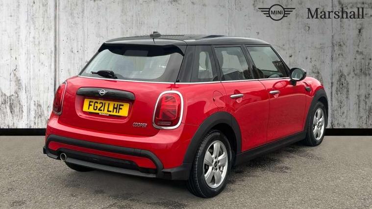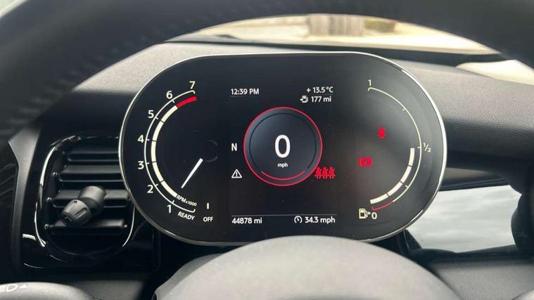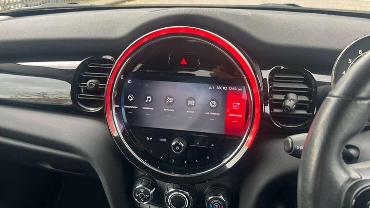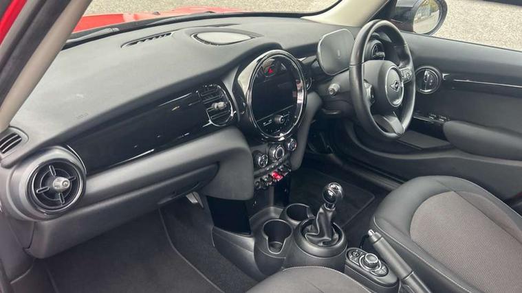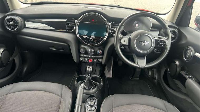 Automatic start/stop function with brake energy recuperation, Compatible mobile phone bluetooth with audio streaming, Electro-mechanical speed dependant steering assistance, Flexible car sharing preparation, Instrument cluster, Mini E-call, MINI TeleServices, On board computer, Service interval indicator, 6 Speed manual transmission including gear change indicator display, Double Vanos system, Fully variable valve control, High precision injection, Performance Control, 8.8" touchscreen with LED ring, FM tuner and DAB digital radio, Automatic headlight activation switch, Body colour fuel filler cap, Chrome border high gloss black slats radiator grille, Dynamic brake lights, Electric front+rear windows, Exhaust tailpipe on left with chrome finisher, Heated rear window, Heated windscreen washer jets, LED headlight with closed ring and daytime driving lights, Metal door sill strips with MINI imprint, Model logo Cooper on right of tailgate, Rain sensor window wipers, Rear fog lights, Rear LED lights with union jack design, Rear window wiper, Side scuttle panel with integrated indicator, Sun/heat protection glass, White indicator lenses, 12V Accessory socket in centre console, 4 lashing eyes in luggage compartment, 60/40 split folding rear seat, Carbon black colour line - Knee roll and door armrest, Chrome interior highlights, Cupholders, Front and rear head restraints, Front and rear isofix with front passenger airbag deactivation, Glove compartment, Height and length steering column adjustment, Interior lighting with 12 different colours across the dashboard, underneath door bezel with illuminated laser-engraved design on central display, Leatherette gearshift lever and handbrake gaiters, LED reading lights, vanity mirror lights, front foot well light and spotlight on front seats, Manual air conditioning, Mechanical seat adjustment - forward/back & backrest for front seats and driver seat height adjust, Multifunction steering wheel, Satellite grey headlining including grab handles and clothes hooks, Sport leather steering wheel with speed limiter and audio/communication controls, Storage compartments in doors, Sunvisors with vanity mirrors, Velour floor mats, 3 point seatbelts on all five seats, 6 Airbags - front, side, head and seat belt tensioners, Anti-lock braking system (ABS), DSC - Dynamic Stability Control, Front and rear disc brakes, Hill start assist, Single tone fanfare horn, Tyre pressure monitoring system, Alarm system with tilt sensor, monitoring doors, bonnet interior and tailgate, Electronic vehicle immobiliser, Start/stop toggle with keyless go, Piano black interior trim, Tool kit, Tyre repair kit,