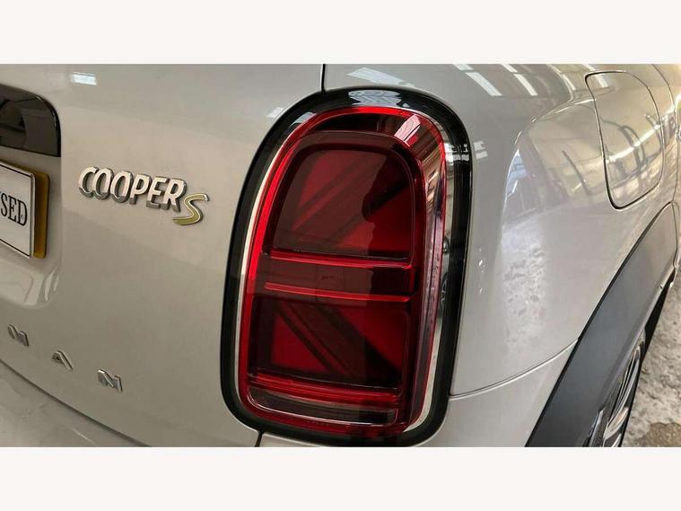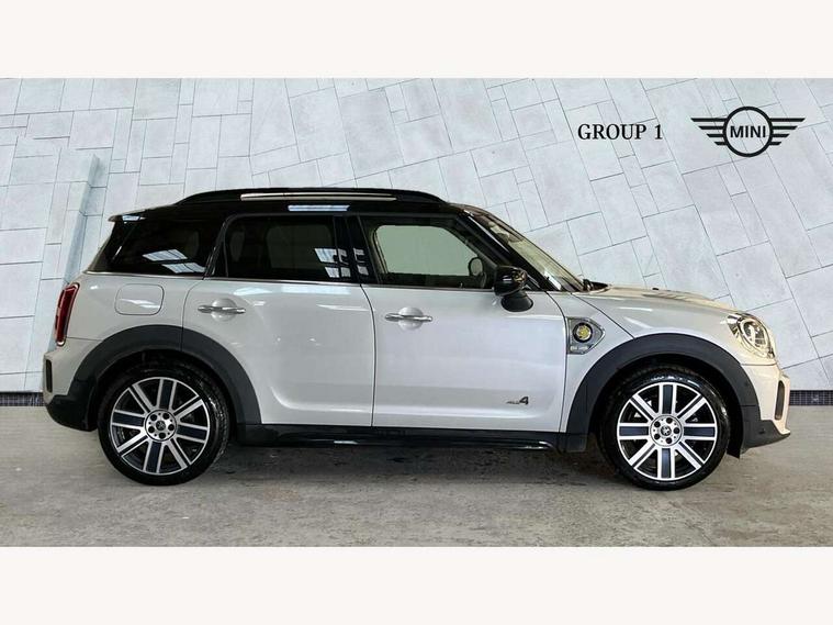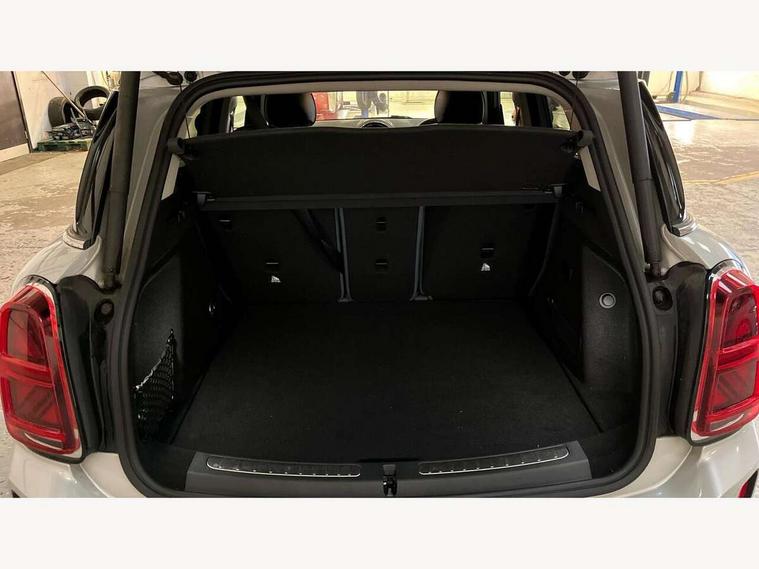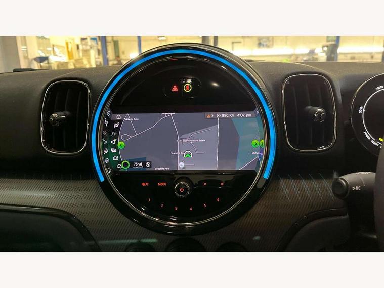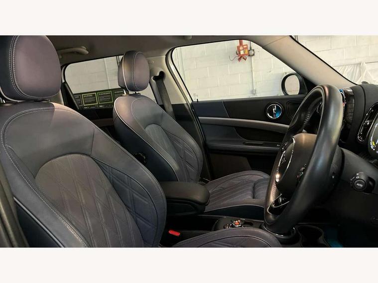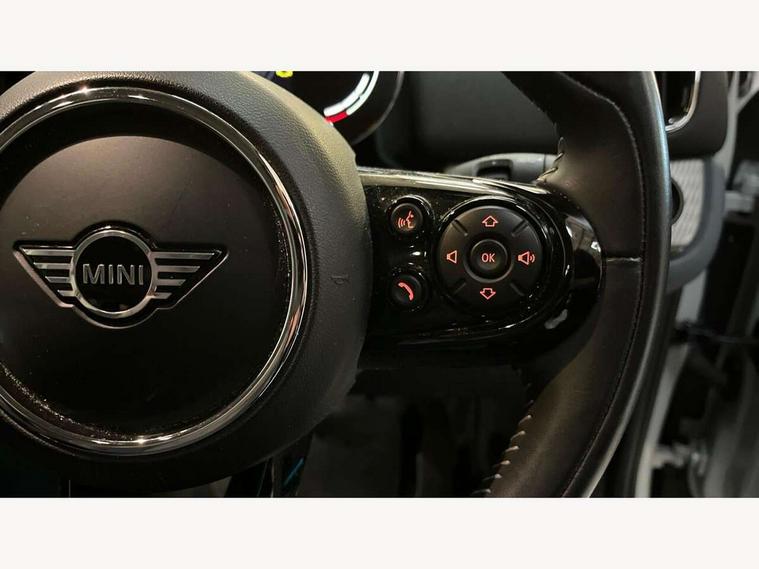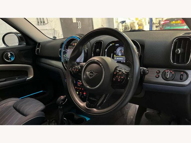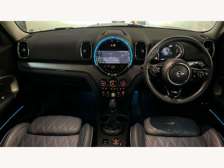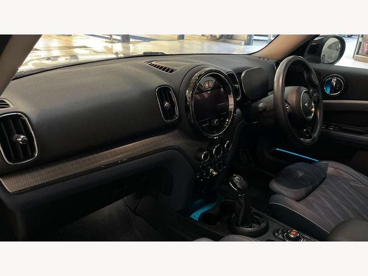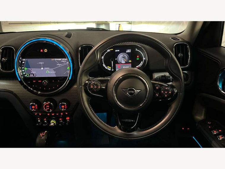 Active Guard incl speed limiting and lane departure functions with auto steering, and front collision warning with brake intervention, Automatic start/stop function with brake energy recuperation, Digital cockpit, eDrive button, Electro-mechanical speed dependant steering assistance, Instrument cluster, MINI Driving Modes - centre toggle switch to control driving setting (sport, mid and green), Mini E-call, MINI TeleServices, On board computer, Rear parking distance control, Automatic transmission, Charging flap on front left lower A-panel, Double Vanos system, Fully variable valve control, High precision injection, Home charging cable, Performance Control, Public charging cable, FM tuner and DAB digital radio, Bonnet scoop, Chrome border honeycomb structure radiator grille with S badge, Chrome fuel filler cap, Chrome line exterior, Day time driving lights, Dynamic brake lights, Electric windows, Heated rear window, Heated windscreen washer jets, LED fog lights, LED Headlights, Metal door sill strips with Cooper S imprint, Model logo, Model logo on Tailgate, Rain sensor with auto headlights, Rear fog lights, Rear window wiper, Side scuttle panel with integrated indicator, Split rear doors, Sun/heat protection glass, Twin exhaust tailpipe, White indicator lenses, 12V Accessory socket in centre console, 360L luggage compartment capacity, 4 lashing eyes in luggage compartment, 40:20:40 split folding rear seats, Chrome interior highlights, Colour line - Carbon black, Cupholders, English handbook, Front headrests, Glove compartment, Height and length steering column adjustment, Interior lighting with 12 basic colours selectable via toggle switch in roof, Isofix rear child seat preparation, Leather gearshift lever and handbrake gaiters, LED reading lights, vanity mirror lights, front foot well light and spotlight on front seats, Manual air conditioning, MINI Yours fine walk nappa leather steering wheel with contrast stitching in silver and MINI Yours badge, Multifunction steering wheel, Passenger seat height adjuster, Rear headrests, Storage compartments in doors, Sunvisors with vanity mirrors, Tool kit, Excitement pack - Countryman, Navigation pack - Countryman, 2 tone horn, 3 point seatbelts on all seats, 6 Airbags - front, side, head and seat belt tensioners, Acoustic pedestrian protection, Anti-lock braking system (ABS), DSC - Dynamic Stability Control, Electronic handbrake, Front and rear disc brakes, Hill start assist, Tyre pressure monitoring system, Alarm system with tilt sensor, monitoring doors, bonnet interior and tailgate, Auto drive away locking, Deadlocking function, Electronic vehicle immobiliser, Locking wheel bolts, Start/stop toggle with keyless go, Chrome line interior,