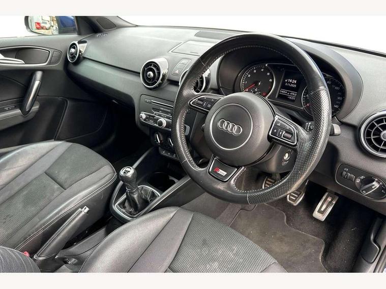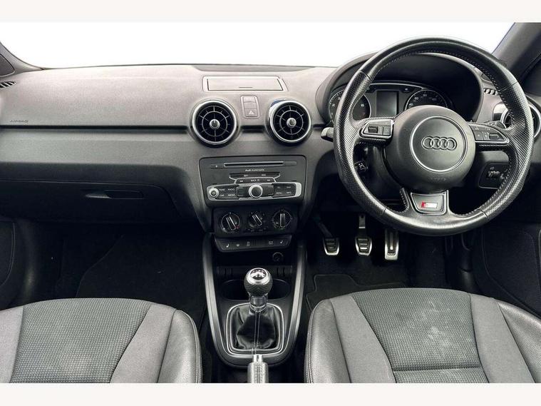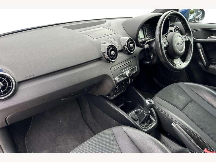 Audi drive select, Cruise control, Driver's information system, Electro-mechanical PAS, Low washer fluid indicator, Service interval indicator, Voice control system, Additional SD card reader, Audi music interface, Bluetooth audio streaming, DAB Digital radio, Adaptive brake lights, Body coloured bumpers, Body coloured door mirrors, Electric adjustable door mirrors, Electric front windows, Electric rear windows, Front fog lights, Heat insulating glass, Heated door mirrors, Heated rear windscreen, Rear diffuser, Rear wiper, Roof spoiler, S Line body styling, Xenon plus headlights including automatic headlights, LED daytime running lights, LED rear lights, dynamic range control and headlight washers, 12V Accessory socket in centre console, Adjustable rear head restraints, Black cloth headlining, Cupholders in centre console, Door sills trims with aluminium inlays, Front floor mats, Front head restraints, Height adjustable front seats, Illuminated glovebox, Isofix attachments on outer rear seats, Jack and tool kit, Leather handbrake, Lumbar adjustment for front seats, Rake/reach adjustable steering wheel, Split folding rear seats, Non smoking pack - A1, ABS/EBD, Brake assist function, Driver and passenger side airbags, Driver/Front Passenger airbags, EDL, ESP with ASR, First aid kit, Front and rear seatbelt reminder, Front passenger airbag deactivation, Head airbags, Height adjustable front seatbelts, Tyre pressure monitor, Warning triangle, Locking wheel bolts, Remote control central locking, Thatcham category 1 alarm + immobiliser, Tyre repair kit,