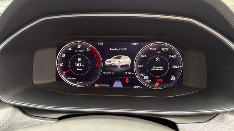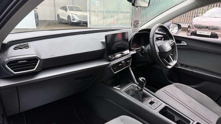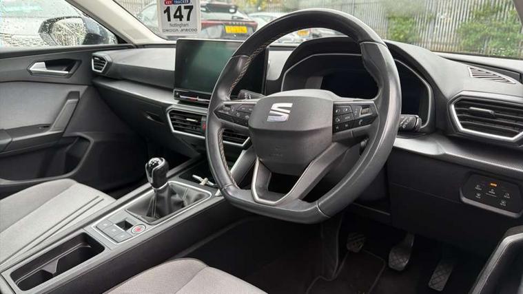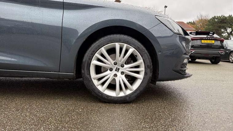 Cruise control with speed limiter, Digital cockpit, Front assist with forward collision warning braking reaction to vehicles, pedestrians and cyclists, Full link smartphone integration with Mirror Link, wireless Apple CarPlay and wired Google Android Auto, Lane keeping system, Lockable tailgate, Park assist (inc front/rear parking sensors), Power assisted speed sensitive electro-mechanical steering, RPM, trip computer, outside temp gauge, instrument light brightness, low fuel warning light, lights on reminder, gearshift indicator, Service interval indicator, Start/stop system with regenerative braking, Standard suspension, XDS electronic differential lock and dynamic traction support, Auxiliary input socket, Body colour door handles, Body coloured bumpers, Body coloured exterior mirrors with integrated LED indicators, Dark tinted rear windows, Electric front/rear windows, Electrically adjustable and heated door mirrors, LED front fog lamps with cornering function, LED headlights and LED tail lights, LED rear fog lamp, Manual dimming rear view mirror, Rear wash/wipe, Separate daytime running light with automatic headlight control, 12v power point in centre console, 60/40 split rear bench seat, Air conditioning, Cloth upholstery, Driver seat lumbar adjustment, Driver/passenger manual seat height adjustment, Dust/pollen filter, Folding boot cover, Front and rear height adjustable headrests, Front and rear reading lights X 4, Front seatback storage pockets, Height/reach adjust steering wheel, Interior lighting with LED lighting in sunvisor, glovebox and rear headlining, ISOFIX points in outer rear seats with top tether anchorage points, Leather flat bottomed, perforated steering wheel and leather gearstick, Luggage tie-down hooks, Sunvisors with covered illuminated mirror, Tool kit, Media system plus with navigation - Leon SE, 3 point seatbelts on all rear seats, ABS, Brake control system - ESC and brake booster, Child proof door locks, Driver and front passenger airbags with front passenger airbag de-activation, front side and curtain airbags, Electronic parking brake, Extended safety system - seat belt tensioner, window closure and hazard lights, Hill hold control, Rear disc brakes, Seat belt reminder for front and rear seats, Tiredness recognition system, driver alert system, Tyre pressure monitoring system, Anti theft alarm system with interior monitoring in cab, backup horn and towing protection, KESSY Go (Keyless start), Locking wheel bolts, Chrome interior detailing, 17" Dynamic tri-spoke alloy wheels with 91W tyres,