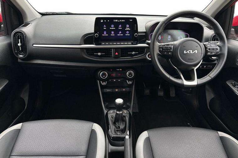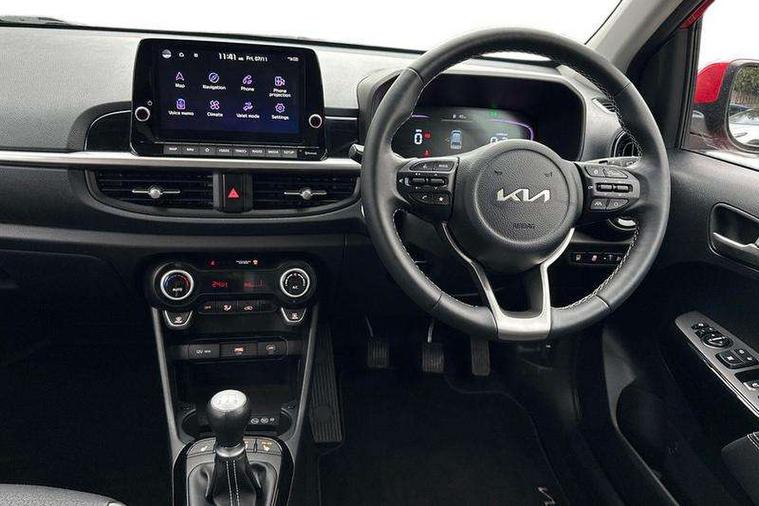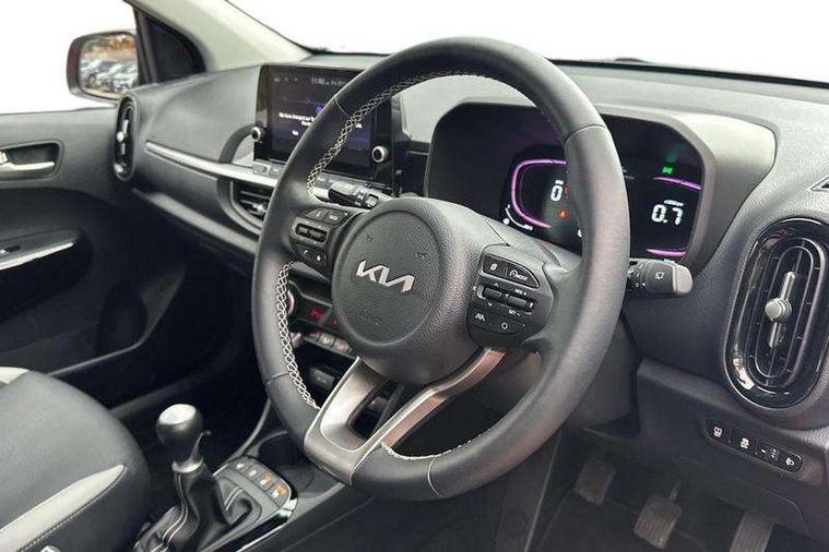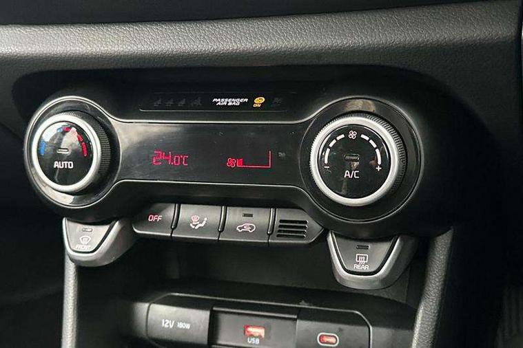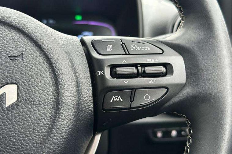 4.2" driver display screen, 8" touchscreen navigation, Apple car play/Android Auto with voice control, Cruise control + speed limiter, Emergency call service, Emergency stop signalling system, External temperature gauge, Forward Collision-Avoidance Assist (FCA) 1.0 - City/Pedestrian/Cyclist, Intelligent speed limit assist, Kia Connect (UVO), Lane Follow Assist 1.0, Lane keep assist, Motor driven power steering, Rear parking sensors, Reversing camera system, Tachometer, Trip computer, Wireless Smartphone charger, 4 speaker audio system, Bluetooth with music streaming, USB ports for connection of a media device, Automatic defog system, Automatic headlight control system, Body colour bumpers, Body colour side sill mouldings, Body coloured door mirrors, Body coloured wheel arches, Electric adjustable/heated/folding door mirrors with LED indicators lights, Electric front and rear windows, Electric front touch drivers front window, Headlamp levelling, Heated rear window, High mount brake light, LED daytime running lights, LED Headlights, LED rear lights, Privacy glass - Rear windows and tailgate, Rain sensor, Rear fog lights, Rear side wing doors, Rear wiper, Silver window surround, Speed variable front wipers, Tinted windshield glass, Visible VIN plate, 12V power point front, 3 seat bench in 2nd row, 60:40 Split folding rear seats, All round height adjustable headrests, Artificial leather steering wheel, Artificial leather upholstery, Automatic air conditioning, Centre console storage box, Driver and front passenger sunvisors with driver's side illuminated vanity mirrors, Front and rear door storage, Front cabin lights, Front passenger USB-C charging port, Glovebox, Grey headlining, Heated front seats, Heated steering wheel, ISOFIX Child seat top tethers and anchor fixings, Luggage area light, Luggage area parcel shelf, Luggage board, Luggage net + hook, Manual adjust steering wheel, Manual adjustable driver and front passenger seat, Rear cabin lights, Rear USB charging port, Single front passenger seat, All round 3-point seatbelts, Anti-lock braking system (ABS), Electronic stability control, Front + rear side airbags, Front airbags, Front passenger airbag cut-off switch, Front seatbelt height adjusters, Hill hold control, Hill start assist control (HAC), Rear airbags, Seatbelt warning, Side impact protection, Torque vectoring brake based and straight line stability (SLS), Traction control, Tyre pressure monitoring system, Vehicle stability management, Anti theft alarm, Engine immobiliser, Folding key, Locking wheel nuts, Manual child locks, Rear occupant alert, Remote central door locking, Smart key with engine start/stop button, Smart key with motion sensor, Thatcham category 2 security alarm and immobiliser, 16" alloy wheels, Tyre mobility kit,