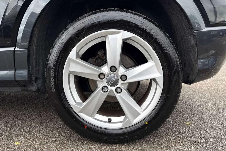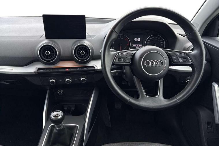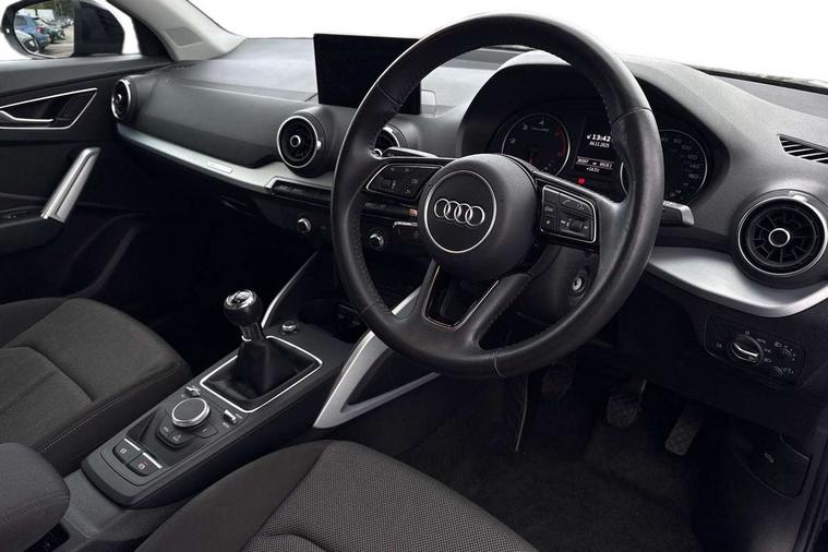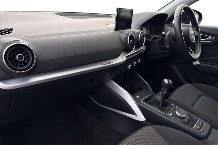 Audi drive select, Audi smartphone interface, Automatic start/stop system with recuperation, Bluetooth interface includes bluetooth audio streaming, Cruise control, MMI - Multi Media Interface control system, MMI SD card integrated nav with 3D map display, dynamic route guidance with TMC, MMI search, natural voice recognition and myAudi special destinations, Power operated tailgate, Progressive steering, Service interval indicator, Dynamic suspension, 2 x SDXC card reader, Audi music interface - apple iPod, apple iPhone, USB storage media, compatible MP3 players, 2 x USB charging points and 1 x Aux-in, CD Drive, DAB digital radio and AM/FM radio, MMI radio plus with 7" colour MMI screen and MMI controller, Air inlet in manhattan grey metallic, Black window trims, Body colour door mirrors, Chrome exhaust tailpipe, Electrically adjustable and heated door mirrors with integrated LED side indicators, Front and rear electric windows, Front underbody guard and rear diffuser trim in selenite silver, Front windscreen with grey tinted sunband, Halogen headlights including headlight range adjustment, High gloss black radiator grille, Interior mirror, LED indicator lights, Manual folding door mirrors, Rain and light sensors, Rear wiper, Side skirts in manhattan grey, Wheel arch trims in manhattan grey, 60/40 split folding rear seat bench, Door sill trims with aluminium inlay, Electronically operated child locks, Front centre armrest, Front headrests, Front sports seats, Front/rear floor mats, Height/reach adjust steering wheel, ISOFIX child seat mounting for front passenger with airbag deactivation and outer rear seat including top tether attachment point for outer rear seats, Manual seat adjustment including seat height adjustment for front seats, Storage compartments - Glovebox, cupholder compartment in centre console, storage compartment in rear centre console, front and rear door pockets, Three rear headrests, Titanium grey cloth headlining, Non smoking pack - Q2, 3x3 point rear seatbelts, 6 airbags - Front, curtain and front side airbags, Electromechanical parking brake, Electronic stabilisation control including ABS, ASR and EDL, Extended and proactive pedestrian protection, Hill hold assist, Multi collision brake assist, Pre-sense front with pedestrian recognition, Seatbelt monitoring, Tyre pressure warning light, Warning triangle and first aid kit, Anti theft alarm, Anti theft wheel bolts, Central locking system with remote control key, Aluminium interior element,