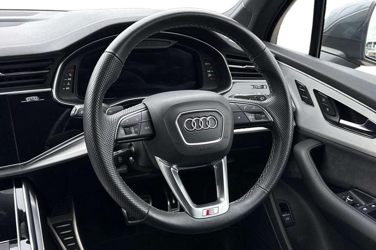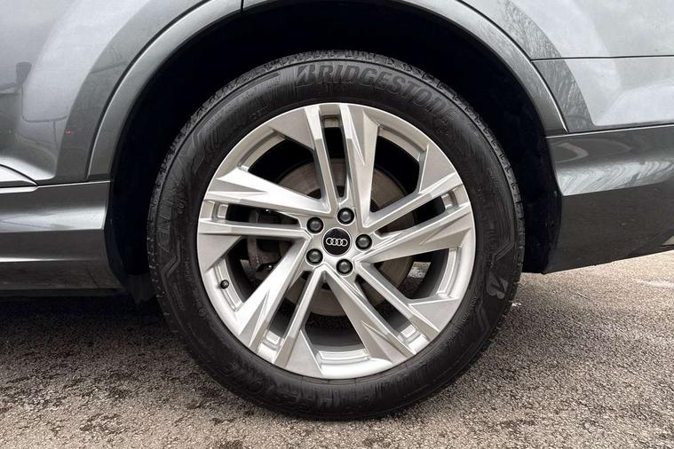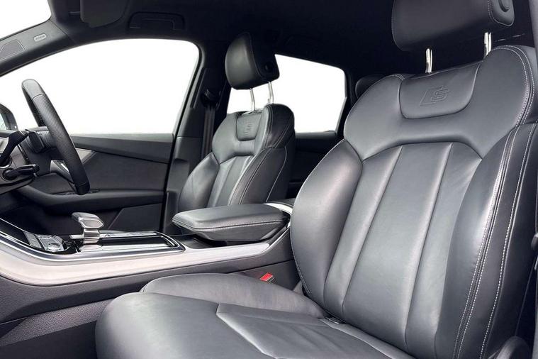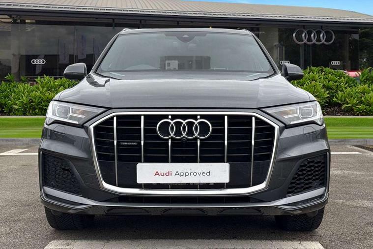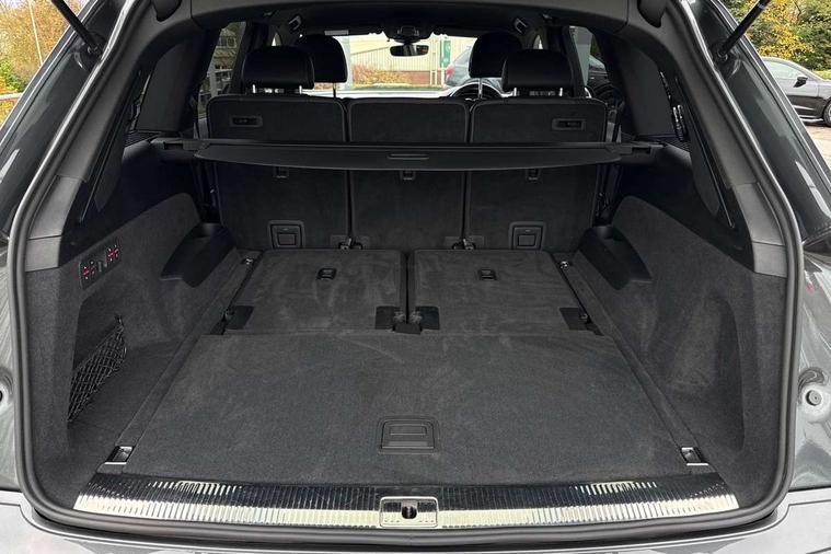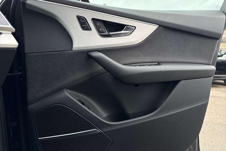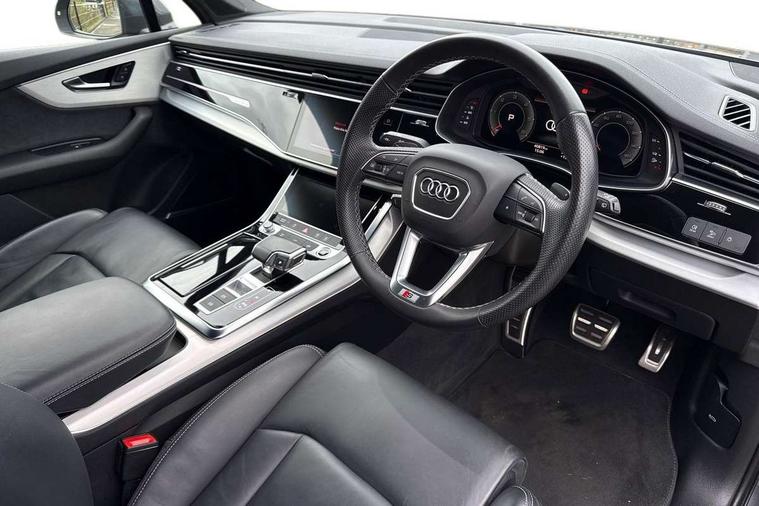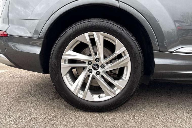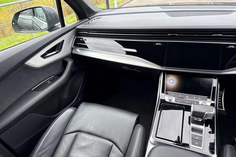 Audi connect safety and service (e-call), Audi connect with Amazon Alexa Integration, Audi drive select (Auto, Comfort, Dynamic, Efficiency, Individual, Off-road and All road), Bluetooth interface, Camera based traffic sign recognition, Electromechanical steering, MMI navigation plus with MMI touch screens includes 10.1" and 8.6" screens with haptic feedback, Natural voice recognition, Parking system plus with 360 degree display (front, rear and side sensors) - acoustic and visual park assist system, Power operated tailgate, Rear view camera, Smartphone interface includes wireless Apple carplay/Android Auto, Start/stop system, 48V Mild hybrid technology, Adaptive air suspension, Quattro all wheel drive with self locking centre differential, Audi music interface - front 2 USB-C ports with charger and data functions, Audi sound system with 6 channel amplifier, 180 watt amplifying capacity and 10 loudspeakers including subwoofer, DAB digital radio module, 3rd brake light, Aluminium roof rails, Aluminium window trim, Auto dimming frameless rear view mirror, Body coloured door mirrors, Dark tinted Matrix LED headlights with dynamic front and rear indicators, Electrically adj heated/folding + automatically dimming exterior mirrors with memory + automatic kerb side function for passenger side exterior mirror, Heat insulating glass in windshield, Integrated LED indications in door mirrors, LED daytime running lights, LED rear tail lights, Privacy glass - dark tinted rear and rear side windows from B-pillar backwards, Rear side wing doors, Rear wiper, S Line badge on wings, S line bumpers in full body colour paint finish, S line roof spoiler, S line styling side ventilation grilles and side skirts, 2 seat bench in 3rd row, 2 zone automatic climate control, 3 seat bench in 2nd row, 7 seat layout with ISOFIX points for the front passenger seat and rear passenger seat, Black cloth headlining, Comfort front centre armrest, Electric adjustable front seat with 4 way lumbar support, driver memory functionality, Folding rear seats, Front head restraints, Front/rear floor mats, Heated front seats, Illuminated door sill trims with S logo, LED interior ambient lighting, Luggage compartment cover, Luggage compartment sill protection in stainless steel, Rear head restraints, Single front passenger seat, Stainless steel pedals, Sunvisors with illuminated vanity mirrors, 3 point seatbelts on all rear seats, Audi pre sense front, Child locks on rear doors, Driver and front passenger, front side and curtain airbags, Electromechanical parking brake, Electronic Stabilisation Control (ESC) including ABS, ASR and EDL, Extended pedestrian protection measures, Hill hold assist, Seatbelt monitoring, Tyre pressure loss indicator, Warning triangle and first aid kit, Anti theft alarm, Anti-theft wheel bolts and wheel loosening detection, Keyless Go, Remote central locking, Darkened matt brushed aluminium inlays, Tool kit, Tyre repair kit,
