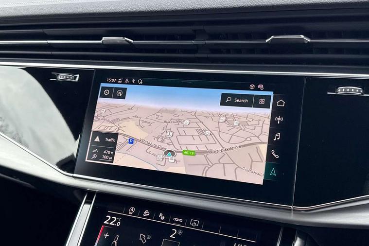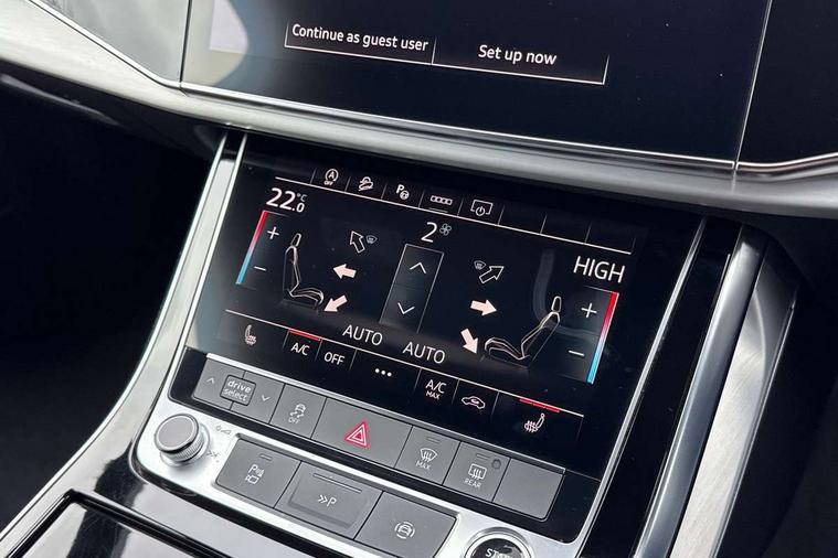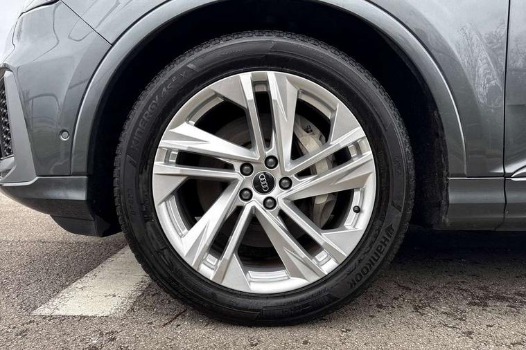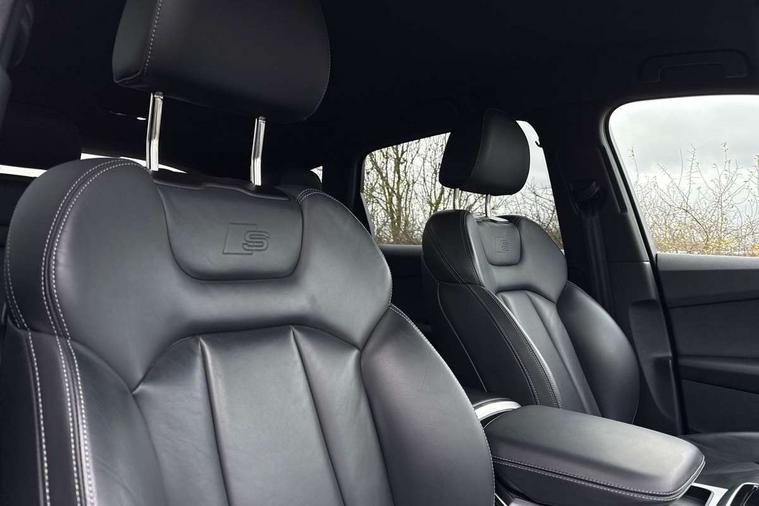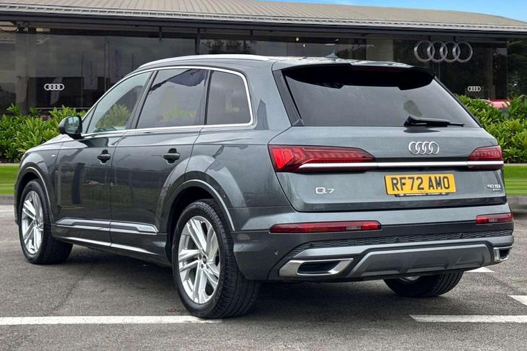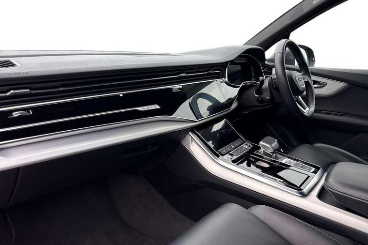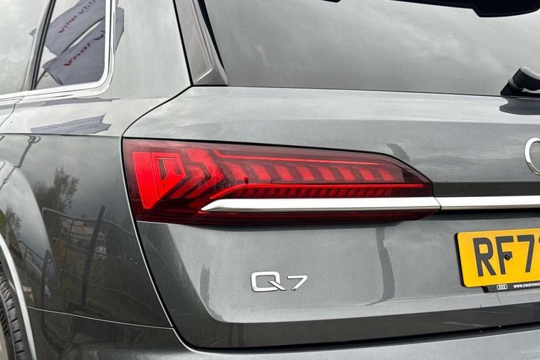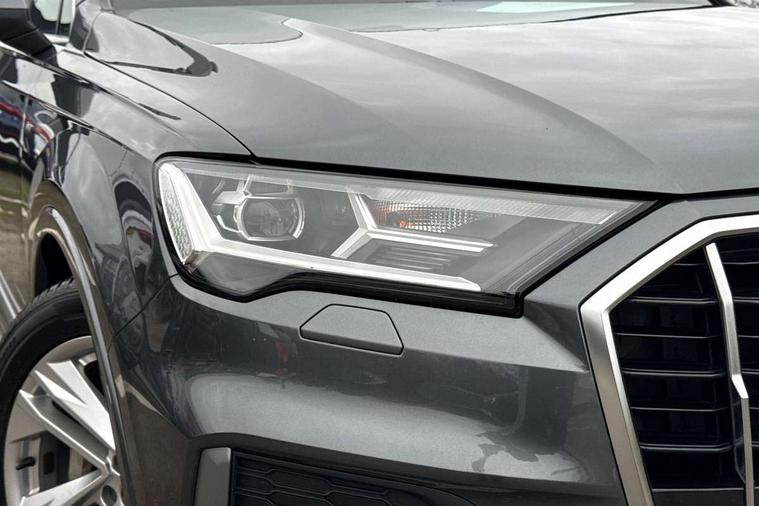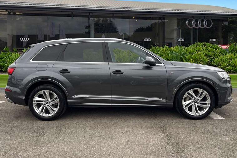 Audi connect safety and service (e-call), Audi connect with Amazon Alexa Integration, Audi drive select (Auto, Comfort, Dynamic, Efficiency, Individual, Off-road and All road), Bluetooth interface, Camera based traffic sign recognition, Electromechanical steering, MMI navigation plus with MMI touch screens includes 10.1" and 8.6" screens with haptic feedback, Natural voice recognition, Parking system plus with 360 degree display (front, rear and side sensors) - acoustic and visual park assist system, Power operated tailgate, Rear view camera, Smartphone interface includes wireless Apple carplay/Android Auto, Start/stop system, 48V Mild hybrid technology, Adaptive air suspension, Quattro all wheel drive with self locking centre differential, Audi music interface - front 2 USB-C ports with charger and data functions, Audi sound system with 6 channel amplifier, 180 watt amplifying capacity and 10 loudspeakers including subwoofer, DAB digital radio module, 3rd brake light, Aluminium roof rails, Aluminium window trim, Auto dimming frameless rear view mirror, Body coloured door mirrors, Dark tinted Matrix LED headlights with dynamic front and rear indicators, Electrically adj heated/folding + automatically dimming exterior mirrors with memory + automatic kerb side function for passenger side exterior mirror, Heat insulating glass in windshield, Integrated LED indications in door mirrors, LED daytime running lights, LED rear tail lights, Privacy glass - dark tinted rear and rear side windows from B-pillar backwards, Rear side wing doors, Rear wiper, S Line badge on wings, S line bumpers in full body colour paint finish, S line roof spoiler, S line styling side ventilation grilles and side skirts, 2 seat bench in 3rd row, 2 zone automatic climate control, 3 seat bench in 2nd row, 7 seat layout with ISOFIX points for the front passenger seat and rear passenger seat, Black cloth headlining, Comfort front centre armrest, Electric adjustable front seat with 4 way lumbar support, driver memory functionality, Folding rear seats, Front head restraints, Front/rear floor mats, Heated front seats, Illuminated door sill trims with S logo, LED interior ambient lighting, Luggage compartment cover, Luggage compartment sill protection in stainless steel, Rear head restraints, Single front passenger seat, Stainless steel pedals, Sunvisors with illuminated vanity mirrors, 3 point seatbelts on all rear seats, Audi pre sense front, Child locks on rear doors, Driver and front passenger, front side and curtain airbags, Electromechanical parking brake, Electronic Stabilisation Control (ESC) including ABS, ASR and EDL, Extended pedestrian protection measures, Hill hold assist, Seatbelt monitoring, Tyre pressure loss indicator, Warning triangle and first aid kit, Anti theft alarm, Anti-theft wheel bolts and wheel loosening detection, Keyless Go, Remote central locking, Darkened matt brushed aluminium inlays, Tool kit, Tyre repair kit,