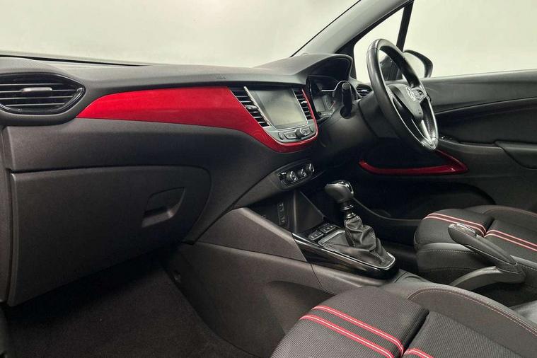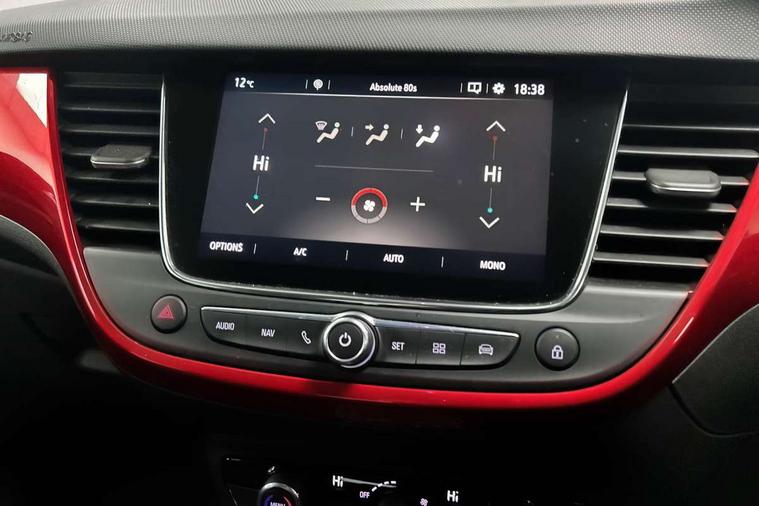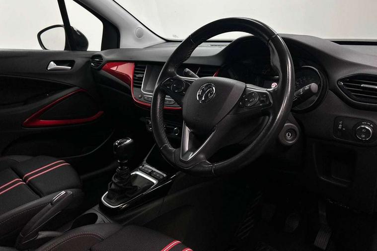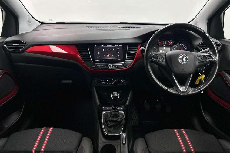 3.5" monochrome instrument colour display, Audible lights on warning, Bluetooth connectivity, Cruise control + speed limiter, Digital clock with automatic RDS time adjustment, Instrumentation - Speedometer, rev counter, low fuel gauge warning light + water temperature gauge warning light, shift up/down indicate light, Lane departure warning system, Multi function trip computer, Multimedia sat nav pro with 8" colour touchscreen, AM/FM, Bluetooth streaming, Bluetooth mobile phone portal, apple CarPlay/Android Auto + 6 speakers, Outside temperature display with ice warning, Rear parking distance sensors, Refridgerant low indicator, Service interval indicator, Speed sensitive power steering, Speed sign recognition, Front wheel drive, 2 x USB connections, DAB Digital radio, Steering wheel mounted audio/phone/cruise controls, 2 speed wipers/wash wipe/intermittent wipe, Alloy effect front and rear skid plates, Automatic anti dazzle rear view mirror, Automatic headlamp levelling system, Automatic high beam control with cornering light, Automatic lighting control, Black radiator grille with chrome bar, Body colour door handles, Body colour front and rear bumpers, Dark tinted rear side windows + tailgate window, Electrically adjustable and heated door mirrors, Front power windows with express up/down and anti-pinch function, Hazard warning lights, Headlamps for left side traffic, Heated rear window, Integrated tailgate spoiler, Intermittent rear wash/wipe, LED daytime running lights, LED front fog lights, LED Headlights, LED side repeat indicators, Rain sensitive windscreen wipers, Rear fog lights, Rear power windows with express up/down and anti-pinch function, Reversing light, Side window demist vents, Silver roof rails, Solar heat absorbing windscreen and windows, Welcome lighting, Windscreen demist vents, Without LED rear lights, 12v power outlet - front, 12V power outlets on rear seat, 2 way front passive headrests, 3 spoke flat bottomed leather covered steering wheel with bezel decoration, 4 way electrically adjustable lumbar support for drivers seat, 4 way electrically adjustable lumbar support for front passenger seat, Adjustable rear seat backrest, Air recirculation facility, Ambient lighting, Anti submarining ramps in front seats, Banda cloth/vinyl upholstery, Cabin particulate filter - removes dust, airborne particles and pollen, Driver and front passenger illuminated vanity mirrors with flip up covers, Dual zone electronic climate control, Ergonomic active front seats with 8 way manual adjustable driver and front passenger seats with height, reach, and backrest, Fade up/fade down on interior lighting, Four adjustable facia vents, Front door pockets with bottle holders, Front map reading lights, Fully carpeted luggage area, Glovebox with lid, Height adjustable front/rear head restraints, Illuminated load area, Interior courtesy light operated by all doors, Isofix system on outer rear seats, Jet black premium leather side bolsters, Luggage compartment cover, Multi-speed fan with Illuminated control, Open storage compartment in centre console, Passenger assist handles, Reach + rake adjustable steering column, Rear door pockets with bottle holders, Rear floor ventilation ducts, Rear reading lights, Satin chrome effect bezel on steering wheel, Seat cushion extension, Sliding 60/40 rear seat with centre rear seat armrest, Storage pockets on front seat backs, Two drinks holders in centre console, Uplevel centre console front centre armrest with storage, Versatility pack - Crossland, 3x3 point rear seatbelts, 6 airbags - Driver and co-driver front, front side, head curtain roof airbags, front and rear row coverage airbags, ABS, Child locks on rear doors, CSC - Cornering stability control, Deactivate switch for side impact airbags, Deformation zones front and rear, Dual seatbelt pretensioners on front seats, EBD - Electronic brakeforce distribution, Energy absorbing steering column, Engine drag torque control, ESP + traction control, Front and rear seatbelt unfastened audible warning and warning light, Front side impact airbag, HBA (Hydraulic Brake Assist), Hill start assist, Hydraulic brake boost, Inertia reel lap and diagonal seatbelts for all seats, Passenger airbag deactivate switch, Rear seat belt pretensioners, Reinforced passenger safety cell, Seatbelt load limiter, Side impact protection beams, Smart seatbelt reminder for front and rear seats, Tyre pressure monitoring system, 2 remote folding keys, Electronically protected audio equipment, Engine immobiliser, Locking wheel nuts, Remote central deadlocking, Remote control central locking activation switch on driver door, Remote control central locking operates on doors, tailgate and fuel filler flap, Remote security alarm system, Visible vehicle identification number, Black facia with red trim insert, Cluster black with printed rings, Red trim inserts on front doors,