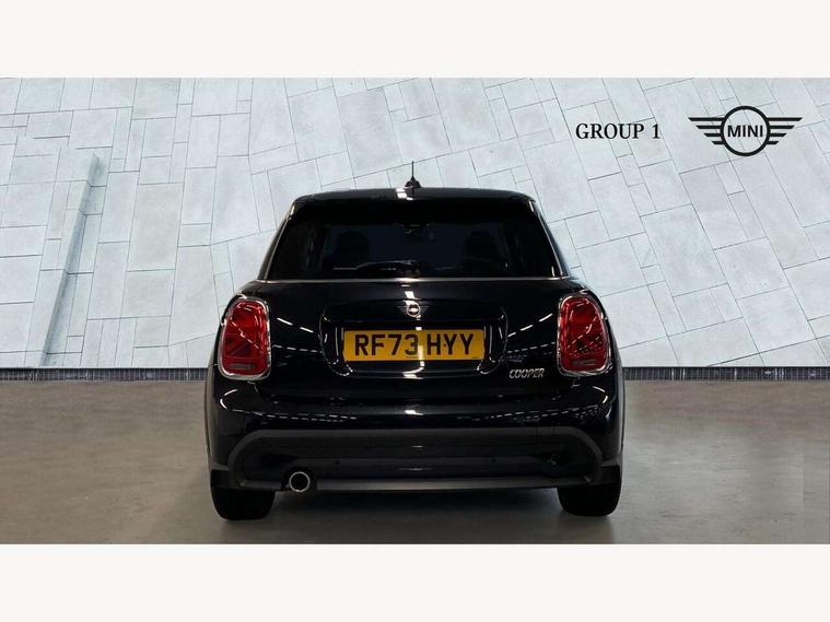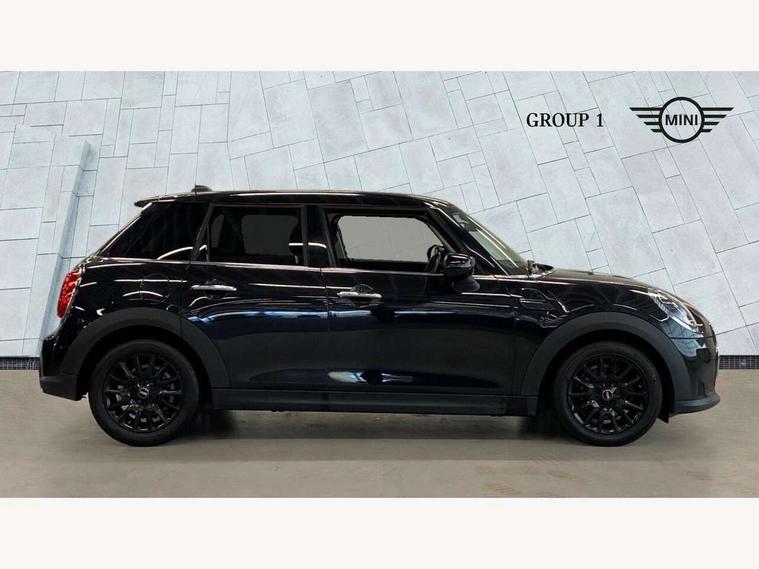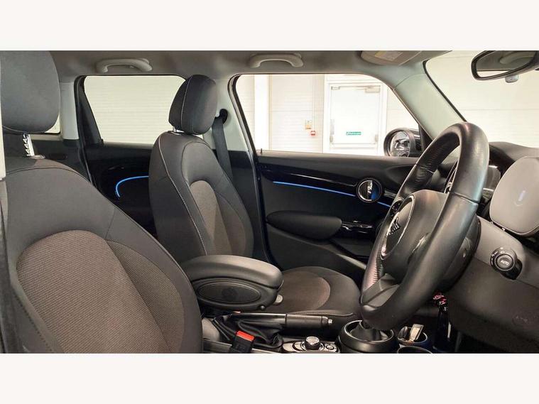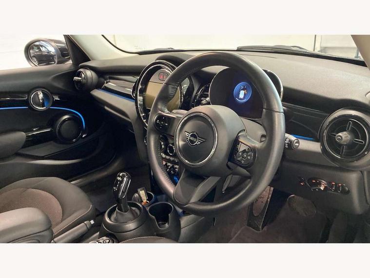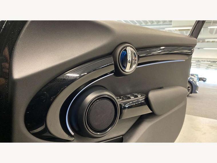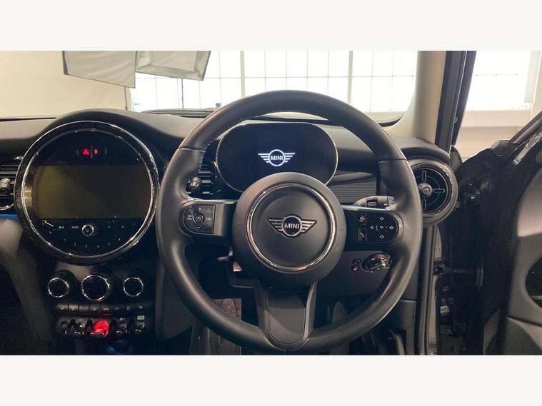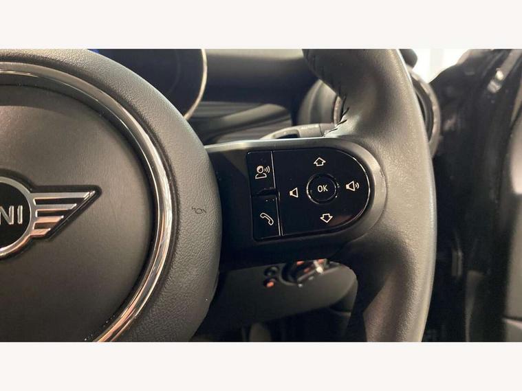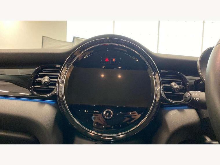 Apple CarPlay, Automatic start/stop function with brake energy recuperation, Compatible mobile phone bluetooth with audio streaming, Electro-mechanical speed dependant steering assistance, Flexible car sharing preparation, Mini E-call, MINI TeleServices, On board computer, Service interval indicator, Double Vanos system, Fully variable valve control, Gear change indicator display, High precision injection, Performance Control, Steptronic transmission with double clutch, 8.8" touchscreen with LED ring, FM tuner and DAB digital radio, 3rd brake light, Automatic headlight activation switch, Body colour fuel filler cap, Chrome border high gloss black slats radiator grille, Dynamic brake lights, Electric front+rear windows, Exhaust tailpipe on left with chrome finisher, Heated rear window, Heated windscreen washer jets, Metal door sill strips with MINI imprint, Model logo Cooper on right of tailgate, Rain sensor window wipers, Rear fog lights, Rear LED lights with union jack design, Rear side wing doors, Rear window wiper, Side scuttle panel with integrated indicator, Sun/heat protection glass, White indicator lenses, 12V Accessory socket in centre console, 3 seat bench in 2nd row, 4 lashing eyes in luggage compartment, 60/40 split folding rear seat, Ambient lighting, Carbon black colour line - Knee roll and door armrest, Chrome interior highlights, Cupholders, Front and rear head restraints, Front and rear isofix with front passenger airbag deactivation, Front and rear velour floor mats, Glove compartment, Height and length steering column adjustment, Interior lighting with 12 different colours across the dashboard, underneath door bezel with illuminated laser-engraved design on central display, Leatherette gearshift lever and handbrake gaiters, LED reading lights, vanity mirror lights, front foot well light and spotlight on front seats, Mechanical seat adjustment - forward/back & backrest for front seats and driver seat height adjust, Multifunction steering wheel, Satellite grey headlining including grab handles and clothes hooks, Single front passenger seat, Sport leather steering wheel with speed limiter and audio/communication controls, Storage compartments in doors, Sunvisors with vanity mirrors, 3 point seatbelts on all five seats, 6 Airbags - front, side, head and seat belt tensioners, Anti-lock braking system (ABS), Child locks on rear doors, DSC - Dynamic Stability Control, Front and rear disc brakes, Hill start assist, Single tone fanfare horn, Tyre pressure monitoring system, Alarm system with tilt sensor, monitoring doors, bonnet interior and tailgate, Electronic vehicle immobiliser, Start/stop toggle with keyless go, Piano black interior trim, Tool kit, Tyre repair kit,