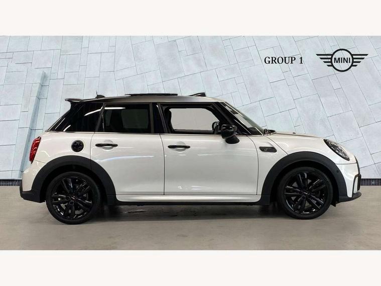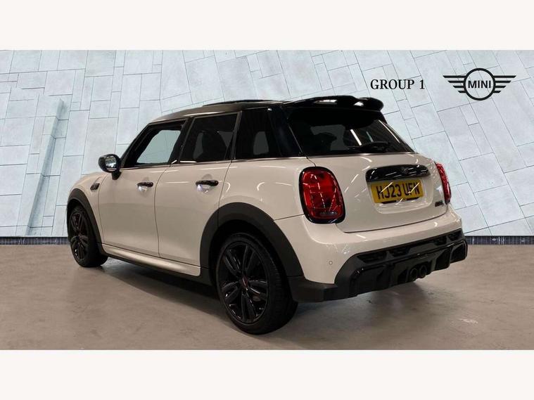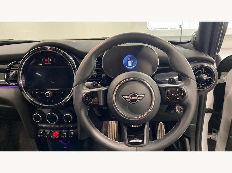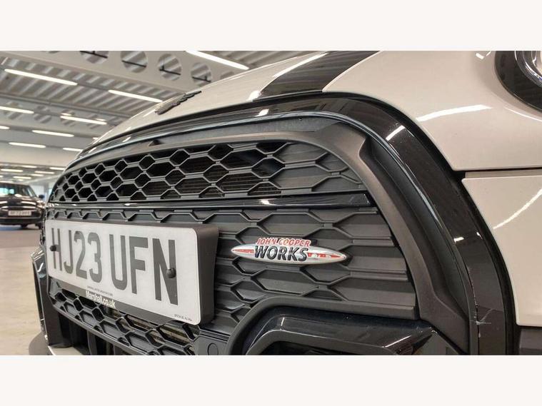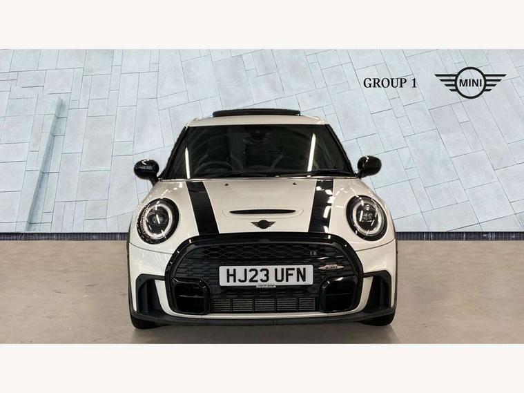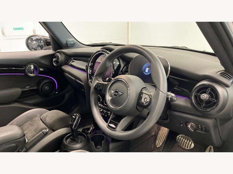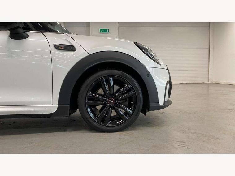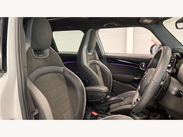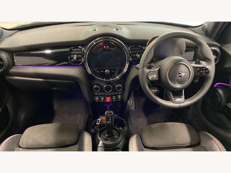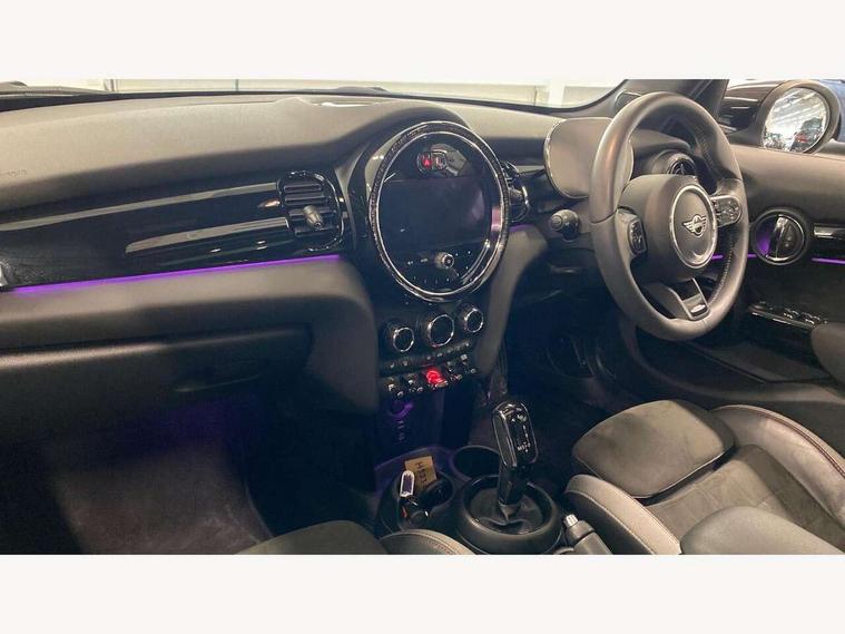 Apple CarPlay, Automatic start/stop function with brake energy recuperation, Compatible mobile phone bluetooth with audio streaming, Electro-mechanical speed dependant steering assistance, Flexible car sharing preparation, MINI Driving Modes - centre toggle switch to control driving setting (sport, mid and green), Mini E-call, MINI TeleServices, On board computer, Rear park distance control, Service interval indicator, Adaptive suspension, Double Vanos system, Fully variable valve control, Gear change indicator display, High precision injection, Performance Control, Steptronic sport transmission with double clutch and steering wheel paddles, 8.8" touchscreen with LED ring, FM tuner and DAB digital radio, 3rd brake light, Automatic headlight activation switch, Bonnet scoop, Dynamic brake lights, Electric front+rear windows, Heated rear window, Heated windscreen washer jets, JCW Aerodynamic kit - Front and rear bumpers with sporty JCW styling and part-painted side sills with MINI John Cooper Works door sill finishers, John Cooper Works rear spoiler, Metal door sill strips with Cooper S imprint, Model logo Cooper S on right of tailgate, Radiator grille chrome border with honeycomb structure including S Badge, Rain sensor window wipers, Rear fog lights, Rear LED lights with union jack design, Rear side wing doors, Rear window wiper, Side scuttle panel with integrated indicator, Sun/heat protection glass, Two central exhaust tailpipes with chrome finisher, White indicator lenses, 12V Accessory socket in centre console, 3 seat bench in 2nd row, 4 lashing eyes in luggage compartment, 60/40 split folding rear seat, Anthracite headliner including grab handles and clothes hooks, Carbon black colour line - Knee roll and door armrest, Chrome interior highlights, Cupholders, Front and rear isofix with front passenger airbag deactivation, Front and rear velour floor mats, Glove compartment, Height and length steering column adjustment, Interior lighting with 12 different colours across the dashboard, underneath door bezel with illuminated laser-engraved design on central display, JCW Sport seats with integrated headrests, adjustable thigh support and John Cooper Works logo, Leatherette gearshift lever and handbrake gaiters, LED reading lights, vanity mirror lights, front foot well light and spotlight on front seats, Mechanical seat adjustment - forward/back & backrest for front seats and driver seat height adjust, Multifunction steering wheel, Single front passenger seat, Sport leather steering wheel with speed limiter and audio/communication controls, Storage compartments in doors, Storage pocket on back of front seats, Sunvisors with vanity mirrors, Walknappa leather steering wheel with grey seam and John Cooper Works badge on Piano Black lower steering wheel spoke, Piano black exterior pack - Mini Hatchback Cooper S, 3 point seatbelts on all five seats, 6 Airbags - front, side, head and seat belt tensioners, Anti-lock braking system (ABS), Child locks on rear doors, DSC - Dynamic Stability Control, Front and rear disc brakes, Hill start assist, Two tone horn, Tyre pressure monitoring system, Alarm system with tilt sensor, monitoring doors, bonnet interior and tailgate, Electronic vehicle immobiliser, Start/stop toggle with keyless go, Piano black interior trim, Tool kit,