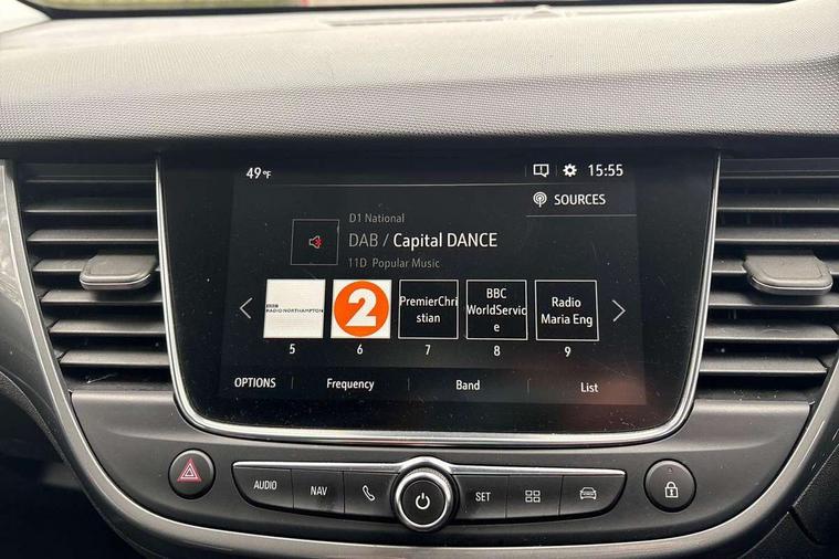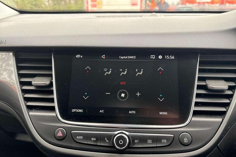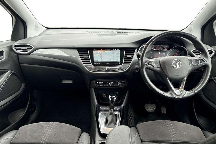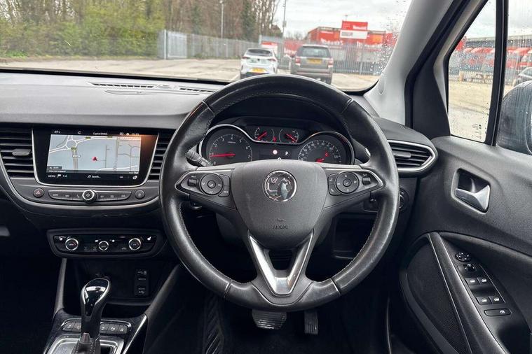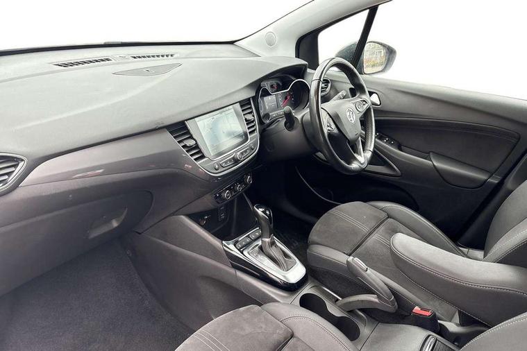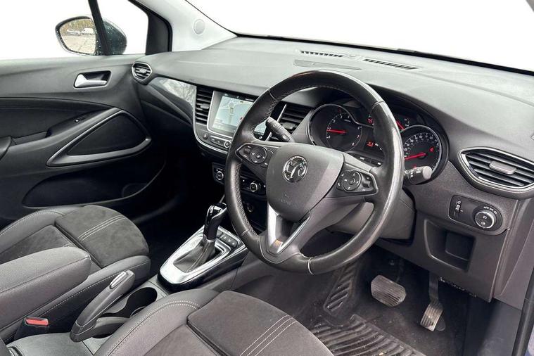 3.5" colour instrument display, Advanced Park Assist, Audible lights on warning, Cruise control + speed limiter, Digital clock with automatic RDS time adjustment, Driver drowsiness alert system, E-call, Forward collision warning, Front camera system, Instrumentation - Speedometer, rev counter, low fuel gauge warning light + water temperature gauge warning light, shift up/down indicate light, Lane departure warning with lane keep assist, Multi function trip computer, Multimedia sat nav pro with 8" colour touchscreen, AM/FM, Bluetooth streaming, Bluetooth mobile phone portal, apple CarPlay/Android Auto + 6 speakers, Outside temperature display with ice warning, Panoramic rear view camera, Refridgerant low indicator, Service interval indicator, Side blind spot alert, Smartphone projection, Speed sensitive power steering, Speed sign recognition, Start/stop system, Vauxhall connect, Vehicle microphone, Front wheel drive, 2 x USB connections, DAB Digital radio, Steering wheel mounted audio/phone/cruise controls, 2 speed wipers/wash wipe/intermittent wipe, Automatic anti dazzle rear view mirror, Automatic headlamp levelling system, Automatic high beam control with cornering light, Automatic lighting control, Black door mirror caps, Black griffin logo, vizor frame, rear lettering and skid plates, Body colour door handles, Body colour front and rear bumpers, Chrome effect upper window moulding, Collapsible windscreen wipers, Dark tinted rear side windows + tailgate window, Electrically adjustable, heated and power folding door mirrors, Electrically operated front and rear windows with safety auto reverse and one touch up/down facility, Flexible roof mounted aerial, Hazard warning lights, Headlamps for left side traffic, Heated rear window, Integrated tailgate spoiler, Intermittent rear wash/wipe, LED 3rd brake light, LED daytime running lights, LED front fog lights, LED Headlights, LED side repeat indicators, LED tail lights, Rain sensitive windscreen wipers, Rear fog lights, Rear side wing doors, Reversing light, Side window demist vents, Silver roof rails, Solar heat absorbing windscreen and windows, Upper and lower bumper design, Welcome lighting, Windscreen demist vents, 12v power outlet - front, 12V power outlets on rear seat, 3 seat bench in 2nd row, 3 spoke leather covered steering wheel, Air recirculation facility, Alcantara suede/vinyl upholstery, Ambient lighting, Anti submarining ramps in front seats, Cabin particulate filter - removes dust, airborne particles and pollen, Centre console storage box with sliding lid, Centre console with two cup holders and open storage box, Chrome effect digital instrument cluster surround, Driver's vanity mirror with flip up cover, Dual zone electronic climate control, Ergonomic active driver’s and front passenger’s seat with AGR approved 8 way adjustable, seat cushion extension, 4 way electrical lumbar adjustment, Fade up/fade down on interior lighting, Four adjustable facia vents, Front and rear central courtesy light, Front centre armrest for drivers seat, Front door pockets with 1.5 litre bottle holder, Front map reading lights, Fully carpeted luggage area, Glovebox with lid, Height adjustable front/rear head restraints, Illuminated load area, Isofix system on outer rear seats, Jet black fabric side bolsters, Luggage compartment cover, Multi-speed fan with Illuminated control, Passenger assist handles, Passenger's illuminated vanity mirror with flip up cover, Reach + rake adjustable steering column, Rear dome lamp, Rear door pockets with 0.5 litre bottle holder, Rear floor ventilation ducts, Satin chrome effect bezel on steering wheel, Single front passenger seat, Storage pockets on front seat backs, Versatility pack - Crossland, Winter pack - Crossland, 3x3 point rear seatbelts, ABS, Automatic emergency braking with pedestrian detection, Child locks on rear doors, CSC - Cornering stability control, Deactivate switch for side impact airbags, Deformation zones front and rear, Driver and front passenger airbags, Dual seatbelt pretensioners on front seats, EBD - Electronic brakeforce distribution, Energy absorbing steering column, Engine drag torque control, ESP + traction control, Front side impact airbag, Full size curtain airbags, Hill start assist, Hydraulic Brake Assist (HBA), Hydraulic brake boost, Inertia reel lap and diagonal seatbelts for all seats, Passenger airbag deactivate switch, Rear seat belt pretensioners, Reinforced passenger safety cell, Seatbelt load limiter, Side impact protection beams, Smart seatbelt reminder for front and rear seats, Tyre pressure monitoring system, 2 remote folding keys, Electronically protected audio equipment, Engine immobiliser, Keyless entry and start, Locking wheel bolts, Remote control central locking, Remote control security alarm system, Visible vehicle identification number, Black facia with dark grey trim inserts, Cluster black with chrome rings, Silver trim inserts on front doors, 17" Five twin spoke diamond cut bi colour alloy wheels,