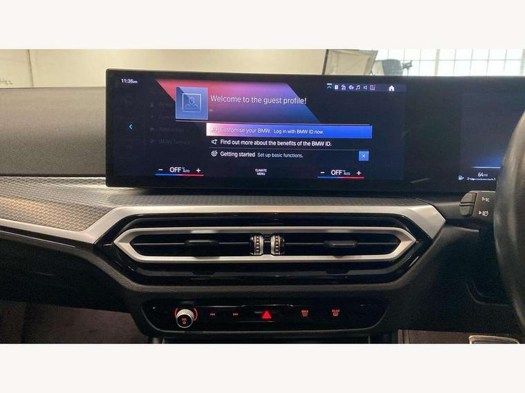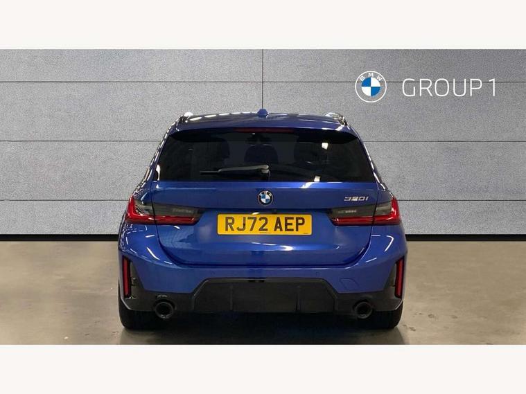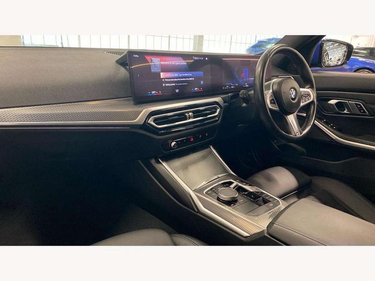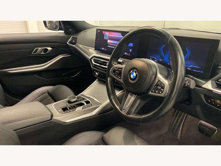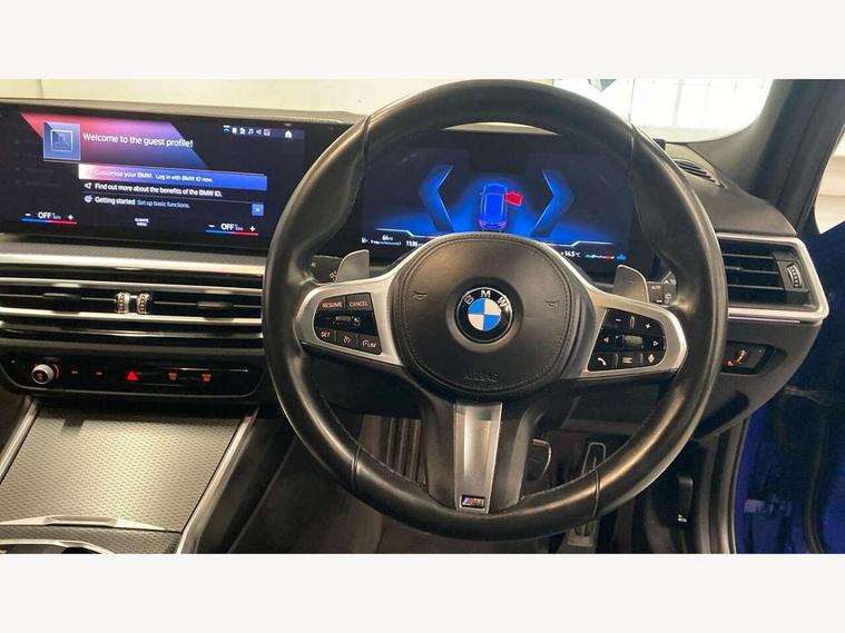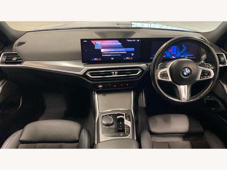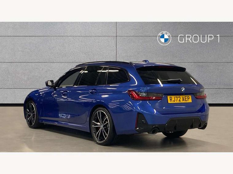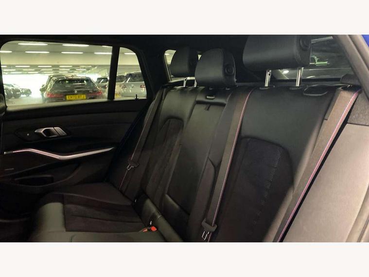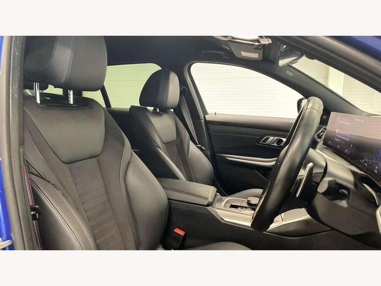 Active guard plus, Attentiveness assist, Automatic Start/stop button, BMW iDrive, BMW Teleservices, Condition based service, ConnectedDrive Services, Driving experience switch, Live cockpit plus with Navigation + 12.3" instrument display + 14.9" display, Intelligent voice assist, 2 USB, 4G LTE connect, Oil sensor for level and grade, Preparation for driver assistance, Shifting point display, Smartphone integration, Variable sport steering, Double joint spring strut front axle, Fuel tank breather system, M sport suspension, Sport automatic transmission with steering-wheel mounted gearshift paddles and launch control, DAB tuner, 3rd brake light, Acoustic glazing, Automatic headlight beam throw control with load dependent regulating reaction, dynamic compensation of braking dive and acceleration squat, BMW emblem, engine compartment lid and tailgate, Body colour roof fin, Door sill strips, Electric windows - front and rear, with open/close fingertip control, anti-trap facility and comfort closing, Follow me home headlight function, Front and rear bumper system with replaceable deformation elements, Front apron plastic in body colour, Fuel filler flap - right rear in body colour, Heated washer jets, Illuminated bow type door handles in body colour drivers side with door lock, Interior rear view electrochromatic mirror with automatic anti dazzle function, LED headlights with LED daytime running lights and LED turn indicator, LED rear lights, Licence plate panel integrated into front bumper and tailgate, Matt black B-pillar finsher, Matt black window recess cover, Model designation on right side of tailgate, One piece front bumper cover including towing eye cover in body colour, Rain sensor with automatic headlight activation, Rear side wing doors, Rear wiper, Reversing lights, Side frame decorative moulding black matt, Visible exhaust tailpipe finisher, Welcome lights in interior and door handle area, 12V power socket in front storage compartment, 2 front cupholder in centre console with clamping elements and matt black inlay, 3 seat bench in 2nd row, 3 zone automatic air conditioning, 40:20:40 split folding rear seat with loading system, Anthracite headlining, Armrest integrated in front and rear door trim + front centre console armrest, BMW ID, Cruise control operation in steering wheel, Driver backrest width adjustment, Folding rear centre armrest with 2 cupholders, Front and rear door exit lighting (left / right), Front and rear footwell lighting, Front and rear headrests, Front and rear reading lights, Front and rear velour floor mats, Front sport seats, Heated front seats, Height adjustable mechanically and infinitely variable steering column, Illuminated armrest storage compartment, Illuminated glove compartment, Illuminated luggage compartment, Lashing eyelets in luggage compartment, LED ambient lighting with welcome carpet light, M Sport multifunction leather steering wheel, Make-up mirror lights, Single front passenger seat, Standard seat for driver and passenger with manual adjustment, Sunvisors with vanity mirrors and ticket pocket, Toolkit located in luggage compartment, Connected pack professional - 3 Series Saloon/Touring, Interior and exterior mirror pack - 3 Series Touring/Saloon, M Aerodynamics package - 3 Series Saloon/Touring, M sport exterior styling pack - 3 Series Saloon/Touring, Storage compartment pack - 3 Series Saloon/Touring, 3x3 point rear seatbelts, BMW emergency call, Child locks on rear doors, Crash sensor activating of airbags, Unlocking doors, hazard warning lights, interior light, safety battery terminal, Driver and front passenger with seat occupancy detection for driver's and passenger side, Driver and passenger side airbags, body protection at side and airbags deploy from seat backrests, Dynamic brake control, Dynamic stability control + (DSC+) - Anti-lock Braking System (ABS) with brake assist and cornering brake control + Automatic Stability Control (ASC), Dynamic Traction Control - DTC, Electric parking brake including automatic hold function and automatic release of the parking brake when driving off, Electronic differential lock control (EDLC), Head airbags in 1st and 2nd row, head protection at side, curtain airbags open from headliner above 1st and 2nd row, Plastic fuel tank, Side impact protection, Tyre pressure monitoring with three level warning strategy, Ventilated front and rear disc brakes, Warning triangle and first aid kit, Alarm system, Centre lock switch, Closing system with central locking, Electronic vehicle immobiliser,
