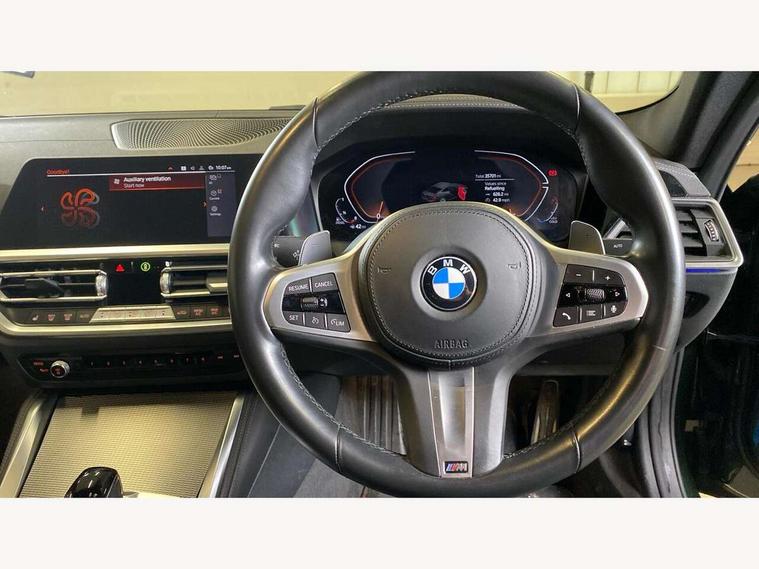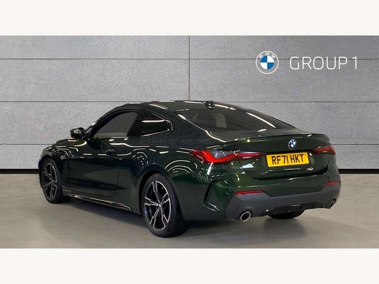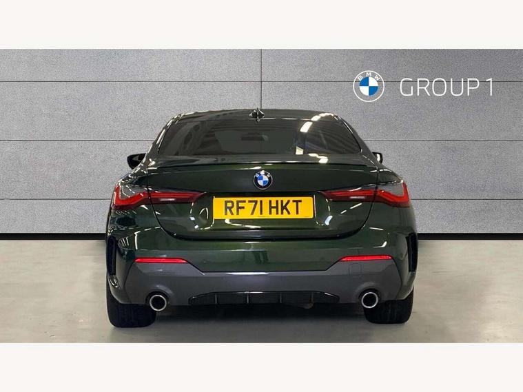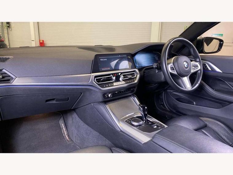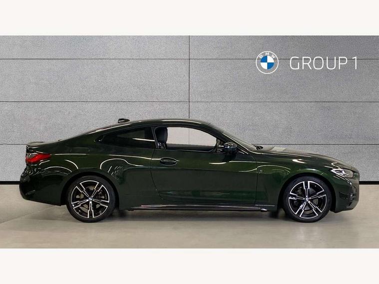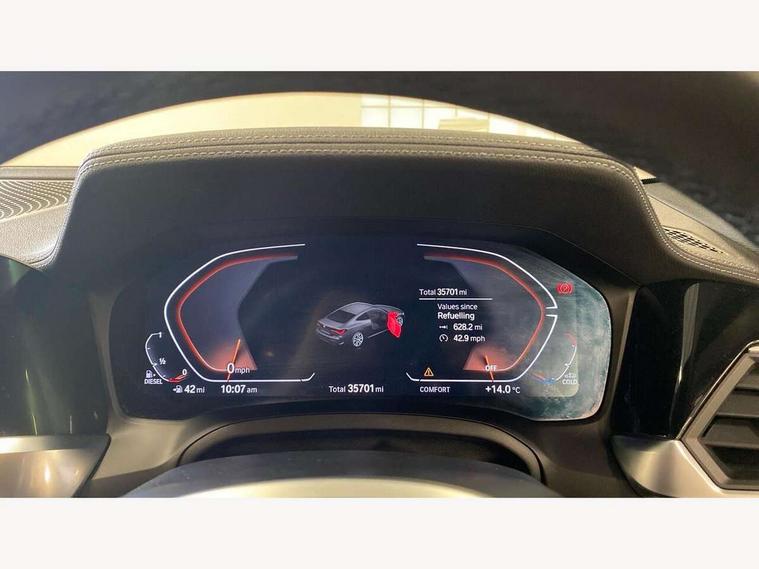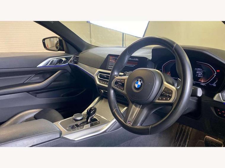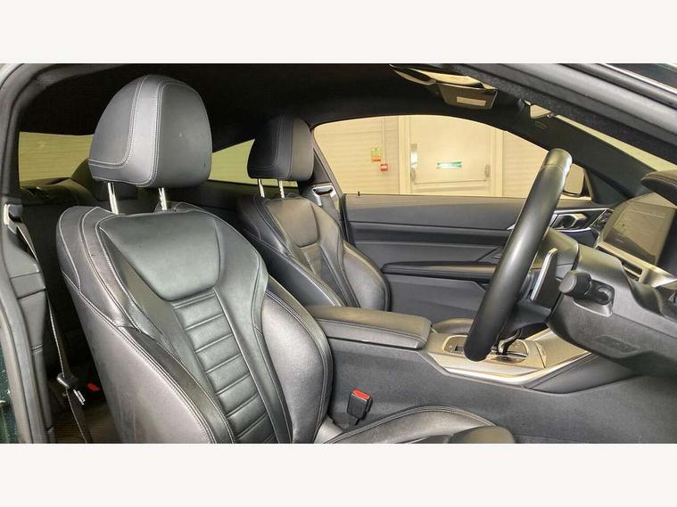 Active guard plus, Attentiveness assist, Auto start-stop, BMW ConnectedDrive online services, BMW iDrive controller on centre console, BMW Live Cockpit Professional Nav with 12.3" instrument display + 10.25" display, Intelligent Voice Assist, BMW OS 7, HDD, 2USB, 4G LTE connect, BMW service history, BMW Teleservices, Brake pad wear indicator in front and rear, Check Control warning system for monitoring of lights and door/luggage compartment open warning, Condition based service, Cruise control with brake assist, Electric power steering with Servotronic steering optimised at all speed ranges, Gearshift time display in manual mode, Instrument cluster with speedometer with mph readout, tachometer, fuel gauge and oil temperature gauge, Integrated owners handbook, Oil sensor for level and grade, warning by check control system, On board computer - average speed, fuel consumption, outside temp display with acoustic warning, clock/date, service interval, odometer/trip meter, Optimum shift indicator, Touch control functionality for BMW Live Cockpit Professional Nav, Variable sport steering, 48V Mild hybrid technology, 8 speed automatic steptronic transmission with gearshift paddles, Balanced 50/50 weight distribution, Diesel particulate filter, Drive performance control - ECO PRO, comfort and sport modes, Incorrect fuelling protection, Low centre of gravity, M sport suspension, Stroke dependent dampers, DAB tuner, Electronic service booklet, 3rd brake light, Acoustic glazing, Automatic headlight beam throw control with load dependent regulating reaction, dynamic compensation of braking dive and acceleration squat, Automatic windscreen wipers and automatic headlight, Automatically dimming electrochromatic rear view mirror, BMW emblem on engine compartment lid and tailgate, BMW kidney grille with mesh grille front side of the nuggets in matt aluminium and frame in chrome high gloss, Body colour fuel filler flap, Body colour M sport rear spoiler, Body colour roof fin, Brushed aluminium inserts in the front door sill finishers with BMW designation, Dynamic brake lights, Electric windows - front and rear, with open/close fingertip control, anti trap facility and comfort closing function all round, Exhaust tailpipe - split left and right, Exterior mirrors - electrically folding with anti-dazzle, Fading support, Front and rear bumper system, Front apron plastic in body colour, Green tinted heat protection glazing, High gloss shadow line exterior trim, Illuminated bow type door handles in body colour drivers side with door lock, Interior rear view electrochromatic mirror with automatic anti dazzle function, LED daytime running lights, LED front fog lights, Licence plate panel integrated into front bumper and tailgate, Lightweight engineering, M designation on front side panels, left and right, Model designation on right side of tailgate, One piece front bumper cover including towing eye cover in body colour, Preparation for high beam assistant, Rear boot, Side frame decorative moulding black matt, Two part LED tailights in L-shape with components in smoked glass, brake light, LED turn indicator and rear fog light, Visible VIN plate, Welcome lights in interior and door handle area, Widened track and increased camber values for max transverse dynamics, agility and steering precision, Window recess cover black high gloss, Windscreen wipers with integrated heated washing jets, 12V power socket in front centre console, 2 front cupholder in centre console with clamping elements and matt black inlay, 2 Rear seat headrests, 2 seat bench in second row, 3 spoke M sport leather multifunction steering wheel, 3 zone automatic air conditioning, 4 pieces lashing eyelets in luggage compartment, 40:20:40 split folding rear seat and rear centre armrest with two cupholders, Ambient lighting with welcome carpet light, Anthracite headlining, Armrest integrated in front and rear door trim + front centre console armrest, Four grab handles integrated in roof lining, Front and rear door exit lighting (left / right), Front and rear door pockets, Front and rear footwell lights, Front and rear reading lights, Front headrests, Front passenger seat, Front seat backrest width adjustment, Front sport seats, Heated driver and front passenger seats, Height adjustable mechanically and infinitely variable steering column, Illuminated armrest storage compartment, Illuminated glove compartment with separate small compartment, Luggage compartment light, Make-up mirror lights, Storage compartment in rear centre console, Sunvisors with vanity mirrors and ticket pocket, Toolkit located in luggage compartment, USB type - C cable charging function in the rear centre console, Velour front floor mats, Vernasca leather upholstery, Connected professional package - 4 Series, M sport exterior styling pack - 4 Series, Park assist pack - 4 Series, 2 x 3-point rear seatbelts, Battery safety cut-off, BMW emergency call, Brake energy regeneration, Braking pre-tensioning, Child seat ISOFIX attachment for the two outer rear seats, Coasting in idle in ECO PRO mode, Cornering brake control (CBC), Crash sensor activating of airbags, Unlocking doors, hazard warning lights, interior light, safety battery terminal, Driver and front passenger side airbags, integrated in the door side seat backrest bolsters for all seat variants, Driver/Front Passenger airbags, Dry braking, Dynamic brake control, Dynamic stability control + (DSC+) - Anti-lock Braking System (ABS) with brake assist and cornering brake control + Automatic Stability Control (ASC), Dynamic Traction Control - DTC, Electric parking brake including automatic hold function and automatic release of the parking brake when driving off, Electronic differential lock control (EDLC), Front and rear ventilated brake disc, Front passenger manual airbag deactivation, Head airbags for all 4 outer seats, Hill start assistant, Seat belt security check for driver and front passenger, Seat belt with belt stopper, pyrotech