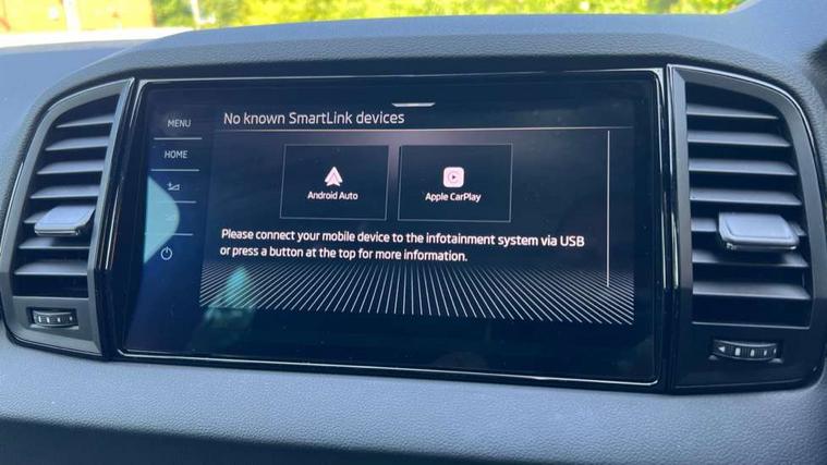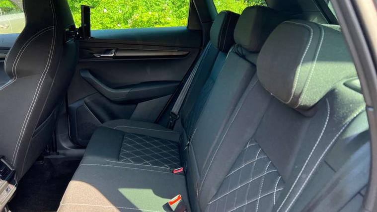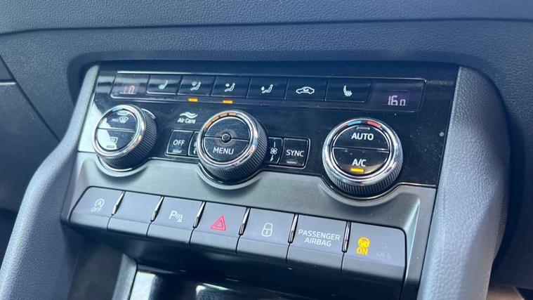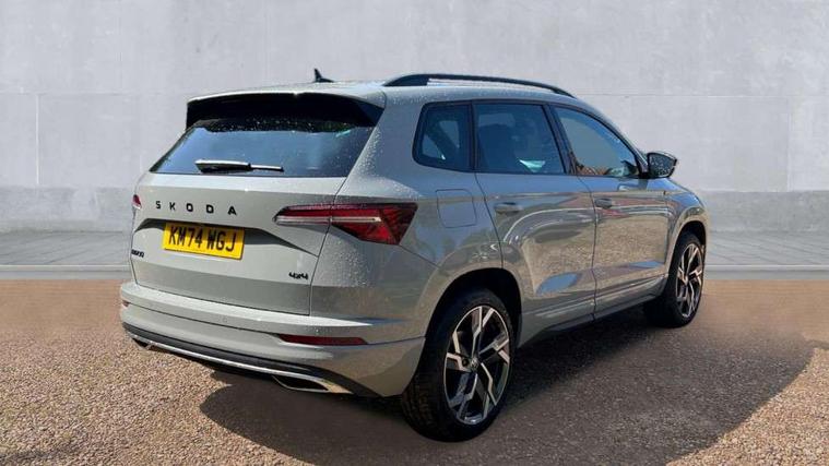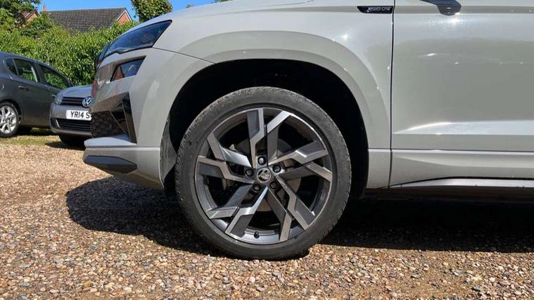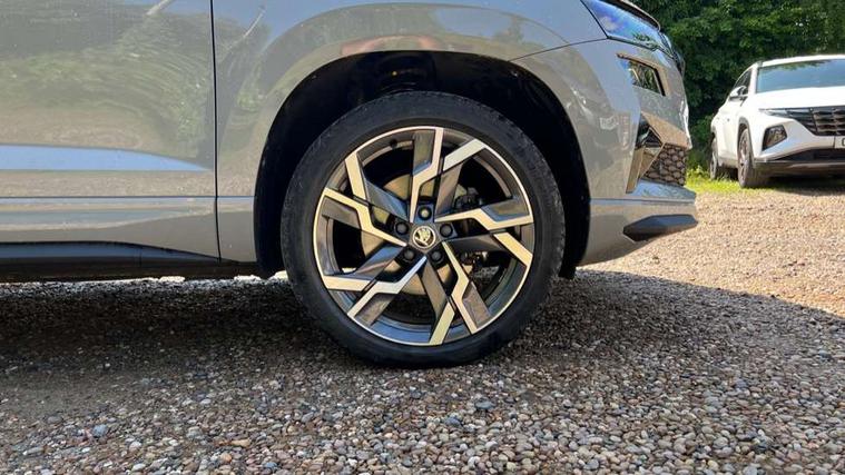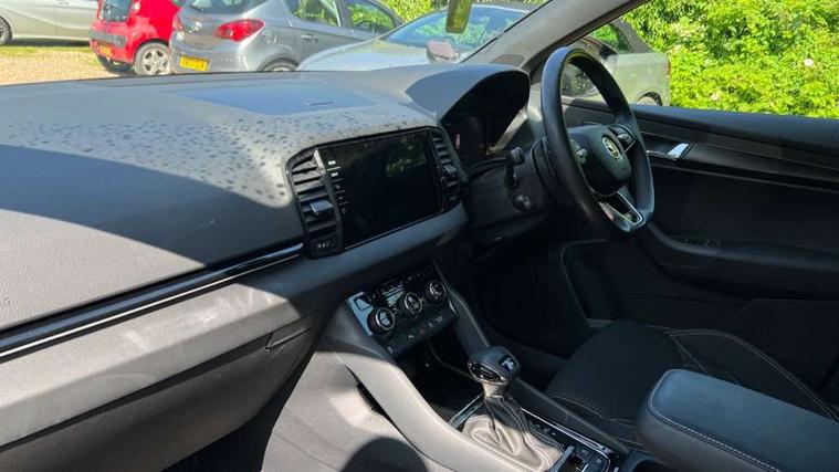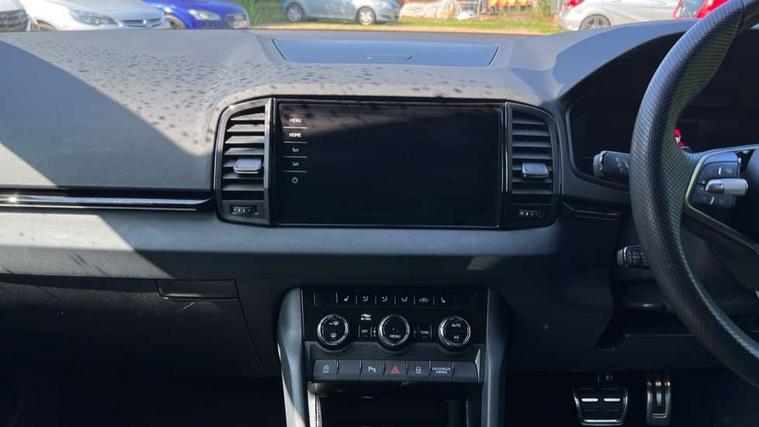 8" Digital display, Advanced driver attention and drowsiness monitor, Emergency services call system, Outside temperature gauge, Sensor for driver assistance systems, Service interval indicator, SmartLink wireless for Apple and wired for Android, Start/stop system with regenerative braking, USB C Port x 2 in front centre console, Virtual Cockpit - 10.25" digital display, Virtual pedal with electrically operated boot door, Wireless smartphone charging, Diesel particulate filter, DAB radio with Bluetooth, USB connection, Acoustic glass, Aero front windscreen wipers with intermittent function, Auto dimming rear view mirror with light and rain sensors, Black door mirrors, Black electric window control buttons, Black radiator grille, Black roof rails, Body colour door handles, Electric front and rear windows with child proof lock, Front door steps with SportLine logo, Heated rear windscreen, LED daytime running lights, LED rear lights with high functionality welcome effect and dynamic indicators, Light assistant (coming/leaving home/tunnel light), Panoramic sliding sunroof, Plastic scuff plates in door apertures, Privacy glass, Protective door side sills in body colour, Rear diffuser, Rear side wing doors, Rear spoiler, Rear window wiper with washer system and intermittent control, Safety reflectors on front doors, Skoda lettering on tailgate in black, Sportline badge on front fender, Sportline decorative inserts with badging, Sports front and rear bumpers, Third brake light, 1.5 litre bottle holders in driver and front passenger door panels, 12V socket in boot, 12v socket in front centre armrest with storage compartment and rear air vents, 2 x Tablet holder, 3 rear height adjustable headrests, 3 seat bench in 2nd row, 3 spoke sports leather heated multifunction steering wheel with DSG paddles, 4 foldable roof handles with rear coat hooks, Black floor carpet, Black roof headlining, Chrome inner door handles, Foldable hooks in the boot, Front head restraints, Height adjustable front three point seats belts with tensioners, Height/reach adjust steering wheel, Ice scraper, Illuminated glovebox, Illuminated luggage compartment, Isofix child seat preparation for front passenger seat, Isofix child seat preparation outer rear, Manual lumbar support for front seats, Pen holder, Pollen filter, Rear boot cover, Rear reading lights, Rear seats fixed folding and divided 60:40, Rubbish bin door, Safety vest holder, Single front passenger seat, Storage box in upper central dashboard closed, Sunvisors with illuminated vanity mirrors, Textile floor mats, Ticket holder, Titan black interior ceiling, Umbrella under passenger seat, Under passenger seat storage compartment, LED Interior lighting pack with Skoda welcome logo - Karoq, Light Pack - Karoq, Non Smokers pack, Automatic door unlocking in case of crash, Automatic fuel cut off in case of crash, Driver airbag, Electronic parking brake with auto hold function, Emergency rear braking signal, ESC (incl. ABS+MSR+ASR+EDS+HBA+DSR+RBS+MKB), Front side airbags, Head airbags, Hill hold control, Knee airbags, Passenger airbag with switch-off function, Pedestrian monitor, Seatbelt reminder signalisation and pretensioner for all seats, Three point seatbelts rear, Two tone horn, Tyre pressure monitor, Alarm with interior monitoring, back up horn and tilt sensor with safe function, Electronic engine immobiliser, Keyless entry and start/stop, Remote central locking with 2 remote folding keys, Black air vent surround, Black centre console, carbon door decor, Satin black dashboard, Satin black door trim, 19" Sagittarius anthracite alloy wheels, Anti-theft wheel bolts protection, Breakdown and tool kit,