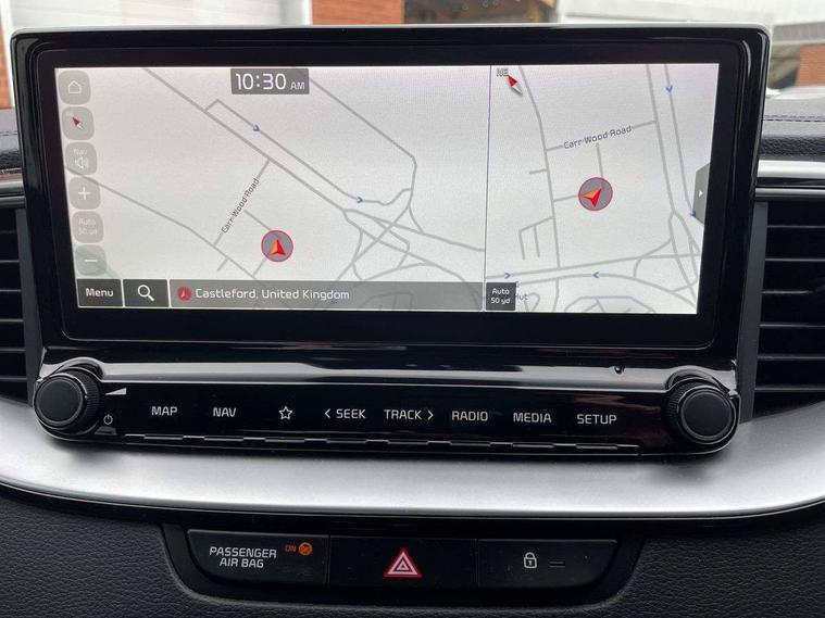 10.25" touchscreen satellite navigation with telematics, 4.2" supervision colour cluster display, Android auto with voice control, Apple car play with voice control, Bluetooth with Voice Recognition & Music Streaming, Cruise control + speed limiter, Driver attention warning, Emergency call service, Forward Collision-Avoidance Assist (FCA) - City/Pedestrian/Cyclist, Lane Following Assist (LFA), Lane keep assist, Motor driven power steering, Rear parking sensor, Reversing camera with dynamic guide lines, Tailgate, Trip computer, Intelligent Stop and Go, 1x Rear USB-C, 2x Front USB (1x USB-C, 1x USB-A), 7 speakers, DAB Radio with MP3, Rear console USB C-type charge port, Steering wheel mounted controls, All-round Electric Windows with Auto Up & Down Function, Auto dimming rear view mirror, Automatic defog system, Automatic headlights, Black side sill mouldings with chrome inserts, Black wheel arch trim, Body colour bumpers, Body colour exterior door handles, Body colour rear spoiler, Body coloured door mirrors with matt black lower housing, Body coloured shark fin antenna, Electrically folding, adjustable and heated door mirrors with integrated LED indicator lights, Heated rear window with timer, High beam assist, High glossy black and satin chrome rear skid plate, LED Bi-Function projection headlights, LED daytime running lights, LED front fog lights, LED High-mounted Brake Light, LED rear fog light, LED rear lights, Matt black and satin chrome radiator grille, Privacy glass - Rear windows and tailgate, Rain sensing front wipers, Rear side wing doors, Rear wiper, Satin chrome window surround, Silver roof rails, Smaller XCeed badge on rear left hand tailgate, Tinted glass, Variable front intermittent wipers, Wide view drivers door mirror, Windscreen Washer Level Warning, 3 seat bench in 2nd row, 60/40 split folding rear seat, All-round height adjustable headrests, Centre Console with Storage Box and Sliding Armrest, Chrome interior door handles, Cloth/faux leather upholstery, Cupholders in centre console, Driver + front passenger electric lumbar support, Driver and passenger front seat pockets, Driver's seat height adjuster, Dual zone automatic air conditioning, Faux leather door trim, Front and luggage area 12V power sockets, Front and rear door storage, Front cabin map light with sunglasses case, Front Passenger Seat Height Adjuster, Heated front seats, Heated steering wheel, Illuminated driver and front passenger sunvisors with vanity mirror, ISOFIX Child seat top tethers and anchor fixings, Leather steering wheel, Luggage area light, Luggage area parcel shelf, Luggage hooks, Rear cabin light, Rear centre armrest with cupholders, Single front passenger seat, Tilt/telescopic adjustable steering wheel, ABS with Electronic Brakeforce Distribution (EBD) and Brake Assist System (BAS), All round 3-point seatbelts, Dual horn, Electronic parking brake, Electronic stability control (ESC) and vehicle stability management (VSM), Front passenger airbag cut off switch, Height adjustable front seatbelts, Hill start assist control (HAC), Impact sensing auto door unlocking, Rear door child safety locks, Seatbelt reminder warning, Traction control, Twin curtain airbags, Twin front airbags, Twin front side airbags, Tyre pressure monitoring system, Alarm system, Engine Immobiliser & Deadlocks, Locking wheel nuts, Smart key with engine start/stop button, 18" Alloy wheels, Tyre mobility kit,