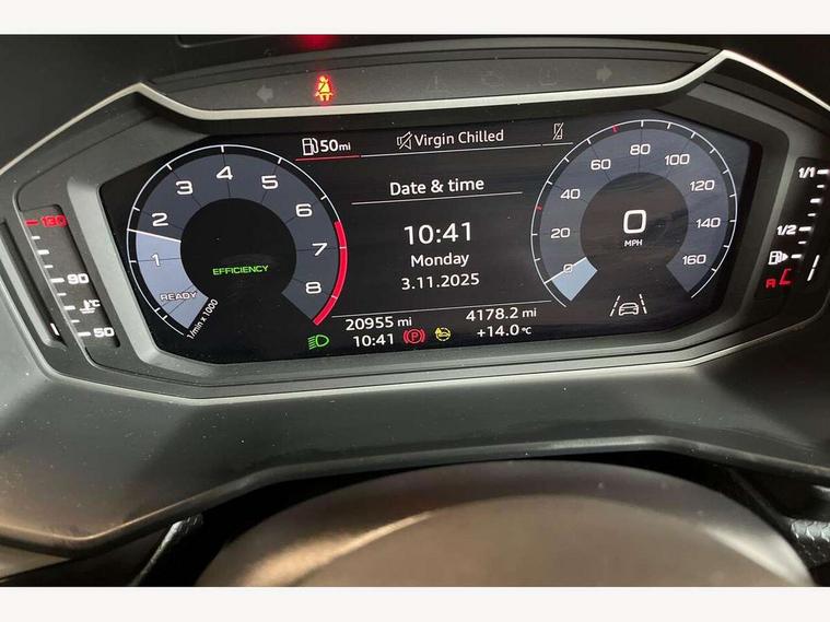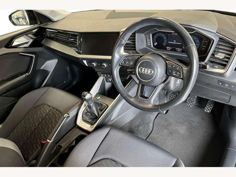 10.25" Digital instrument cluster display classis style instrument dials + speed, odometer, time, outside temperature, telephone menu + fuel level warning, Audi drive select - power steering assistance + engine, Audi smartphone interface with connect compatible smartphone via USB directly MMI display + Nav, music, third party apps controlled via MMI controller, Automatic start/stop system, Bluetooth interface, Cruise control, Driver's information system, Electromechanical power steering, Emergency e-call, Lane departure warning system, Rear parking sensor, Service interval indicator, Speed limiter, Voice control system, Washer fluid level indicator, Dynamic suspension, 2 x USB type C connection points, 6 passive loudspeakers, DAB Digital radio, MMI radio plus with 10.1" colour MMI display screen and MMI touch, Auto dimming rear view mirror, Body coloured bumpers, Body coloured door mirrors, Electric front and rear windows, Electrically adjustable, heated, folding door mirrors with integrated LED side indicator, Front side air inlets in grained matt black and C frame in anthracite black, Heat insulating glass windscreen and side windows, Heated rear windscreen, High level LED brake light, LED headlights with LED rear lights + dynamic rear indicators + headlight adjustment and high beam, turning light + LED daytime running lights, Radiator grille and rear diffuser in matt anthracite black, Radiator protective grille frame in matt aluminium silver, Rain and light sensors, Rear fog lights, Rear side wing doors, Rear wiper, Side front spoiler lips in grained matt black, 12V socket in centre console with two cup holders, 3 rear seats with headrests, 3 seat bench in 2nd row, 3 spoke leather multifunction plus steering wheel, 40:60 Split folding rear seat or folded fully, Black front and rear floor mats, Door sill trims with aluminium inlay, Driver and passenger seat with manual height adjust with forward and backwards adjustment, Front head restraints, Front passenger seat, Grey cloth headlining, Height and reach adjustable steering wheel, ISOFIX child seat mounting for front passenger and outer rear seats including top tether attachment point of outer rear seats, Leather gear knob with aluminium trim, Leatherette handbrake grip, Luggage compartment light with front and rear reading lights, Manual air conditioning, Manually adjustable lumbar support in front seats, Novum cloth upholstery with front sport seats, Luggage compartment pack - A1, 3x3 point rear seatbelts, Audi pre-sense front with pedestrain and cyclist recognition, Brake assist function, Driver and front passenger airbag with front side and head airbags, Electronic Stability Control including ABS, EBD, ASR and EDL, Front passenger airbag deactivation switch, Hill hold assist, Manual rear child locks, Seatbelt height adjustment for front seats, Seatbelt monitoring, Tyre pressure warning light, Warning triangle and first aid kit, Anti theft alarm, Anti theft wheel bolts and loose wheel warning, Immobiliser, Remote central locking with 2 foldaway keys, Aluminium trim for control switches, air vents and digital instrument cluster, Black dashboard, Silver grey accent areas including air vents, door handle recesses and centre console in diamond paint finish, Slate grey inlays polygon structure in fine paint finish,