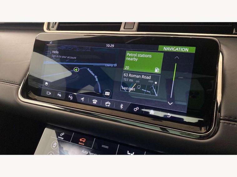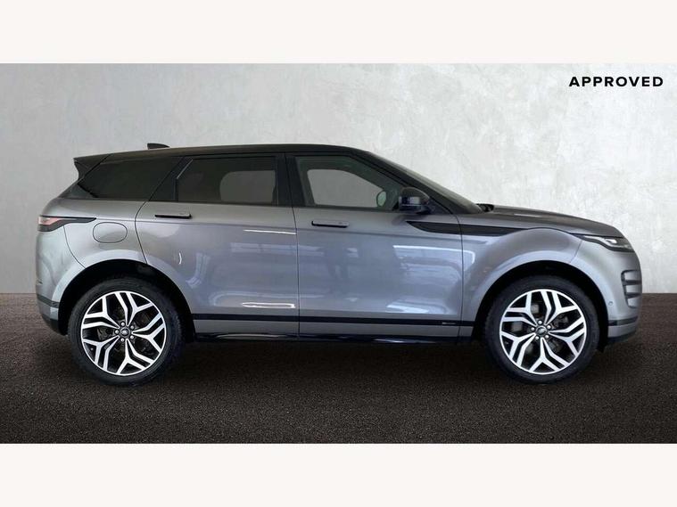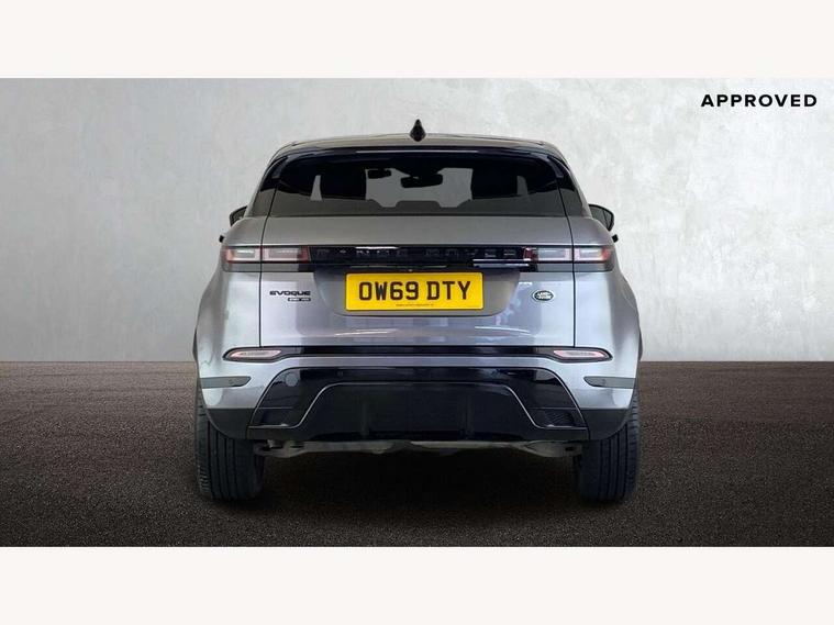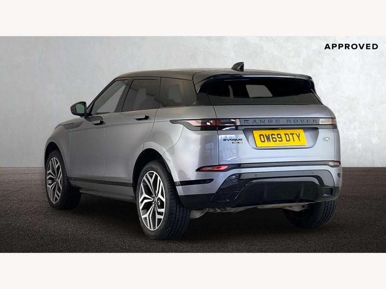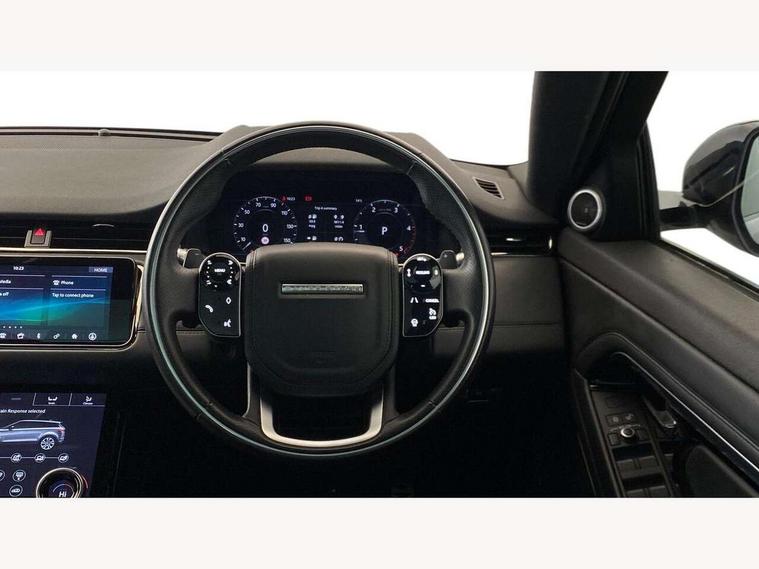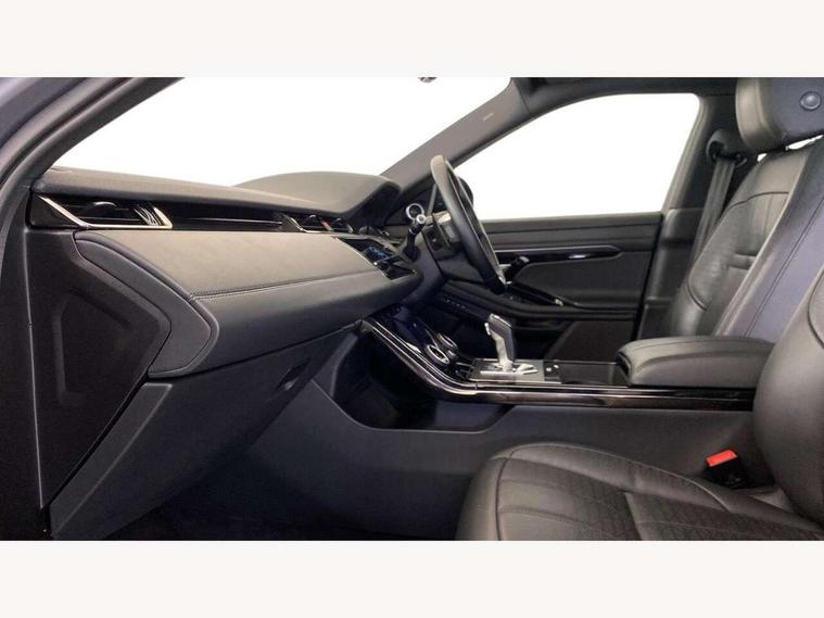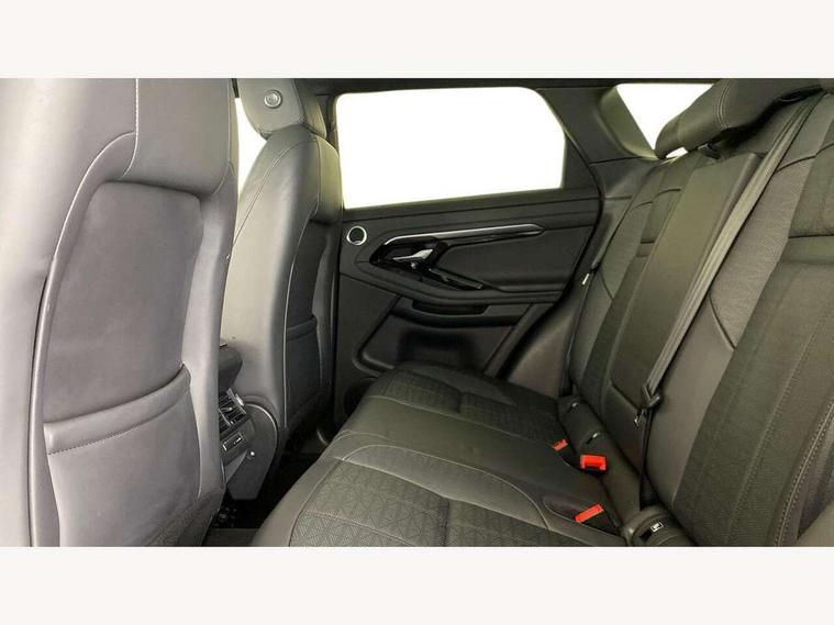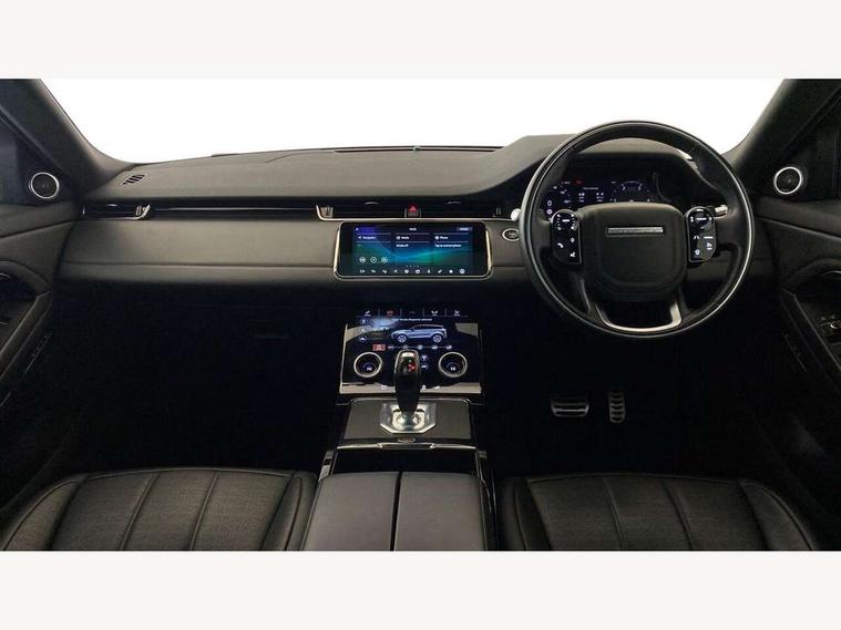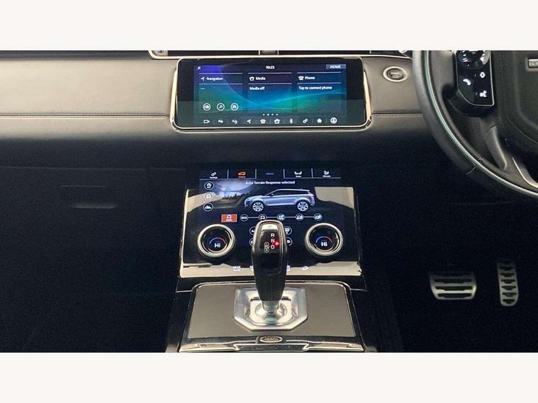 360 degree parking aid, Android Auto, Apple car play, Blind spot assist, Bluetooth connectivity, Brake pad wear indicator warning light, Clear exit monitor, Driver condition monitor, Duo touch pro, Electronic power assisted steering (EPAS), InControl remote, Interactive Driver display instrument cluster, Land Rover InControl apps, Lane keep assist, Navigation pro system, Park assist - Parallel, perpendicular and parking exit, Powered gesture tailgate/boot lid, Pro services and wifi hotspot, Push button starter, Rear traffic monitor, Smart settings, Traffic sign recognition with adaptive speed limiter, Voice control system, All terrain progress control, Efficient Driveline, Passive suspension, Terrain Response 2 Auto, Digital Audio Broadcast radio-DAB, Steering wheel mounted controls, Automatic headlight levelling, ClearSight interior rear view mirror, Electric windows with one touch open/close and anti trap, Evoque and R-Dynamic badge, Flush deployable exterior door handles, Heated rear window with timer, Heated washer jets, Heated windscreen, Power fold, auto-dimming, heated door mirrors with memory and approach lights, Rain sensing windscreen wipers, Rear fog lights, Shadow atlas bonnet and tailgate script, Tailgate spoiler, 40:20:40 split folding rear seats, Black gearshift paddles, Bright metal pedals, Isofix system on outer rear seats, Overhead lighting console, Overhead stowage for sunglasses, Passive front head restraints, Rear air vents, Rear centre headrest, Sunvisors with illuminated vanity mirrors, Twin front cupholders with cover, Twin sliding front centre armrest, 3 rear 3 point seatbelts, Anti-lock braking system (ABS), Customer configurable autolock, DSC - Dynamic Stability Control, Electronic brake force distribution, Electronic parking brake, Electronic traction control, Front and rear seatbelt reminder, High speed emergency braking, Hill descent control, Hill launch assist, Low traction launch, Power operated child locks, Roll stability control, Six airbags - Driver and passenger airbags/driver knee airbag/front side airbag and curtain airbags, Torque vectoring brake, Tyre pressure monitoring system, Alarm, Immobiliser, Intrusion sensor, Keyless entry, Locking wheel nuts,
