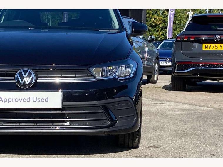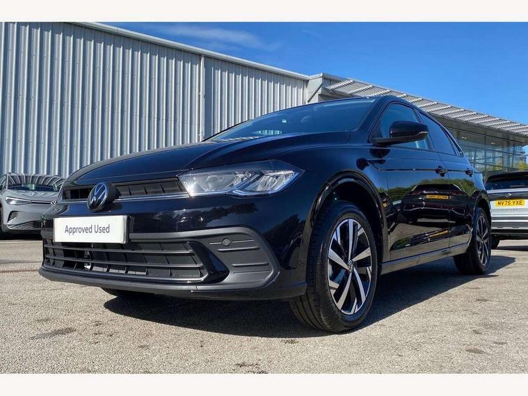 Advanced driver attention and drowsiness monitor, Bluetooth mobile phone interface, Dynamic road sign display, Emergency call service, Mobile phone preparation with inductive charging function, Multifunction front facing camera for distance control, Power assisted speed sensitive steering, Predictive adaptive cruise control without follow-to-stop and speed limiter, Preparation for navigation system with media and internet package, Preparation for We connect and We connect plus, Rear view camera, Speedo and rev counter, electronic odometer, trip, service interval display and exterior temperature gauge, Standard rear axle, Travel Assist - Lane keeping system and traffic jam assist, Travel assist including emergency assist, Trip computer, Warning signal and warning light for front and rear seatbelts not fastened, Washer fluid level indicator, Wireless app connect, Front wheel drive, Rear shock absorpion, Start-stop system with battery regeneration (recuperation - energy recovery during braking), DAB Digital radio, Diversity antenna for FM reception, Automatic dimming interior rear view mirror, Automatic headlight control with LED separate daytime running lights with coming/leaving home function, Body colour bumpers with chrome inserts, Body colour door handles, Body colour door mirrors, Electric front windows, Engine badge deletion, Headlight range adjustment, Heat insulating and laminated safety glass windshield, LED Headlights, LED rear combination lamps, Power folding adjustable/heated exterior mirrors and front passenger exterior mirror lowering function, Rain sensor, Rear electric windows, Rear fog light, Rear side wing doors, Rear tinted glass from B-pillar backwards approx 65% tinted, Rear windscreen washer and wiper with interval delay, Third brake light, 12V power socket in centre console, 2 front and 2 rear reading lights with switch off delay and dimmer, 2 USB-C ports in the front, 2 USB-C charging sockets on the center console in the rear, 3 rear head restraints, 60/40 split folding rear seat and rear seat bench not split, Ceramique roof lining, Chrome plated radiator grille inserts, air vent surrounds and light switch surrounds, Door and side trim panel, Driver and front passenger seat height adjustment, Driver/passenger sunvisors with illuminated vanity mirrors, Front centre armrest, Front seat backrest storage pockets, Front standard seats, Handbrake lever handle in leather, Hartley/Thomas cloth upholstery, Headliner in recycled material, Isofix child seat preparation easy-fit (for two outer rear seats, and front passenger seat) compatible with I-size, Leather trimmed gear knob, Luggage compartment cover, Luggage compartment lighting, Removable luggage compartment floor, Single front passenger seat, Standard climatic zones, Standard pedal cluster, Three spoke leather wrapped multifunction steering wheel with shifting paddles, Light and vision pack - Polo, 3 point height adj front seatbelts + pretensioners, 3 point seat belt for centre rear seat, 3 point seatbelts, outer rear with ECE lable, ABS, Driver and front passenger airbag with front passenger airbag deactivation, Drivers and front passengers safety optimised head restraints, ESC (Electronic stability control) + EDL (Electronic Differntial lock) and ASR (Traction control), Extended and predictive pedestrian/ cyclist protection, Front assist with autonomous emergency braking (for Adaptive Cruise Control ACC up to 130 mph), Front curtain and side airbags with center airbag, Front disc brakes, Hill hold control, Manual child lock in rear doors, Rear drum brakes, Single tone horn, Tyre pressure loss indicator, Alarm with interior protection, Anti-theft alarm system with interior monitoring, backup horn, and towing protection, Anti-theft wheel bolts, Electronic engine immobiliser, Lava stone black gloss/matt decorative inserts in dash and front door panels, 16" Torsby alloy wheels, Low rolling resistance tyres,