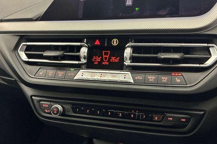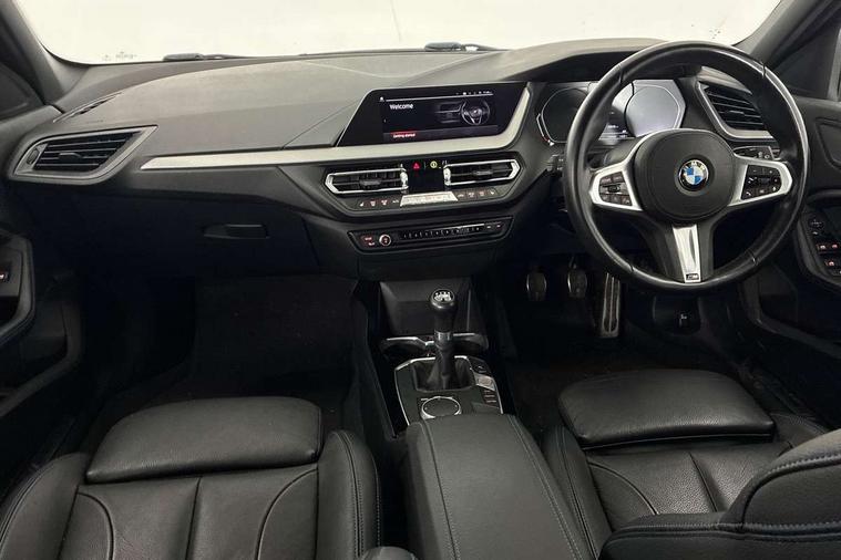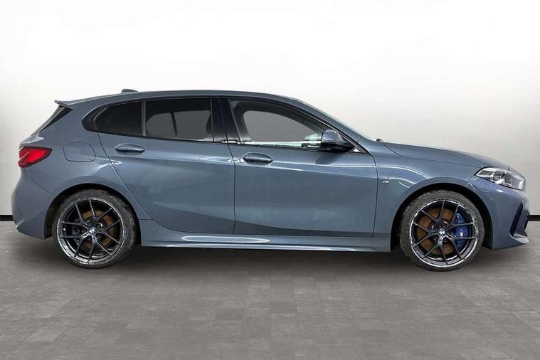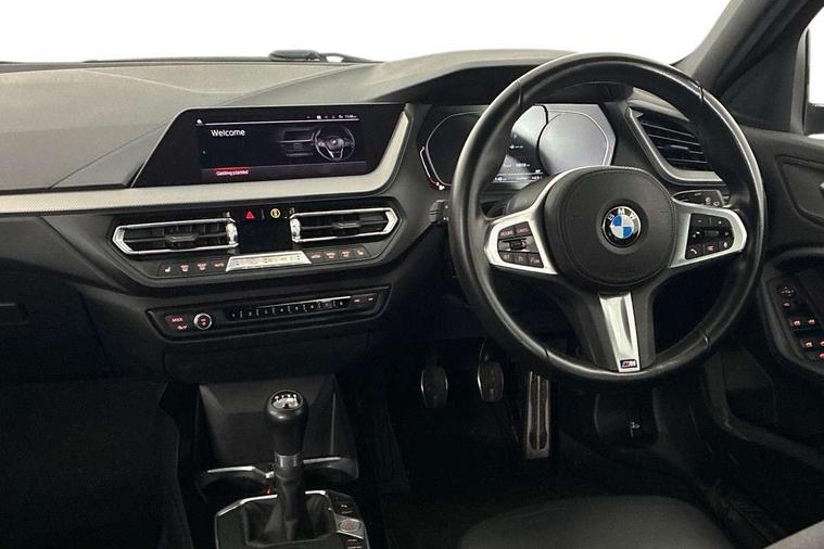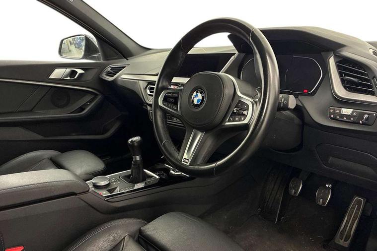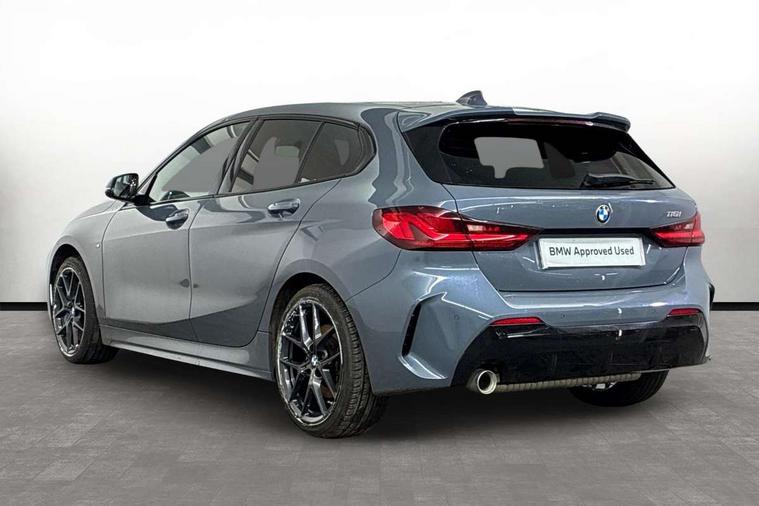 Active guard plus, Attentiveness assist, BMW ConnectedDrive online services, BMW Teleservices, Check Control warning system for monitoring of lights and door/luggage compartment open warning, Cruise control with speed limiter, Eco pro mode, Front axle single joint with specific axle kinematics to minimise drive influences on steering + provide increased rigidity agile driving behaviour, Integrated owners handbook, Lane departure warning system, Oil sensor for level and grade, On board computer, Optimum shift indicator, Personal Profile, Pull away assistant, Rigidly mounted rear subframe - Multi link construction with separate spring / damper configuration and excellent driving characteristics, Speed limit Info including no-overtaking indicator, Aluminium lightweight construction, Anti roll bar front and rear, Balancer shaft, Double VANOS twin scroll turbocharging system, Drive Performance Control, Electronic differential lock, High precision injection, M sport suspension, Petrol Particulate Filter, Twin tube gas filled shock absorbers with degressive characteristic curve, VALVETRONIC engine management, DAB Digital radio, Auto dimming rear view mirror, Automatic headlight beam throw control, Automatic windscreen wipers and automatic headlight, Body colour door handles, Body colour mirror caps, Body colour roof trims, Chrome 'M' logo side designation, Chrome exhaust twin tailpipes round 90mm in left, Chrome kidney grille frame with Satin Aluminium struts, Direction indicator side lights in exterior mirrors, Electrically adjustable exterior mirror with mirror adjustment switch on drivers armrest and aspheric on driver side, convex on passenger side, Fading support, Folding side mirrors with auto dimming/folding wing mirrors with auto dimming, Follow me home headlights, Front and rear bumper system with replaceable deformation elements, Front and rear electric windows with open and close fingertip control, anti trap facility and comfort closing, Front door sill finishers in black plastic with M designation in metallic look, Green tinted heat protection glazing, High gloss shadowline window frame, Recess cover mirror frames and B/C pillar embelisher trim, High level third brake light, Integrated front windscreen with washer jets, LED daytime running lights, LED eyebrow turn indicators, LED front fog lights, Lightweight engineering, Matt black air guide grilles, Matt black wheel arch trim, Model designation on electric bootlid, Nearside reverse light in rear light cluster, Preparation for high beam assistant, Rear fog lights, Rear side wing doors, Rear window wiper, Shark fin antenna, Trailer stabilisation logic, Visible VIN plate, Welcome lighting, 12V power socket in front centre console with blanking plug, 3 rear seat head restraints, 3 seat bench in 2nd row, 3 spoke sports leather steering wheel in black leather with black stitching and decorative finisher in pearl chrome, specific M badge + leather knob, Anthracite headlining, Black boot net with lashing eyes, Cargo function on 2nd seat row, Child seat ISOFIX attachment for two outer rear seats and front passenger seat with anchorage points, Conditioned based service, Driver and front passenger backrest net on rear, Driver and front passenger seat heating, Driver side folding compartment in instrument panel, Folding rear clothes hook, Four grab handles integrated in roof lining, Front and rear door pockets with bottle holders, Front and rear side armrest integrated into door trim, Front armrest, Front sports seats, Gearshift lever with M designation, Glove compartment, Height adjustable front head restraints, Luggage compartment for bag hooks on left and right, foldable luggage compartment liner and four lashing eyelets, Manual adjust steering wheel, Multi-function controls for steering wheel, Single front passenger seat, Storage compartment in centre console, Storage compartment in luggage compartment, Stowage of the parcel shelf in luggage compartment trim, Sun visors with vanity mirrors and insert tab, Two front centre console cupholders, Two zone automatic air conditioning, Type C two USB ports in rear centre console, Velour floor mats, Additional interior lighting pack - 1 Series, BMW live cockpit professional pack- 1 Series, Connected pack professional - 1 Series, Interior lights pack - 1 Series, M Sport exterior styling aerodynamics pack - 1 Series, 2 tone horn, 3 point seatbelts on all seats, front pyrotechnic belt tensioners, stopper and belt force limiters, rear coded belt buckles, Airbags - Front driver/passenger, front and rear curtain head protection, front side, manual deactivation of front passenger airbag, Anti lock braking system (ABS) with brake assist, BMW emergency call, Brake drying, Braking readiness, Child proof locking system in rear door, City braking function, Comfort modes, Cornering brake control, Crash sensor activating of airbags, Unlocking doors, hazard warning lights, interior light, safety battery terminal, Driver and front passenger seat belt security check, Dynamic stability control + (DSC+), Dynamic Traction Control - DTC, Electrically operated hand brake, Front and rear disc brakes, Seatbelt warning, Side impact protection, Tyre pressure monitoring system, Warning triangle and first aid kit, Central locking switch for all doors, fuel filler cap and luggage compartment, Deadlocking function system to all doors, Drive away locking system on all doors and luggage compartment with de-activated in iDrive settings, Locking wheel bolts, Remote control with integrated key with High-gloss Black inlay and M designation and 1 button for open/ close lock, window, open luggage compartment, Start/stop button illuminated in centre console with keyless engine start and auto start stop deactivation button, Thatcham Cat.1 alarm and immobiliser, Wheel slip limitation close to the actuator (ARB), Contrast stitching on instrument panel, 18" Burnished M double spoke bi-colour alloy wheels finished in orbit grey - style 819M