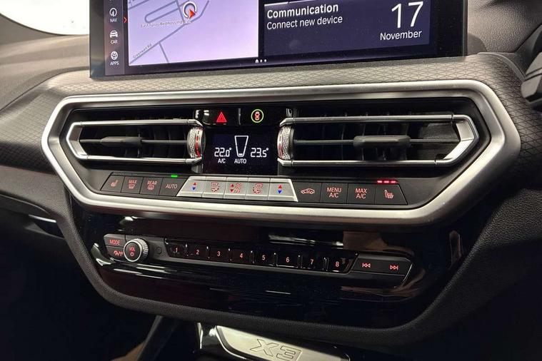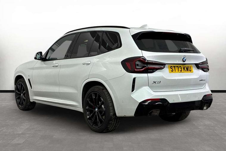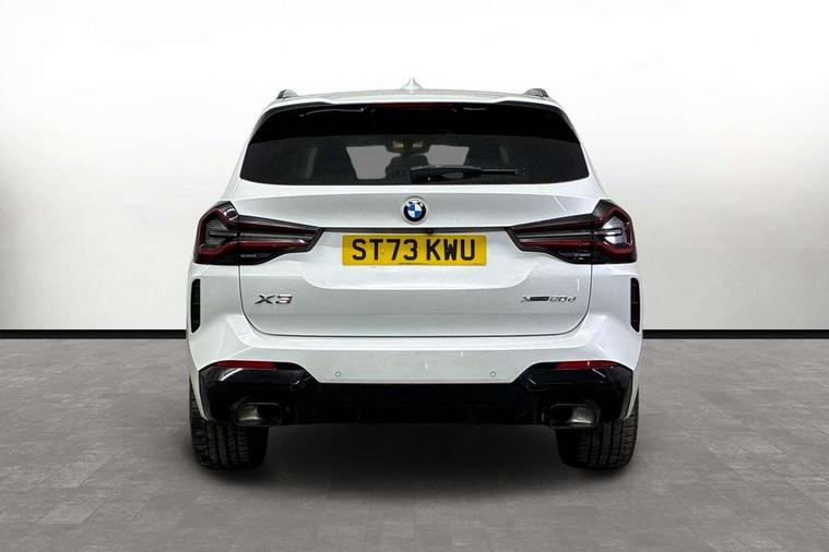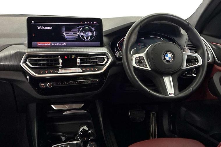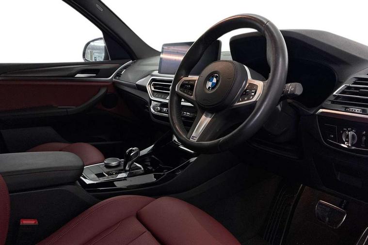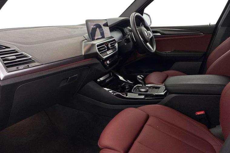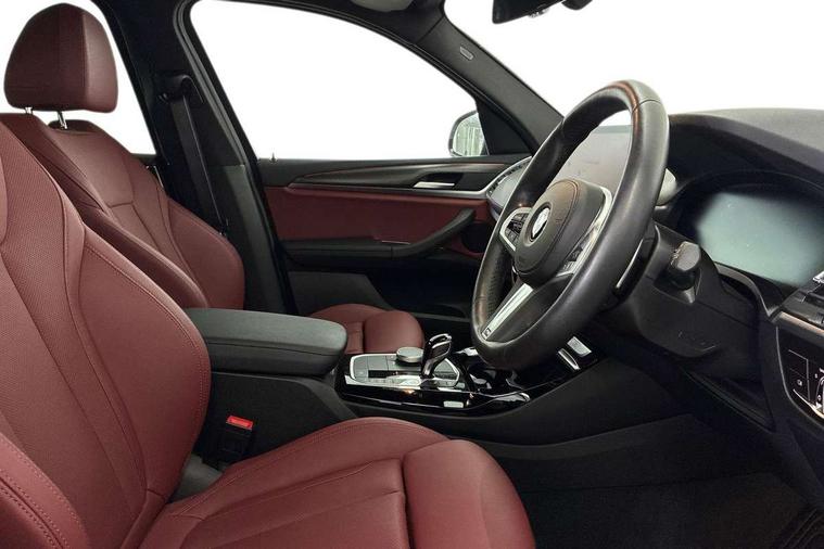 Active Guard, Attentiveness assist, BMW Live Cockpit Professional nav system including 12.3" instrument display + 12.3 high resolution control display, BMW Online services, BMW Teleservices, Brake pad wear indicator in front and rear, Check Control warning system for monitoring of lights and door/luggage compartment open warning, Condition based service - BMW service history, electronic service booklet, integrated owner's handbook, Connected drive services, Electric boot lid, Front/rear Parking distance control, iDrive touch controller with 8 favourite buttons, Instrument cluster with speedometer with mph readout, tachometer, fuel gauge and oil temperature gauge, Lights on warning by audio warning signal when ignition is switched off, Oil sensor for level and grade, warning by check control system, On board computer - average speed+fuel consumption, service interval, clock/date, odometer/trip meter, outside temperature display and ice warning, Optimum shift indicator, Personal Profile - automatic lock when driving away selectable, Run flat indicator, Stop/start system, Variable sports power steering with drive performance control Sport+ mode, Automatic transmission with gearshift paddles, Diesel particulate filter, Incorrect fuelling protection, Larger capacity fuel tank, M sport suspension, Multi-link rear suspension, BMW professional radio/CD/MP3, DAB tuner, Acoustic glazing, Automatic windscreen wipers and automatic headlight, Black finish on B pillars, Body colour door handles, Body colour electric adjust heated aspherical door mirrors, Body colour roof mouldings, Body coloured bumpers, Direction indicator, side repeaters, integrated in exterior mirrors, Dynamic brake lights, Exhaust tailpipes - dual, round, split left and right with chrome finisher, Fingertip control / anti-trap function on electric window, Folding wing mirrors with auto dimming, Follow me home headlights, Front and rear bumper system with replaceable deformation elements, Front and rear electric windows, Gloss chrome tailpipes finishers, Green tinted heat insulating glass, Heated windscreen washer jets, High beam assistant, High gloss black shadow line roof rails, High gloss shadowline exterior trim in decorative moulding side frame/recess cover/guide rail/B, C pillars/mirror frame and triangle with mirror base, High level 3rd brake light incorporating LED Technology, Interior rear view electrochromatic mirror with automatic anti dazzle function, LED tail lights, Lightweight engineering, M aerodynamic bodystyling, M Sport entry door sill strips, Model designation, Rain sensor, Rear side wing doors, Rear wing door, Rear wiper, Shark fin antenna, Side exterior M designation badges, Visible VIN plate, Welcome lighting, Windscreen wipers with adjustable interval, 12V power point in luggage area, 12V power socket in front centre console, 2 x USB Type C ports for charging and data transmission (front centre console) and 2 x USB Type C ports for charging (rear centre console), 3 rear headrests, 3 seat bench in 2nd row, 3 zone automatic air conditioning, 4 lashing points to secure luggage, 40:20:40 split folding rear seat with loading system, Ambient lighting, Anthracite headlining, Automatic interior light when door is opened/ignition switched off or via remote key, Floor mats in velour, Foldable storage floor with compartment, Four grab handles integrated in roof lining, Front and rear bottle holders integrated into door trim storage compartments, Front and rear side armrests integrated into door trim, Front centre armrest with storage compartment, Front footwell lights, Front head restraints, Front passenger seat, Front sports seats, Front/rear courtesy lights with soft on/off dimming, Front/rear reading lights, Heated front seats, Isofix rear child seat preparation, Leather gear knob, Lockable glove compartment, Luggage area underfloor compartment, Luggage compartment lighting, M sport leather steering wheel, Multifunction steering wheel, Parcel shelf removeable and storable under boot floor, Reach and rake adjustable steering column, Rear centre armrest with 2 cupholders, Removable / retractable luggage cover, Slope adjustable rear seats, Storage compartment in rear centre console and front/rear door trims, Sun visors with vanity mirrors and ticket pocket, Toolkit located in luggage compartment, Two front cupholders with removable oddments tray/lid, Connected pro pack - X3, ADB - Automatic Differential Brake, Anti-lock braking system (ABS) with brake assist, Automatic Stability Control (ASC), Battery safety cut-off, BMW emergency call, Brake drying, Brake energy regeneration, Braking pre-tensioning, Child locks on rear doors, Cornering brake control (CBC), Crash Sensor - activation of central locking release, hazard warning light and interior lighting, Deactivation of fuel pump in the event of a crash, Driver and front passenger front and side airbags with passenger deactivation and ITS front and rear head airbags, Driver and front passenger knee airbag, DSC+, Dynamic brake control, Dynamic Traction Control - DTC, Electromechanical parking brake, Hill descent control, Hill start assist, Seatbelt security check for front seats, Side impact protection, Three point seatbelts to all seats with front and outer rear pyrotechnic belt tensioners and seat belt force limiters, Two tone horn, Tyre pressure sensor, Ventilated front and rear disc brakes, Warning triangle and first aid kit, Central locking switch for all doors, fuel filler cap and luggage compartment, Electronic engine immobiliser, Locking wheel nuts, Remote control including two integrated key - one button for open/close all lockable content, windows and separate button for open luggage compartment, Remote control Thatcham category 1 alarm, Start/stop button with Comfort Go keyless engine start and auto Start/stop deactivation button, Low rolling resistance tyres,