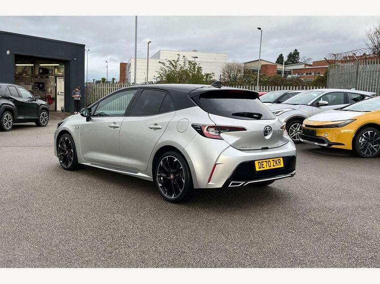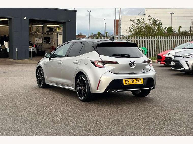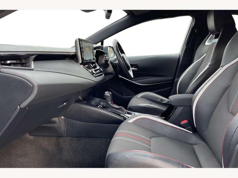 3D Colour multi information display, Bluetooth telephone connectivity, E-call, Electrically assisted power steering, Head up Display, Intelligent park assist, Push button start, Reversing camera, Smartphone integration with Apple CarPlay and Android auto, Speed limiter, Voice activation, Vehicle Stability Control (VSC), 2 ring combimeters with 7" colour TFT screen, 6 speakers, 8" multimedia and back monitor, AM/FM radio, DAB Digital radio, Toyota touch 2 with go navigation system, USB and Aux in connectors + 12V front outlet, Anti-jam protection on power windows, Auto dimming inside rear view mirror, Auto up and down function on all power windows, Automatic folding mirrors, Automatic headlights, Body coloured bumpers, LED daytime running lights, LED front fog lights, LED Headlights, LED rear combi lights with LED lightguide, Power adjustable heated door mirrors, Power front windows, Power rear windows, Privacy glass, Rain sensing wipers, Rear window wiper, Reverse tilting door mirrors, Shark fin antenna, 3 rear headrests, 3 spoke leather steering wheel + gear knob, Alcantara/partial leather upholstery, Clean air filter, Dual zone automatic air conditioning with ECO mode switch, Front head restraints, Heated seats, ISOFIX seat fixing (2 fixings on rear outer seats), Pollen filter, Power lumbar support, Sports seats, Steering wheel switches, Tilt/telescopic steering column, Whiplash Injury Lessening (WIL) feature (active headrest) for seats, Parking pack - Corolla, Toyota safety sense 2 pack - Corolla, 3x3 point rear seatbelts, Adjustable front driver seat belt extender, Anti lock braking system + Electronic brake force distribution, Brake assist function, Electronic parking brake, Front passenger airbag on/off switch, Front seatbelt reminder, HAC-Hill-start Assist Control, Rear seat belt reminder, Seatbelt pretensioners and force limiters, Supplemental restraint system (SRS) 7 airbags - dual driver, dual side curtain, side impact and driver knee airbags, Traction control, Tyre pressure warning system, Alarm/immobiliser, Remote central locking + deadlocks, Tyre repair kit,