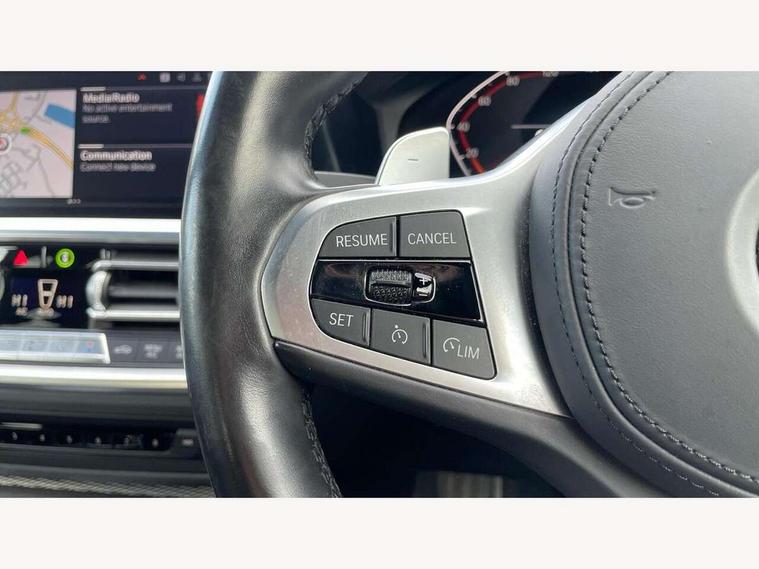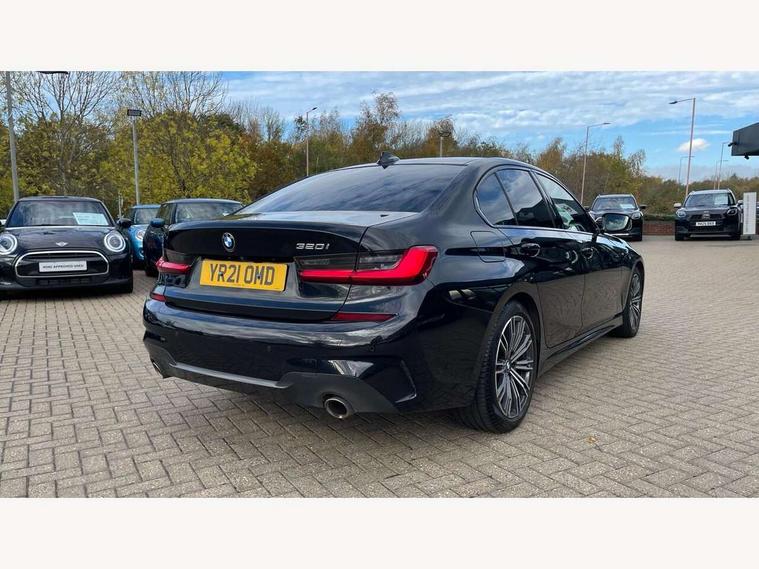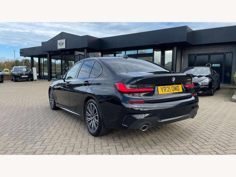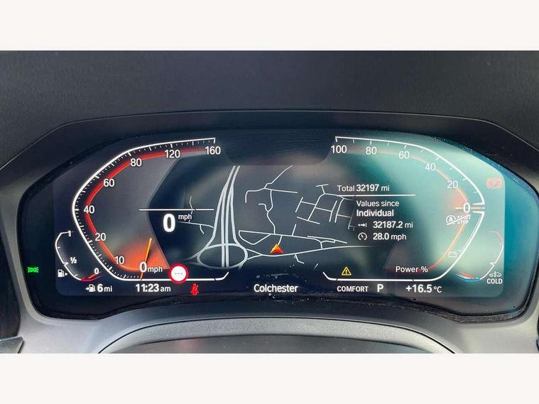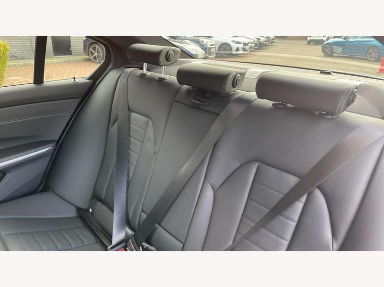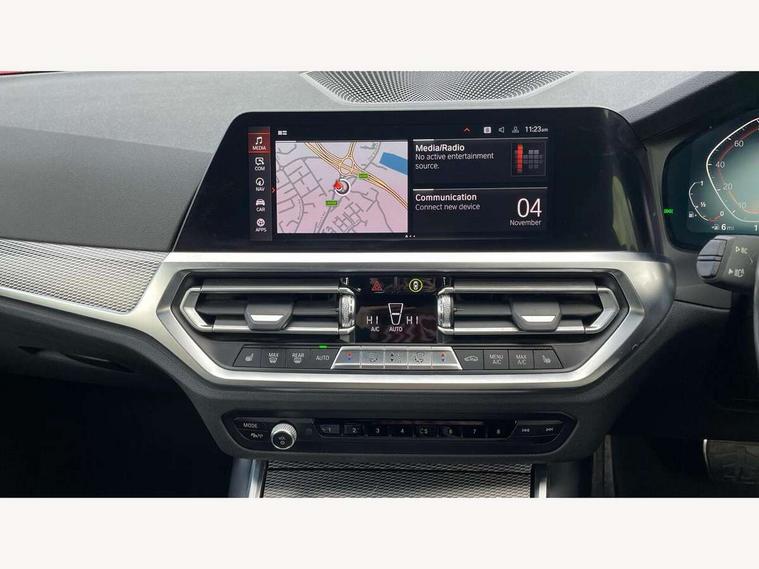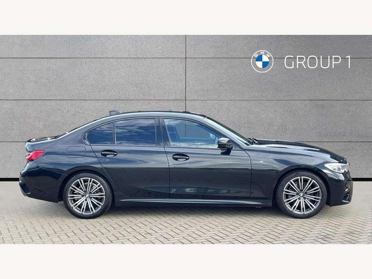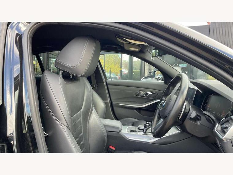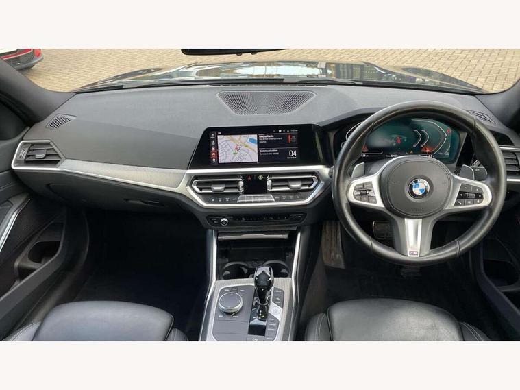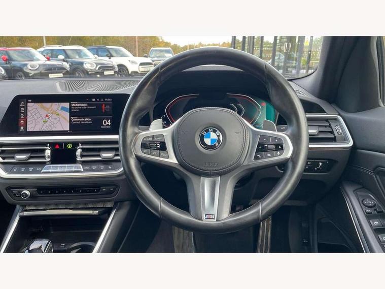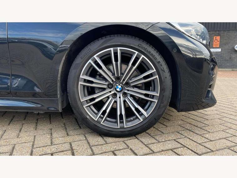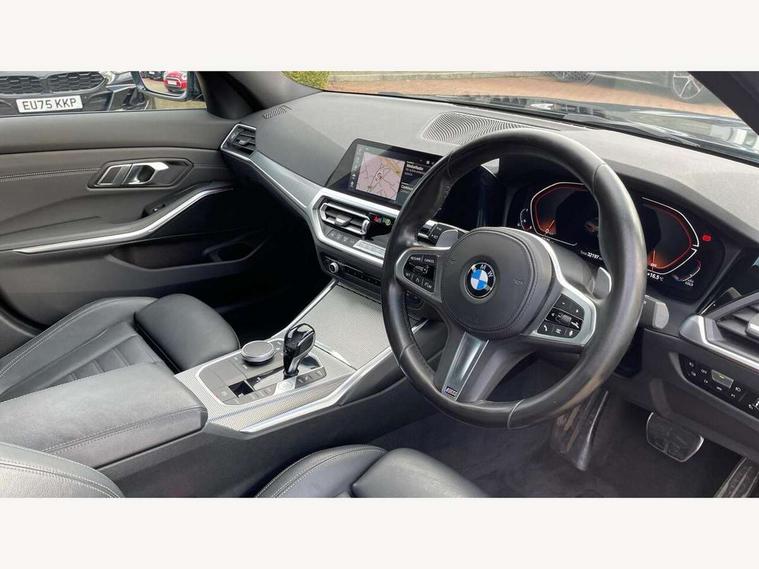 Active guard plus, Attentiveness assist, Auto start-stop, BMW iDrive controller on centre console, BMW Live Cockpit Professional Nav with 12.3" instrument display + 10.25" display, Intelligent Voice Assist, BMW OS 7, HDD, 2USB, 4G LTE connect, BMW service history, BMW Teleservices, Brake pad wear indicator in front and rear, Check Control warning system for monitoring of lights and door/luggage compartment open warning, Condition based service, Electric power steering with Servotronic steering optimised at all speed ranges, Instrument cluster with speedometer with mph readout, tachometer, fuel gauge and oil temperature gauge, Integrated owners handbook, Oil sensor for level and grade, warning by check control system, On board computer - average speed+fuel consumption, service interval, clock/date, odometer/trip meter, outside temperature display and ice warning, Optimum shift indicator, Personal Profile - automatic lock when driving away selectable, Variable sport steering, Balanced 50/50 weight distribution, Battery cut-out switch, Drive performance control - ECO PRO, comfort and sport modes, Larger capacity fuel tank, M sport suspension, Petrol Particulate Filter, Stroke dependent dampers, DAB tuner, Electronic service booklet, Acoustic glazing, Active airstream chrome frame kidney grille with 8 high gloss black vertical slats, Automatic headlight beam throw control with load dependent regulating reaction, dynamic compensation of braking dive and acceleration squat, Black roof mouldings, Body colour door handles, Body colour front and rear bumpers, Body colour fuel filler flap, Body colour mirror caps with bottom segment in matt black, Dynamic brake lights, Electric windows - front and rear, with open/close fingertip control, anti-trap facility and comfort closing, Exhaust tailpipe - split left and right, Exterior mirrors - electrically folding with anti-dazzle, Fading support, Front and rear bumper system with replaceable deformation elements, Front black door sill finishers with BMW designation, Green tinted heat protection glazing, High gloss shadow line exterior trim, Interior rear view electrochromatic mirror with automatic anti dazzle function, LED daytime running lights, LED front fog lights, Lightweight engineering, M designation on front side panels, left and right, Matt black exterior B pillar, Model designation on right side of tailgate, Rain sensor with automatic headlight activation, Shark fin antenna, Two part LED tailights in L-shape with components in smoked glass, brake light, LED turn indicator and rear fog light, Visible VIN plate, Welcome lights in interior and door handle area, Windscreen wipers with integrated washing jets, 12V power socket in front storage compartment, 2 front cupholder in centre console with clamping elements and matt black inlay, 3 rear seats with non folding headrests with 3 point seat belts, 3 zone automatic air conditioning, 4 pieces lashing eyelets in luggage compartment, 40:20:40 split folding rear seat with loading system, Ambient lighting with welcome carpet light, Anthracite headlining, Armrest integrated in front and rear door trim + front centre console armrest, Centred top Luggage compartment lights, Four grab handles integrated in roof lining, Front and rear door exit lighting (left / right), Front and rear door pockets, Front and rear reading lights, Front and rear velour floor mats, Front head restraints, Front sport seats, Heated driver and front passenger seats, Height adjustable mechanically and infinitely variable steering column, Illuminated armrest storage compartment, Illuminated glove compartment with separate small compartment, Interior lighting - front centre over interior mirror with soft light, rear centre and front and rear footwell lighting, M sport leather steering wheel, Make-up mirror lights, Rear centre armrest with 2 cupholders, Rear centre console with storage compartment and ventilation grille, Sunvisors with vanity mirrors and ticket pocket, Toolkit located in luggage compartment, Connected pack professional - 3 Series Saloon/Touring, M sport exterior styling pack - 3 Series Saloon/Touring, 2 tone horn, BMW emergency call, Brake energy regeneration, Braking pre-tensioning, Child proof locking system in rear door, Child seat ISOFIX attachment rear outer seats, Coasting in idle in ECO PRO mode, Crash sensor activating of airbags, Unlocking doors, hazard warning lights, interior light, safety battery terminal, Driver and front passenger side airbags, integrated in the door side seat backrest bolsters for all seat variants, Driver/Front Passenger airbags, Dry braking, Dynamic brake control, Dynamic stability control + (DSC+) - Anti-lock Braking System (ABS) with brake assist and cornering brake control + Automatic Stability Control (ASC), Dynamic Traction Control - DTC, Electric parking brake including automatic hold function and automatic release of the parking brake when driving off, Electronic differential lock control (EDLC), Front passenger manual airbag deactivation, Head airbags for all 4 outer seats, Hill start assist, Seat belt security check for driver and front passenger, Side impact protection, Three 3 point seat belts on all seats including front belt stopper, pyrotechnic belt tensioners and belt force limiters, Tyre pressure monitoring with three level warning strategy, Ventilated front and rear disc brakes, Warning triangle and first aid kit, Alarm system (Thatcham 1) with remote control and electronic engine immobiliser, Central locking switch for all doors, fuel filler cap and luggage compartment, Remote control with integrated key one button open/close vehicle and windows, sole opening of the luggage compartment lid and panic mode, Start/stop button with Comfort Go keyless engine start and auto Start/stop deactivation button, Vehicle key with M specific designation, Reduced rolling resistance tyres,
