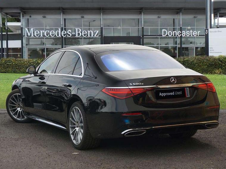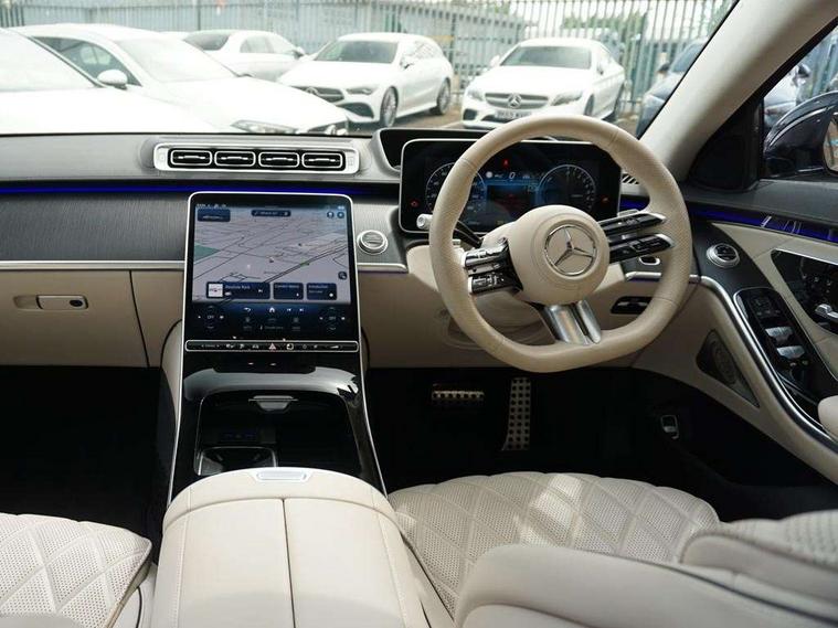 12.3" 3D driver display, 12.8" OLED central display, 5G Communications module, Acoustic ambient protection, Apple car play/Android Auto, Attention assist, Bluetooth connection, Crosswind Assist, Direct steering, DYNAMIC SELECT with a choice of driving modes, ECO start/stop function, Extended MBUX functions, Fingerprint scanner, Hands-free access for boot lid, Hard disc navigation, Intelligent parking pilot, MBUX augmented reality for navigation, MBUX augmented reality head-up display, MBUX interior assist - front and rear, MBUX navigation premium, MBUX rear tablet, Mercedes-Benz emergency call, Power closing aid for doors and boot lid, Pre-installation for private car sharing, Preinstallation for Navigation Services, Rear belt status indication in the instrument display, Remote and charging services plus, Remote boot lid release and closing, Service indicator (ASSYST), Wireless charging system for mobile devices in the front, Wireless charging system for mobile devices in the rear, Wireless smartphone integration, 76 litre fuel tank, 9G TRONIC 9 speed automatic transmission, Airmatic air suspension, Alternating current charging system (AC charging), Charging cable for domestic socket, 5 m, straight, Charging cable for wallbox and public charging stations, 4 m, straight, Direct current charging system (DC charging), Burmester 3D surround sound system, DAB Digital radio, Front 2x USB type-C ports, Rear 2x USB type-C ports, Sound personalisation, Adaptive brake lights, AMG front apron in A-wing design with large air intakes and fins in chrome plus front splitter in chrome, AMG rear apron with diffuser and trim element in chrome, Automatic headlights, Automatically dimming rear view mirror, Digital light - LED headlight, adaptive highbeam, cornering and active light, enhanced fog light, city, country road mode, weather and LED rear lamp, Electrically adjustable, heated and automatic dimming driver side exterior mirrors with kerb/parking function, Exterior mirror - Ambient lighting with projection of brand logo, Front and rear electric windows, Heat-insulating, dark-tinted glass, Heated windscreen, Illuminated door sill panels with Mercedes-Benz lettering, LED daytime running lights, LED third brake light, Magic vision control, Panoramic sliding sunroof, Privacy glass, Radiator grille with chrome surround and three horizontal cross struts in chrome with inserts in high-gloss black, Rear boot, Rear side wing doors, Shoulderline trim strip in chrome, Side sill panels with chrome insert, Visible tailpipe trim elements in chrome, 12V socket in boot, 12V socket in rear centre console plus in the front passenger footwell, 3 seat bench in 2nd row, 3 twin spoke flattened bottom multifunction sports steering wheel in nappa leather with silver chrome shift paddles, 4 way electrically adjustable lumbar support for driver and front passenger, Active ambient lighting 64 colours with 10 colour schemes, Adaptive rear compartment lighting, AMG floor mats, AMG pedals in brushed stainless steel with rubber studs, Automatic child seat recognition sensor, Belt feeders in the rear, Centre console in black crystal look finish, Charging socket, Climatised front seats, Climatised rear seats, Double sun visors with pivoting section to cover the side window, Driver and front passenger seat heating plus, EASY ADJUST luxury head restraints with additional cushion for driver and front passenger, foldable and removable on front passenger side, Easy entry system for driver, Electric rear window sunblinds, Electric sunblinds in rear doors, left and right, Electrically adjustable rear seats including memory function, Energizing Air Control - Air quality and fine particle sensor, Fabric roof liner, Front passenger side seat electrically adjustable from the rear, Luxury rear head restraints with extra cushion, Rear centre armrest with double cup holder and trim element, Seat heating plus for outer rear seats, Single front passenger seat, Steering column gear selector, Steering wheel heating, Thermotronic automatic 4 zone climate control, Through loading system, Two bag hooks, Active multicontour seat pack - S Class, Chauffeur pack - S Class, Driving assistance package - S Class, Memory pack - S Class, Parking package with 360 degree camera - S Class, USB pack plus - S Class, Warmth comfort package - S Class, Anti lock braking system (ABS) with brake assist, Brake pad wear indicator front brakes, Centre airbag, Child locks on rear doors, Driver/Front Passenger airbags, Electric parking brake, Electronic stability programme with acceleration skid control, First aid kit, Forward facing rear airbags, Front and rear illuminated designer belt buckles, Front large compound brake discs 390x36mm internally ventilated and perforated, Front side airbags, Grey painted brake callipers with Mercedes-Benz lettering at the front, grey logo badge at the rear, i-Size and ISOFIX rear child restraint system, Pedestrian protection, Pre-safe system including pre-safe sound, Rear larger compound brake discs 360x26mm internally ventilated and perforated, Rear side airbags, Three 3 point rear seatbelts, Tyre pressure loss warning system, Window airbags, Dashcam, Guard 360 degree vehicle protection plus, Increased anti-theft protection, KEYLESS-GO starting function with seamless door handles, Locking wheel nuts, Remote central locking, 20" AMG multispoke alloy wheels in himalaya grey with high-sheen finish, Noise reduced tyre with foam absorber, Summer tyres, Tyrefit tyre sealant kit,