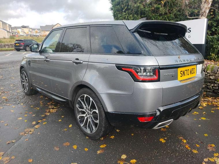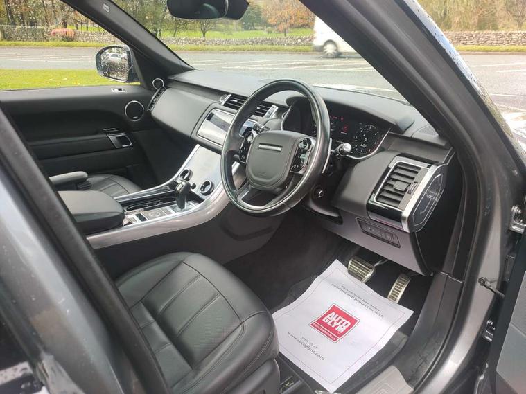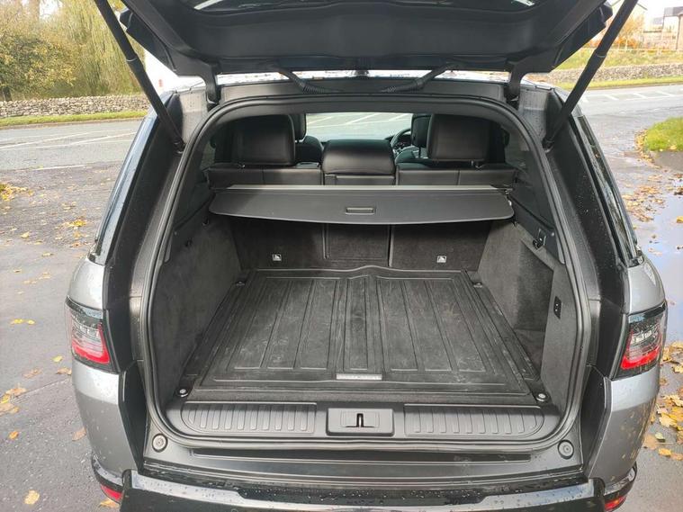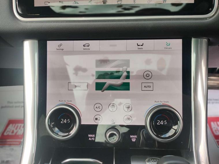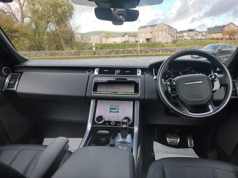All Terrain Info Centre, Android Auto, Apple car play, Bluetooth connectivity, Electric power assisted steering (EPAS), Incontrol apps in vehicle touchscreen, Interactive Driver display instrument cluster, Mist sensor, Navigation pro system with 10" touch screen, app interface and media storage, Powered gesture tailgate/boot lid, Pro services and wifi hotspot, Push button start, Remote premium - Upgraded Incontrol remote app including remote climate control (engine dependent), remote lock + Unlock and remote beep + flash, TFT Virtual Instrument Panel, Touch pro duo system, Trip computer, Engine cover, Gradient release control (GRC), Bluetooth audio streaming, DAB Radio (Digital Audio Broadcasting), Incontrol protect - SOS emergency call with automatic collision detection, optimised assistance call and Incontrol remote app essential, USB/aux input socket, Acoustic front and toughened rear side glass, Acoustic laminated front windows, Adaptive brake lights, Auto dimming interior rear view mirror, Automatic headlights, Body coloured bumpers, Body coloured door mirrors, Electric windows with one touch open/close and anti trap, Electrical towing preparation, Follow me home lighting, Front and rear recovery eyes, Front fog lights, Headlight power wash, Heated rear window, Heated windscreen includes heated washer jets, LED rear lamps, Privacy glass (Tinted glass rear of B pillar), Rain sensing windscreen wipers, Rear fog lights, Rear wash/wipe, Remote window closing, Side repeater indicators in mirror, Sport Badge in silver, Standard bonnet, Trailer stability assist, 2 way active front head restraints, 2 way rear head restraints, 60/40 load through rear seats, Auto air recirculation, Bright metal foot pedals, Centre console with armrest, Climate control memory, Customer configurable single point entry, Driver's footrest, Front and rear cupholders, Front door storage space, Front map lights, Front seat back map pockets, Front stowage pocket, Front/rear passenger grab handles, Heated steering wheel, Isofix child seat preparation, Leather steering wheel with Atlas inserts, Loadspace light, Loadspace mounting provisions, Lockable glovebox, Multifunction steering wheel, Pollen filter, Power socket, Reach/rake electric adjustable steering column + entry/exit tilt away, Rear centre armrest, Rear ISOFIX, Roller blind loadspace cover, Satin chrome gearshift paddles, Three 12V accessory power outlets, Smartphone pack - Range Rover Sport, 3 point seatbelts on all seats, Anti-lock braking system (ABS), Brake pre-fill technology, Cornering brake control (CBC), Curtain airbags, Customer configurable autolock, DSC - Dynamic Stability Control, Dual stage driver/passenger airbags, EBD - Electronic brakeforce distribution, Electric parking brake, Electronic traction control, Emergency braking includes city, urban AEB and pedestrian, Front seatbelt pretensioners, Gradient acceleration control, Grey anodised brake calipers, Height adjustable front seatbelts, Hill descent control, Hill launch assist, Low traction launch, Passenger seat occupant detector with front airbags, Power operated child locks, Roll stability control, Seatbelt warning, TPMS (Tyre pressure monitoring system), Immobiliser, Intrusion sensor, Keyless entry, Locking wheel nuts, Perimetric and volumetric anti theft alarm, Remote locking, Grand black veneer,