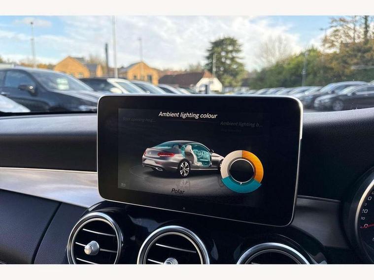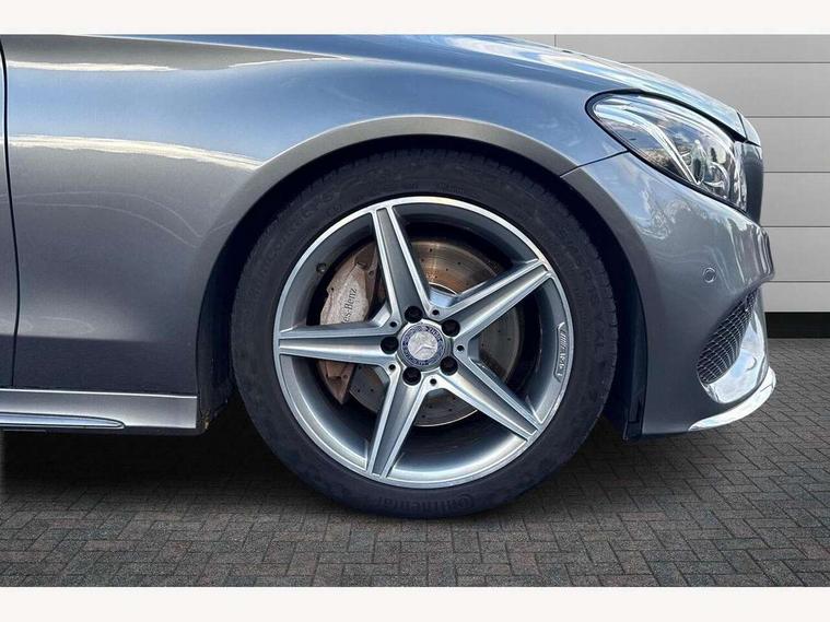 Active park assist with parktronic system, Attention assist, Bluetooth interface for hands free telephone, Collision prevention assist plus, COMAND online nav with colour display, radio/CD/DVD/MP3, SD card, 10GB music, Emergency Call system, speed limit assist, linguatronic voice control, DYNAMIC SELECT with a choice of driving modes (ECO, Comfort, Sport, Sport+ and Individual), Instrument cluster with 5.5-inch TFT multi-function display, Mercedes connect me, Multi function trip computer, Outside temperature gauge, Remote boot release, Service indicator (ASSYST PLUS), Speed sensitive steering, Diesel particulate filter, 2 USB ports, Burmester surround sound system, DAB digital radio module, Frontbass loudspeakers, Media interface, Adaptive brake lights, AMG front, rear apron and side skirts, Auto dimming driver's door mirror, Auto dimming rear view mirror, Body coloured bumpers, Chrome grille surround, Door sill plates with "Mercedes-Benz" lettering, Electric adjustable/heated/folding door mirrors, Electric front sliding and fixed rear panoramic glass sunroof, Electric windows one touch open/close, Green tinted glass, Heated windscreen washers, LED daytime running lights, LED tail lights, Radiator grille with integral star, Rain sensor windscreen wipers, Side windows surround in polished aluminium, Twin chrome exhaust tailpipes, 2 cupholders in front centre console, 2 way rear head restraints, 3 spoke flat bottom multi-function leather AMG steering wheel, 4-way lumbar support for drivers seat, 4-way lumbar support for front passenger seat, 40:20:40 split folding rear seats, Advanced multicolour ambient light and LED interior light, AMG floormats, Auto dual-zone climate control system, Auto Mercedes-Benz child seat recognition sensor, Door courtesy lamps, Electric front seats, Front centre armrest with storage compartment, Front footwell illumination, Heated front seats, Height/reach adjustable steering column, Illuminated front/rear door handle recesses, Illuminated glovebox, Isofix rear child seat fastenings, LED reading lights, Sports pedals with stainless steel surfaces and rubber studs, Sports seats with integrated headrests, Steering wheel gearshift paddles, Sunvisors with illuminated vanity mirrors, Memory pack - C Class, Seat comfort pack - C Class, Stowage space pack - C Class, 2 rear seatbelts, ABS + BAS, Active bonnet, Adaptive brake system, Black seatbelts, Brake calipers with Mercedes-Benz lettering + perforated brake discs, Drivers knee airbag, Drivers pelvis airbag, Dual stage driver/passenger airbags, Electronic parking brake, ESP with ASR, Front side airbags, Hill hold control, Hill start assist, Tyre pressure monitoring system, Warning triangle and first aid kit, Window airbags, Alarm system/interior protection/immobiliser, Chrome surround in electric key, Keyless entry and keyless start, Remote central locking, Tyre inflation kit,