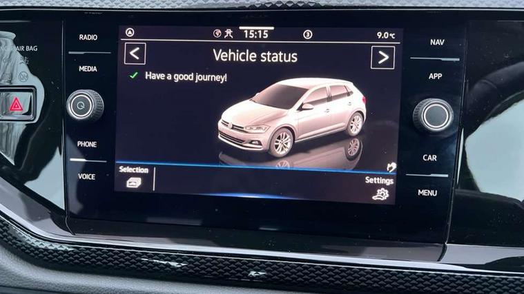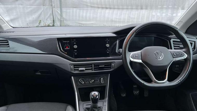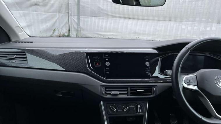 Adaptive cruise control without follow-to-stop and speed limiter, Bluetooth mobile phone interface, Driver alert system, Emergency call service, Front assist system, Power assisted speed sensitive steering, Preparation for We connect and We connect plus, Speedo and rev counter, electronic odometer, trip, service interval display and fuel gauge, Standard rear axle, Travel Assist - Lane keeping system and traffic jam assist, Travel assist including emergency assist, Trip computer, Warning signal and warning light for front and rear seatbelts not fastened, Washer fluid level indicator, Wireless app connect, Front wheel drive, Rear shock absorpion, Start-stop system with battery regeneration (recuperation - energy recovery during braking), DAB Digital radio, Diversity antenna for FM reception, Automatic dimming interior rear view mirror, Body colour bumpers, Body colour door handles, Body colour door mirrors, Electric front windows, Heat insulating darkened glass in side and rear windows, Heat insulating glass windscreen, Power folding adjustable/heated exterior mirrors and front passenger exterior mirror lowering function, Rain sensor, Rear electric windows, Rear fog light, Rear side wing doors, Rear windscreen washer and wiper with interval delay, Third brake light, 12V power socket in centre console, 2 front and 2 rear reading lights, 2 USB-C ports in the front, 2 USB-C charging sockets on the center console in the rear, 3 rear head restraints, 60/40 split folding rear seat and rear seat bench not split, Ceramique headliner, Chrome plated radiator grille inserts, air vent surrounds and light switch surrounds, Door and side trim panel, Driver and front passenger seat height adjustment, Driver/passenger sunvisors with illuminated vanity mirrors, Front centre armrest, Front seat backrest storage pockets, Front standard seats, Handbrake lever handle in leather, Hartley/Thomas cloth upholstery, Isofix child seat preparation easy-fit (for two outer rear seats, and front passenger seat) compatible with I-size, Leather trimmed gear knob, Luggage compartment cover, Luggage compartment floor, Luggage compartment lighting, Multifunction steering wheel, Single front passenger seat, Standard pedal cluster, Light and vision pack - Polo, 3 point height adj front seatbelts + pretensioners, 3x3 point rear seatbelts, ABS, Driver and front passenger airbag with front passenger airbag deactivation, Drivers and front passengers safety optimised head restraints, ESC (Electronic stability control) + EDL (Electronic Differntial lock) and ASR (Traction control), Extended and predictive pedestrian/ cyclist protection, Front curtain and side airbags with center airbag, Front disc brakes, Hill hold control, Manual child lock in rear doors, Rear drum brakes, Single tone horn, Tyre pressure loss indicator, Alarm with interior protection, Anti-theft alarm system with interior monitoring, backup horn, and towing protection, Anti-theft wheel bolts, Electronic engine immobiliser, Lava stone black gloss/matt decorative inserts in dash and front door panels, Low rolling resistance tyres,