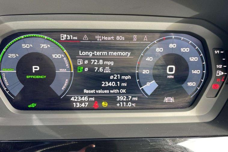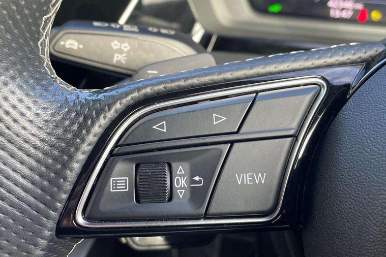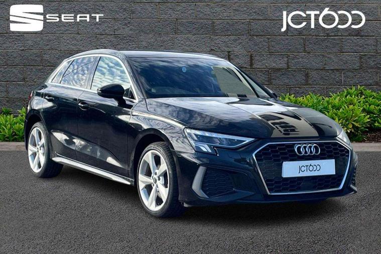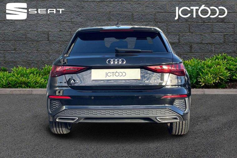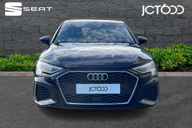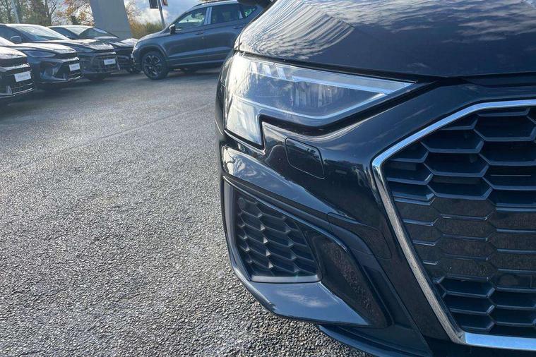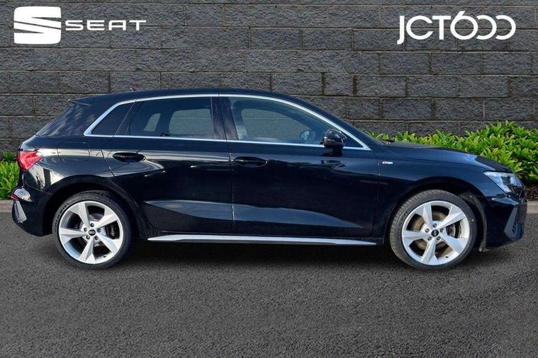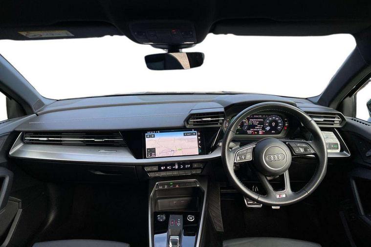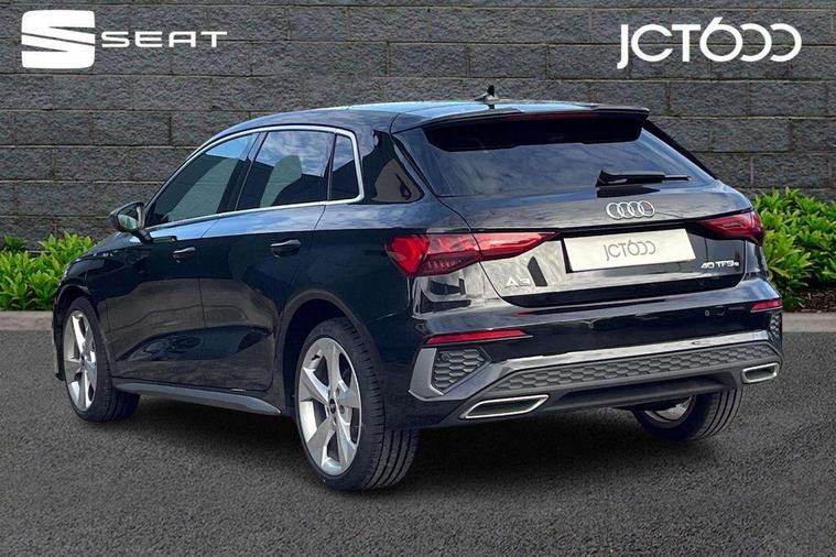 Audi drive select (Auto, Comfort, Dynamic, Efficiency and Individual), Audi smartphone interface, Audi Virtual Cockpit - 10.25" digital and colour instrument cluster, Automatic start/stop system with recuperation, Bluetooth interface, Collision avoidance assistant, e-Call (emergency call), Electromechanical power speed sensitive steering, Lane departure warning system, MMI Navigation Plus with high resolution 10.1" colour touch screen display, Service indicator, Trip computer, Voice control system with natural language interaction, 3 pin 10 amp domestic charging cable, 3.6 kw On-board charger, Standard suspension, Type 2 mode 3 32 amp charging cable, Type 2 socket for AC charging, 2xUSB-C connection with data and charging functions, 6 passive loudspeakers, DAB Digital radio, 3rd brake light, Acoustic glass windscreen, Aluminium window trim, Auto dimming frameless rear view mirror, Electrically adjustable/heated/folding/auto dimming door mirrors with integrated LED indications + kerb view function for passenger side, Front electric windows, Illuminated aluminium inserts front door sills with S logo, LED daytime running lights, LED headlights with LED rear lights and dynamic rear indicators, Light and rain sensors, Privacy glass - dark tinted rear window, rear door and side windows, Rear electric windows, Rear side air outlets in grained matt black, Rear side wing doors, Rear wiper, S line bumpers, S roof spoiler, 12V socket and storage compartment in front centre console, 3 seat bench in 2nd row, 40/20/40 split folding rear seat bench with cupholder, Black cloth headlining, Dual zone electronic climate control, Front and rear centre armrest in leather, Front and rear headrests, Front/rear floor mats, Height and reach adjustable steering wheel, Illuminated vanity mirror, Interior lighting - glove compartment light and right hand side, Luggage compartment floor covering, Manual boot compartment lid, Manually adjustable front seats, Seat side bolsters, Single front passenger seat, Stainless steel pedals and front footrest in black, Twin leather upholstery with front sports seats S embossed logo, Aluminium interior elements pack - A3 Sportback, S line styling pack - A3 Sportback, 3x3 point rear seat belts, Audi pre sense front, Driver and front passenger airbag with passenger airbag deactivation, Electronic Stabilisation Control (ESC) including ABS, ASR and EDL, First aid kit with warning triangle and 2 safety vests, Front side airbags with head airbags and interaction airbag, Pre-sense front with pedestrian and cyclist detection, Seatbelt monitoring, Tyre pressure loss indicator, Anti theft alarm, Anti-theft wheel bolts, Immobiliser, Manual child locks, Remote control central locking, Accent surfaces in the dashboard and centre console in platinum grey silk effect paint finish, Dark spectrum aluminium inlays, Tool kit, Tyre repair kit,