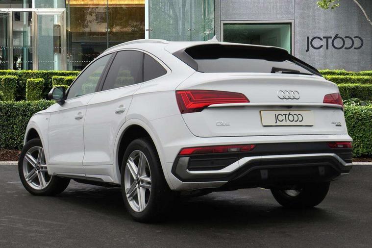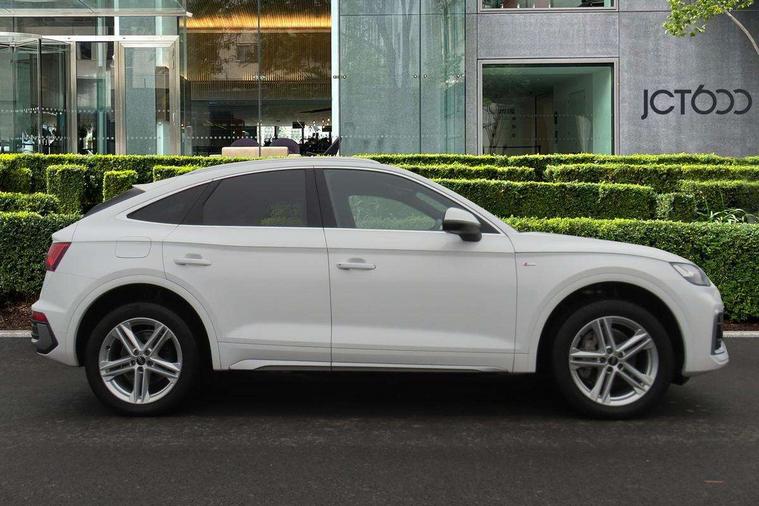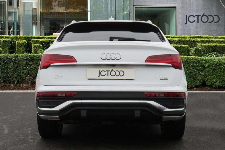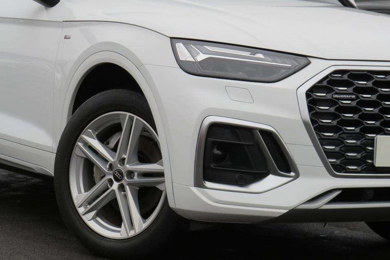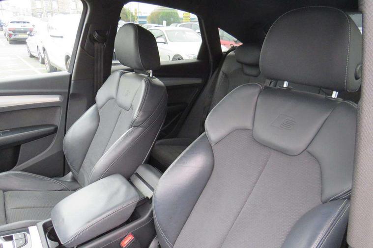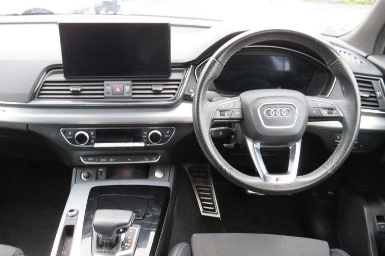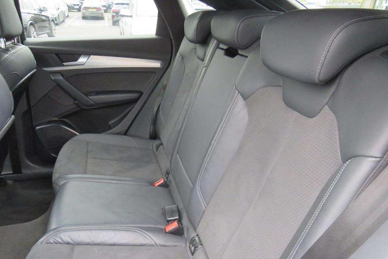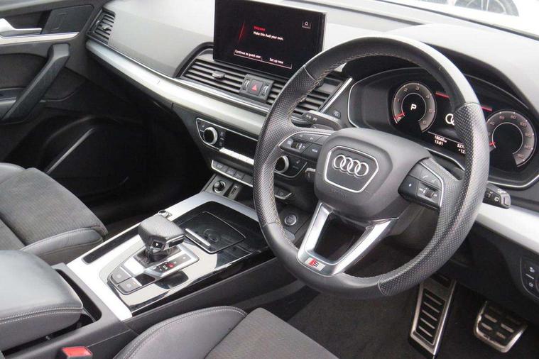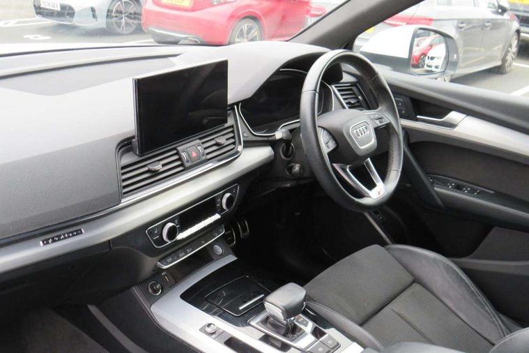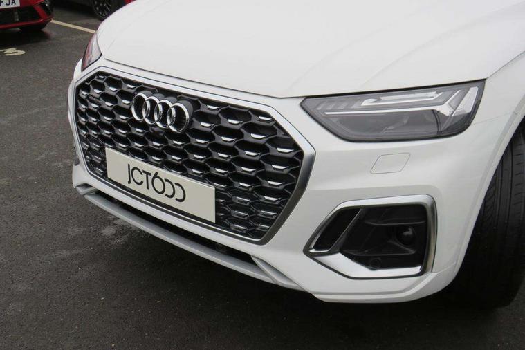 Audi connect safety and service (e-call), Audi connect with Amazon Alexa Integration, Audi drive select, Audi virtual cockpit plus with 12.3" screen and three different layout designs, Audi wireless smartphone interface, Automatic start-stop system with coasting functionality and efficiency programme, Bluetooth interface, Electro - mechanical power assisted steering, MMI navigation plus with 10.1" touch screen, Power tailgate, Reversing camera, Service interval indicator, Voice control system with Audi hotword activation "Hey Audi", Diesel particulate filter, Quattro on demand, S line sports suspension, 2 x USB charging port with aux input socket, DAB Digital radio, Acoustic windscreen, Aluminium roof rails, Audi matrix LED headlights with dynamic front and rear indicators, Auto dimming door mirrors, Auto dimming rear view mirror, Automatic headlights and windscreen wipers, Body colour door mirrors, Body colour rear diffuser with matt aluminium silver surrounds, Body colour underbody protection, Chrome plated exhaust trims, Daytime running lights, Door sills in Selenite silver, Electric adjustable/heated/folding door mirrors, Front air inlet surrounds in aluminium, Front and rear electric windows, Front radiator grille in honeycomb design, Headlight washers, High level LED brake light, Lower bumpers painted in contrast Manhattan grey, Rear chrome trim strip below lights, Rear privacy glass and rear side windows, Rear side wing doors, Rear wiper, Roof bars, S Line badges on the front wings, S Line front and rear bumpers, S Line rear spoiler, S Line side skirts, 3 rear headrests, 40:20:40 split folding 3 rear bench seat in 2nd row with rear centre armrest, Black cloth headlining, Comfort front centre armrest, Contrast stitching on seats, steering wheel and gear lever gaiter, Deluxe 3 zone electronic climate control, Front head restraints, Front/rear floor mats, Gear lever in black leather, Heated front seats, Height/reach adjustable steering column, Illuminated door sill trims with S logo, ISOFIX child seat mounting and top tether, Manual seat adjustment with 4-way electric lumbar support, Removable luggage compartment floor, Single front passenger seat, Stainless steel pedals, Sunvisors with vanity mirrors, Trunk roller cover, High gloss pack - Q5, LED interior light pack - Q5, 3 point seatbelts on all seats, 6 airbags - Driver, front passenger, curtain and side airbags, Electrically operated child locks on rear doors, Electromechanical parking brake, Electronic stabilisation control including ABS, ASR and EDL, Front passenger airbag deactivation, Hill descent control, Hill hold assist, Multi collision brake assist, Pop-up bonnet for pedestrian protection, Pre sense city, Seat belt force limiter, Seatbelt monitoring, Tyre pressure warning, Warning triangle and first aid kit, Anti theft alarm, Anti-theft wheel bolts, Keyless Go access/ignition system, Remote central locking, Matt brushed aluminium inlays,