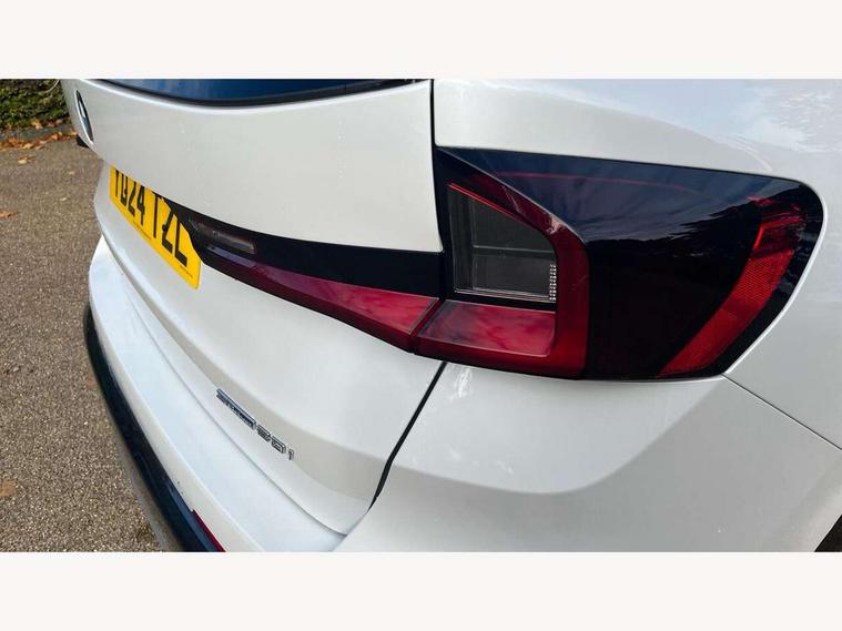 Attentiveness assist, Automatic start/stop function, BMW Live Cockpit Plus with 10.25" instrument cluster and 10.7" display, BMW Operating system 9 with BMW Maps, real-time traffic information, in-car experiences, remote services and smartphone integration, BMW Teleservices, Brake pad wear indicator, Condition based service, Connected eDrive Services, Drive off assistant, Electrically opening/closing tailgate with opening/closing with remote control and contactless opening and closing, iDrive controller, Language version English, My Modes, Parking Assistant with Reversing Assistant, active PDC, Lateral Parking Aid, Rear View Camera and Park Distance Control, Personal Profile - automatic lock when driving away selectable, Servotronic PAS, Tyre puncture warning system, Widescreen display, EU6 emissions management, Performance Control, Petrol Particulate Filter, Standard suspension, Steptronic transmission with double clutch, DAB Digital radio, Aluminium satinated roof rails, Badge on engine compartment lid and tailgate, BMW individual exterior line aluminium satinated window frame and window guide rail in front door/pillar trim/door mirrors in high gloss black, Dynamic brake lights, Electric adjustable heated door mirrors, Electric windows - front and rear, with open/close fingertip control, anti-trap facility and comfort closing, Folding door handles integrated flush with surface, Follow me home headlights, Front bumper panel with air inlet in matt black, Front door exit lights, Front entry sills aluminium inserts with BMW inscription, Heated rear window, Invisible exhaust tailpipe, LED 3rd brake light integrated in rear spoiler, LED daytime running lights, LED number plate light, Mirror caps painted in contrasting colour dark grey, Radiator grille frame in aluminium matt, Radiator grille struts in aluminium matt, Rain sensor including auto headlights activation, Rear bumper panel with two L-shaped trims In pearl chrome, Rear side wing doors, Rear wiper, Roof trim strips painted in body colour, Sill cover in body colour, Trailer stabilisation logic, Windscreen washer nozzle for rear view camera, Windscreen wipers front with heated washer nozzles, 12V - Power sockets with front centre console and luggage compartment, 2 bag hooks in luggage compartment, 2 cup holders in front, 2 x USB Type C ports for charging and data transmission (front centre console) and 2 x USB Type C ports for charging (rear centre console), 3 rear headrests, 3 seat bench in 2nd row, 3 upper retaining strap clips integrated into rear panels of seat backrests, 40:20:40 split folding rear seats, Ambient interior lighting, Anthracite Velour front and rear floormats, Bottle trays in all doors, Child seat ISOFIX attachment for two outer rear seats and front passenger seat with anchorage points, Clothes hook rear, Driver and front passenger heated seats, Dual zone automatic air conditioning, Front and rear door pockets, Front centre console storage compartment, Front/rear adjustable head restraints, Glove compartment, Light on right in luggage compartment, Manual steering column height and depth adjustment, Map pockets, Middle centre console storage compartment, One piece parcel shelf opens together with tailgate and removable, Rear armrest in door trim panel, Single front passenger seat, Sport leather multifunction steering wheel with thumbrests and operation of instrument display, audio, telephone and driver assistance, Storage compartment net in left side trim panel, Storage compartment with folding cover under centre console armrest cushion, Storage tray in right side trim panel, Tilt adjustment incl. cargo function of 2nd row of seats, Trim elements on steering wheel spokes in pearl chrome, ABS/EBD, Automatic hold function, Automatic Stability Control (ASC), Black belt painted in contrasting colour dark grey, BMW emergency call, Braking readiness, Cornering brake control (CBC), Crash Sensor - activates hazard/interior lighting + unlocks doors, Driver/Front Passenger airbags, Driver/front passenger side airbags, Dry braking, Dynamic brake control, Dynamic stability control + (DSC+), Electromechanical parking brake, Energy recovery system, First aid kit, Front and rear brake discs, Front and rear head airbags, Front passenger airbag deactivation, Integrated brake system, PC iBrake PostCrash approach control warning with light braking function, Rear door child safety locks, Three point seat belts in all seats, Tyre pressure monitor, Warning triangle, Alarm system with tilt sensor, monitoring doors, bonnet interior and tailgate, Closing system with central locking, Locking wheel bolts, Luxury instrument panel, Tyre repair kit (including Tyre sealant and 12V Compressor),