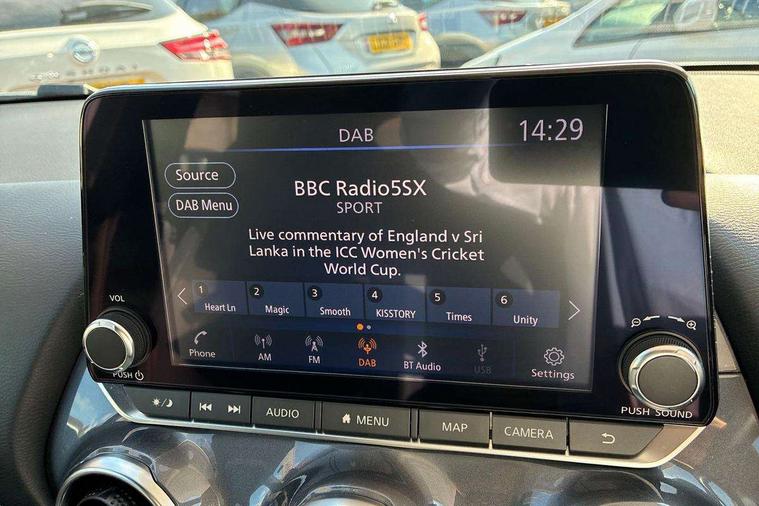 7" full colour TFT screen combimeter, Apple CarPlay and Google Android auto, Drive modes select (Eco, normal and sport), e-Pedal step, Emergency and breakdown call, EV mode selector, Front parking sensor, Intelligent lane intervention, Lane departure warning system, Nissan connect 8" touch screen entertainment system, Nissan connect nav with TomTom traffic, Nissan connect services and Wifi connection, Outside temperature sensor, Power Steering, Rear parking sensor, Traffic sign recognition, Trip computer, Voice recognition, Gasoline particulate filter, 6 speakers, Bluetooth system, USB, Aux-in and 12V socket, DAB Digital radio, Rear console USB port, Auto dimming interior rear view mirror, Auto headlights, Automatic hazard signal with emergency stop signal, Body colour bumpers, Body colour door handles, Electrically adjustable door mirrors with integrated indicators, Follow me home headlights, Front and rear electric window with one touch driver window, Heated and auto folding door mirrors, High beam assist, LED daytime running lights, LED headlamps, LED rear fog lamp, LED rear lamps, Rain sensor windscreen wipers, Rear privacy glass, Rear side wing doors, Rear wiper, Three blink turn signal, 3 height adjustable rear headrests, 3 seat bench in 2nd row, 60/40 split folding rear seat, Automatic climate control, Card holder on driver sunvisor, Cloth upholstery with black and metallic grey syntech leather inserts, Driver and passenger sliding and reclining seats, Driver side rear coat hanger, Driver/passenger sunvisors and vanity mirrors, Front and rear cabin lights, Front armrest, Front door pockets with bottle holders, Front head restraints, Front/rear passenger grab handles, Grey synthetic leather kneepad, Height adjustable driver's seat, Internal chrome door handles, Leather gearshift knob, Leather steering wheel, Luggage board, Luggage space lighting, Monoform sporty seats, Multifunction steering wheel, Rear door bottle holders, Single front passenger seat, Steering wheel mounted gearshift paddles, Telescopic steering wheel adjustment, Two cupholders in front centre console, Two rear isofix child seat anchorage points with top tether, Welcome light and console tray ambient lighting, ABS with EBD and brake assist, Active ride control, Active Trace Control, Driver and passenger airbags, Driver and passenger side airbags, Electric handbrake with auto hold function, Electronic Stability Programme (ESP), Front and rear curtain airbags, Height adjustable seatbelts, Hill start assist, Intelligent emergency braking with pedestrian and cyclist recognition, Rear door child safety locks, Seatbelt reminder for driver/front passenger and rear seats, Single tone horn, Three 3 point rear seatbelts, Traction control, Tyre pressure monitoring system, VDC Dynamic Vehicle Control, Ventilated rear brake discs, Alarm, Immobiliser, Intelligent key and start push button with walk away lock and approach unlock functions, Remote central locking,