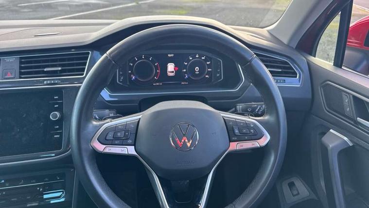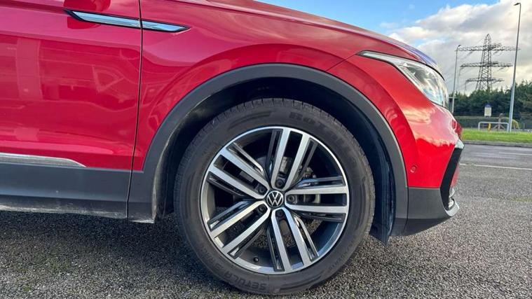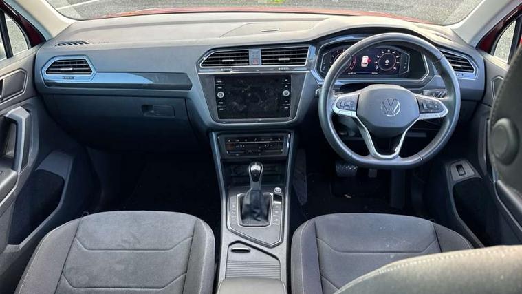 Adaptive cruise control ACC stop and go including speed limiter, App-Connect incl. App-Connect Wireless for Apple CarPlay and Android Auto, Bluetooth phone integration system, Digital Cockpit Pro - Active info display, Distance control assist, Driver alert system, Driver profile selection, Dynamic road sign display, eCall emergency call system, Electromechanical speed sensitive power steering, Engine start/stop button, Lane keeping system Lane Assist, Lights on warning, Motorised electric tailgate operated via key fob, drivers door and foot movement under tailgate, Multifunction front facing camera, Outside temperature display, Premium multifunction display with multi colour display, Remote control boot opening, Rev counter, Revision / skills operating concept travel assistant, Service interval indicator, Speed limit display, Start/stop system with regenerative braking, Tailgate/trunk lid unlocking from outside, Trip computer, Warning sound and light for doors and tailgate open, Battery regeneration during braking, XDS electronic differential lock for improved traction and handling, 2 USB-C ports in the front, 1 USB-C charging socket on the center console in the rear, 4 X 20 watt output, 8 Speakers, Diversity antenna for FM reception, Radio, SD card slot, Simultaneous pairing of 2 compatible mobile devices, SMS functionality - read, compose and send SMS messages using touch-screen display, Title and cover art display, Aluminium door sill protectors, Auto dimming interior rear view mirror, Automatic headlight control system, Body colour door handles, Body coloured bumpers, Body coloured door mirrors with integrated indicators, Coming/leaving home lighting function, Dynamic headlight range control, Front and rear electric windows, Heated rear window, High level 3rd brake light, IQ light-Adv high beam, Dynamic light assist for LED matrix headlamp+LED separate DRL+DCL, dark red rear LED tech, Poor weather light+ cornering light, Laminated safety glass windshield, heat and sound insulating, LED rear number plate lights, Poor weather light and cornering light, Privacy glass for rear side windows and rear window, Rain sensor windscreen wipers, Rear exhaust tailpipe, Rear fog lamp, Rear side wing doors, Rear windscreen washer and wiper with interval delay, Side and rear windows in heat insulating glass, Tilting and sliding panoramic sunroof with rear panoramic sunroof, Trailer Stability Programme, Windscreen wipers/ intermittent wipe + 4 position delay, 12V outlet in center console rear and in luggage compartment, 12V outlet in front and tray, 2 cup holders in front, 2 LED front reading lights, 2 LED rear reading lights, 3 bench rear seats in 2nd row, 3 rear headrests, 4 load lashing points, 40:20:40 split folding rear seats, Air Care Climatronic 3 zone automatic climate control with enhanced air filter and controls in the rear, Backrest release for left front seat, Climate control unit rear with touch function, Door and side trim panel in foam film and woven fabric, Front + rear carpet mats, Front centre armrest, Front footwell illumination, Front seats head restraints (x-adjustment), Height adjustable front seats, Height/reach adjust steering wheel, Instrument lighting white adjustable panel illumination, Interior light with delay, Isofix Preparation 2 Rear child seats, Leather gear knob, Lockable cooled glovebox, Luggage compartment lighting, Luggage net, Rear bench seat asymetrically split folding, longitudinally movable and folding with load-through hatch and center armrest, Remote unlocking for rear seat backrest, Removable luggage cover, Removable rear headrests, Safety optimised front head restraints, Single front passenger seat, Sliding/reclining rear seats, Standard rear seat release, Storage compartment in driver's door, Storage compartment in passenger's door, Storage compartment in rear doors, Storage compartments in luggage area left and right, Storage tray on dashboard, Sun visors with illuminated vanity mirrors, Top front comfort seats, Variable boot floor, height adjustable and removable, Ambience pack - Tiguan, Chrome pack - Tiguan, Driver assistance pack - Tiguan, Easy open and close pack with safelock - Tiguan, Park assist pack - Tiguan, 3 point seat belt for centre rear seats, 3 point seat belts with seat belt pretensioners for the outer rear seats, Active bonnet, Curtain airbags for front and rear passengers, Driver/Front Passenger airbags, Drivers knee airbag, Electronic parking brake with auto hold, Electronic Stability Control with driver steering recommendation, ABS, ASR, EDL, EDTC and trailer stabilization, Front assist with autonomous emergency braking (for Adaptive Cruise Control ACC up to 130 mph), Front disc brakes, Front passenger airbag deactivation, Front side airbags, Height adjustable front 3 point seatbelts + pretensioners, Hill hold control, Manual child proof rear door locks, Pedestrian monitoring system, Power assisted brakes, Proactive passenger protection system in combination with front assist, Rear disc brakes, Rigid safety cell with front and rear crumple zones, Two tone horn, Warning sound and light for front seat belts if unfastened, Anti theft alarm system with interior monitoring, backup horn and towing protection, Anti theft wheel bolts, Central locking system with safelock radio remote control and 2 remote control folding keys, Electronic engine immobiliser, Tool kit,