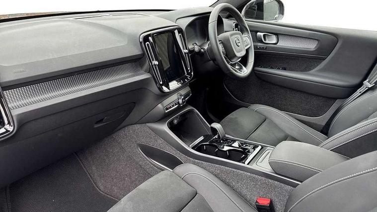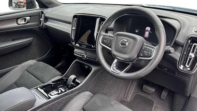 12.3" Progressive Driver Display, 9" centre console portrait touch screen, Adjustable steering wheel force, Apple carplay (wired), Bluetooth handsfree system, Cruise control, Driver alert control, E-call, Front park assist, Google automotive services - Enabled entertainment apps, navigation with google maps, voice recognition with google assistant, Hands free power tailgate, Intelligent speed assistance, Lane keeping aid, Oncoming Lane Mitigation, Rear park assist, Rear park assist camera, Speed sensitive steering, Volvo cars services with app - Driving journal, emergency and breakdown call, engine remote start, remote door locking/unlocking and vehicle dashboard, Wireless/Inductive Mobile Phone Charging, Automatic transmission with start/stop and manual change functions, Dynamic chassis, DAB Digital radio, Steering wheel mounted remote controls, Adaptive brake lights with high level LED brake lights, Auto dimming interior mirror, Automatic headlamp levelling, Automatic LED Headlights + Active high beam incorporating daytime running lights, Front aluminium tread plates, Front and rear electric windows, High gloss black front and rear skid plate, High gloss black front bumper deco, High gloss black mesh front grille with high gloss black surround, High gloss black window trim, Home safe and approach lighting, Integrated roof rails in high gloss black, LED front fog lights, Puddle lights, Rain sensor with automatic windscreen wiper activation, Rear side wing doors, Rear wiper, Roof antenna, Roof spoiler, Visible VIN plate, 12V socket in front tunnel console and luggage compartment, 2-Zone electronic climate control with CleanZone air quality system and pollen filter, 3 seat bench in 2nd row, 3 Spoke tailored steering wheel with chrome trim, 60/40 versatile split folding rear seat, Centre console cupholders and storage, Flexible load floor and grocery bag holder, Floor mats, Front cabin courtesy lights, Front door pocket, front cupholder, ambient front door, rear reading, rear courtesy, instrument panel and tailgate lighting, Front footwell illumination, Front headrests, Front reading lights, Front seat cushion extensions, Front side step illumination (under door), Glovebox bag hook, Heated front seats, Height adjustable passenger seat, Height/reach adjustable steering column, High gloss centre tunnel deco, Illuminated glovebox, Illuminated luggage compartment, Illuminated vanity mirrors + ticket holder, Integrated waste bin, Isofix attachments on outer rear seats, Load cover, Load protection net, Multi directional lumbar support for driver and passenger seat, Power driver seat with memory + exterior mirrors memory, Rear armrest with cupholders, Rear headrests, Single front passenger seat, Underfloor cargo storage, Climate pack without heated front seats - XC40, 3x3 point rear seatbelts, City safety with steering support with Pedestrian + cyclist + front collision warning with full auto brake and rear auto brake, Driver and passenger airbags, Drivers knee airbag, Electronic parking brake with auto hold, First aid kit, Front and outer rear seatbelt reminder and pretensioners, Front seats SIPS airbags, Hill descent control, Hill start assist, Inflatable curtain, Passenger airbag cut-off device, Power child locks on rear doors, Road sign information display, Run off Road Protection, SIPS (Side Impact Protection System), Slippery road and hazard light alert, Stability and Traction Control with Spin control, Engine Drag Control and Corner Traction Control, Tyre pressure monitoring system, Vehicle deceleration control with Anti-lock Brake System, Electronic Brake Distribution and Emergency Brake Assist, Warning triangle, WHIPS whiplash protection system - front, 2 x Key integrated remote control central locking including with deadlocking system and auto open/close windows, Anti-theft alarm including immobiliser/volume sensor + level sensor, Keyless drive includes keyless entry and keyless start, Locking wheel nuts,